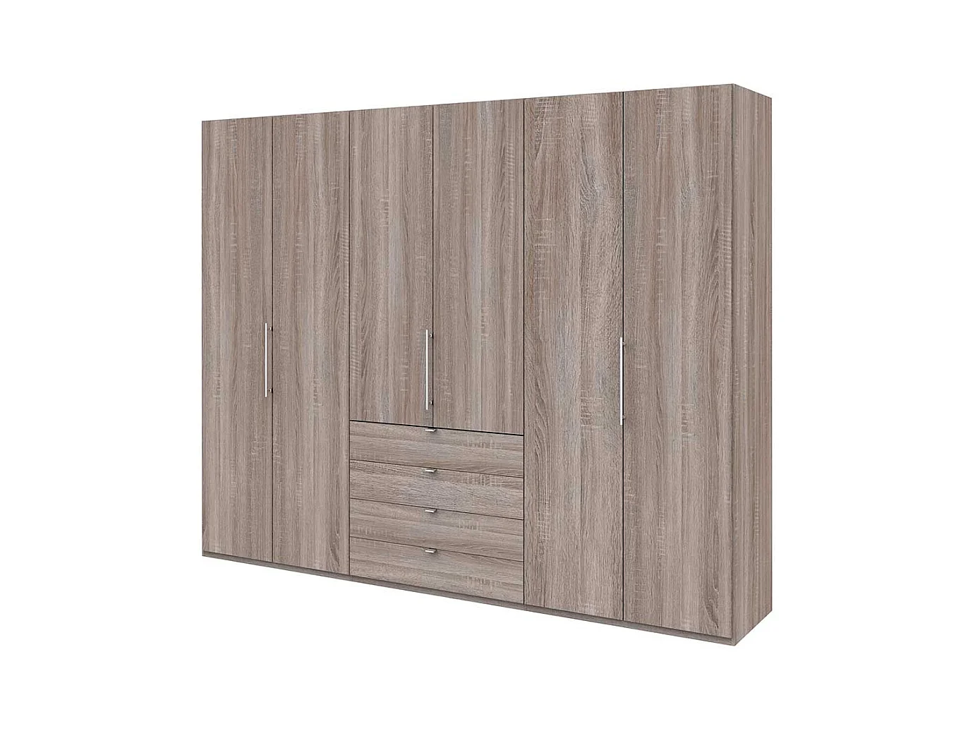 Moderner Kleiderschrank mit Schubladen und Falttüren Eiche Trüffelfarben