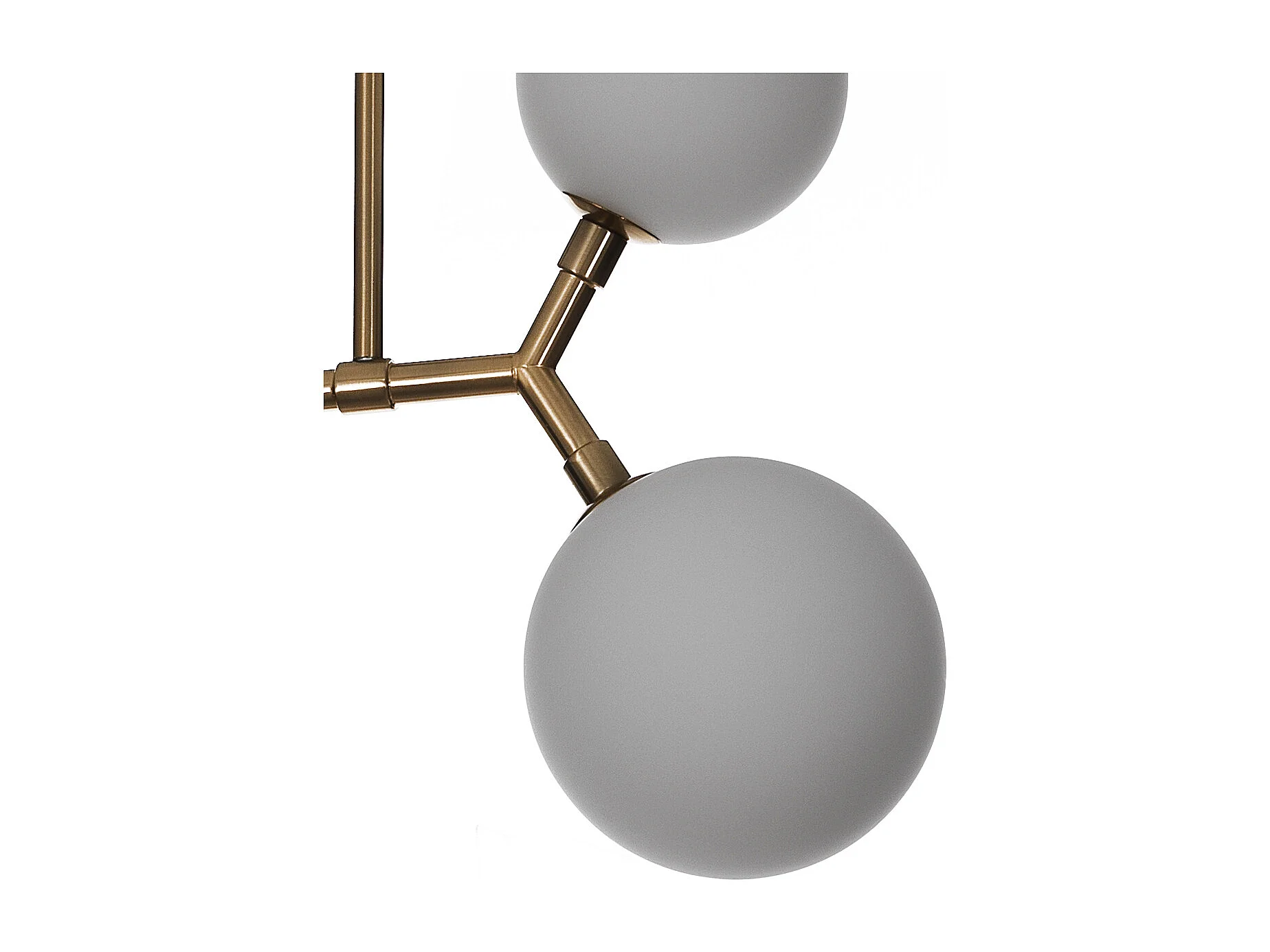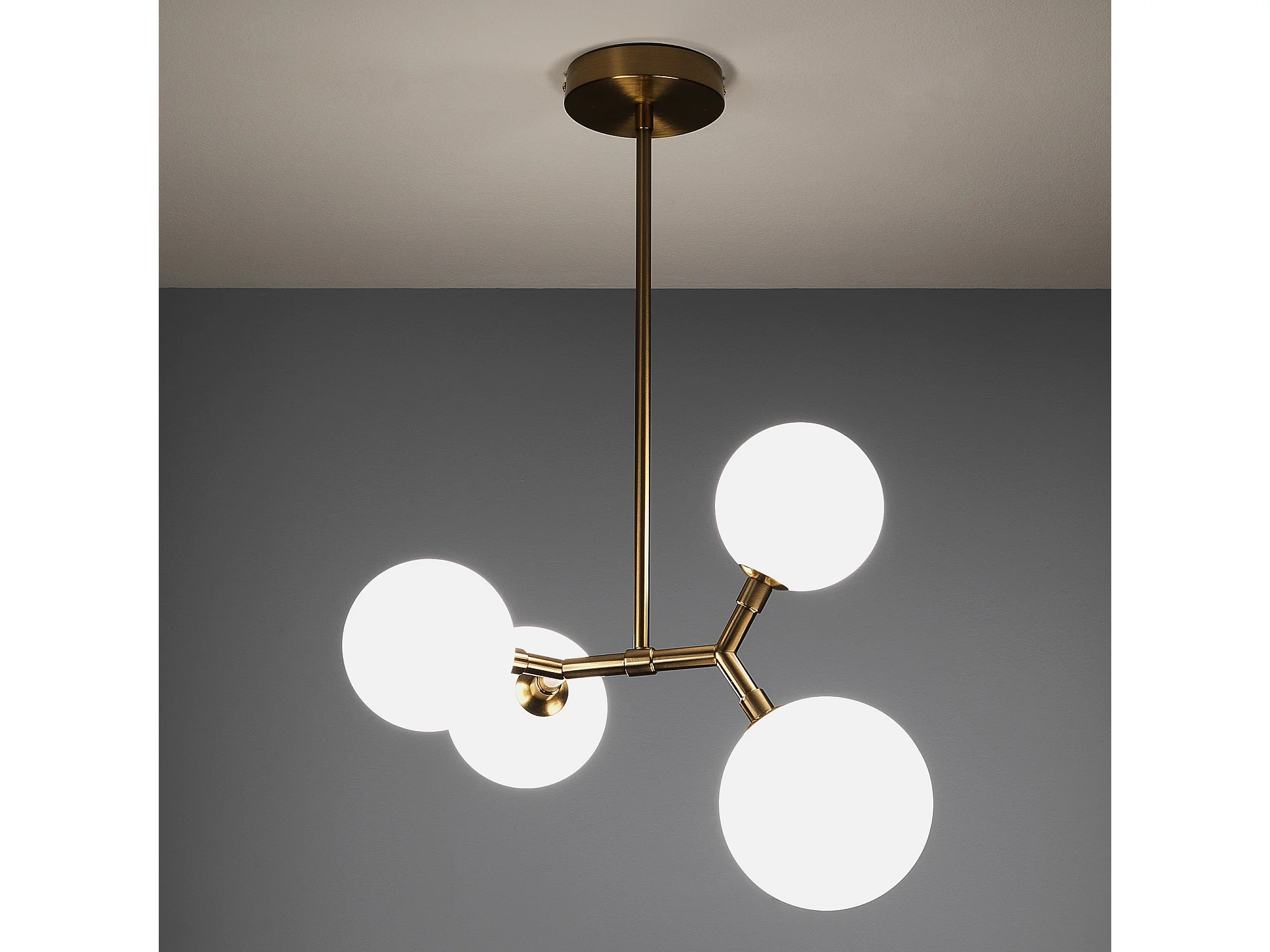 Moderner Kronleuchter aus mattiertem Messing mit weißen Glaskugeln Lily