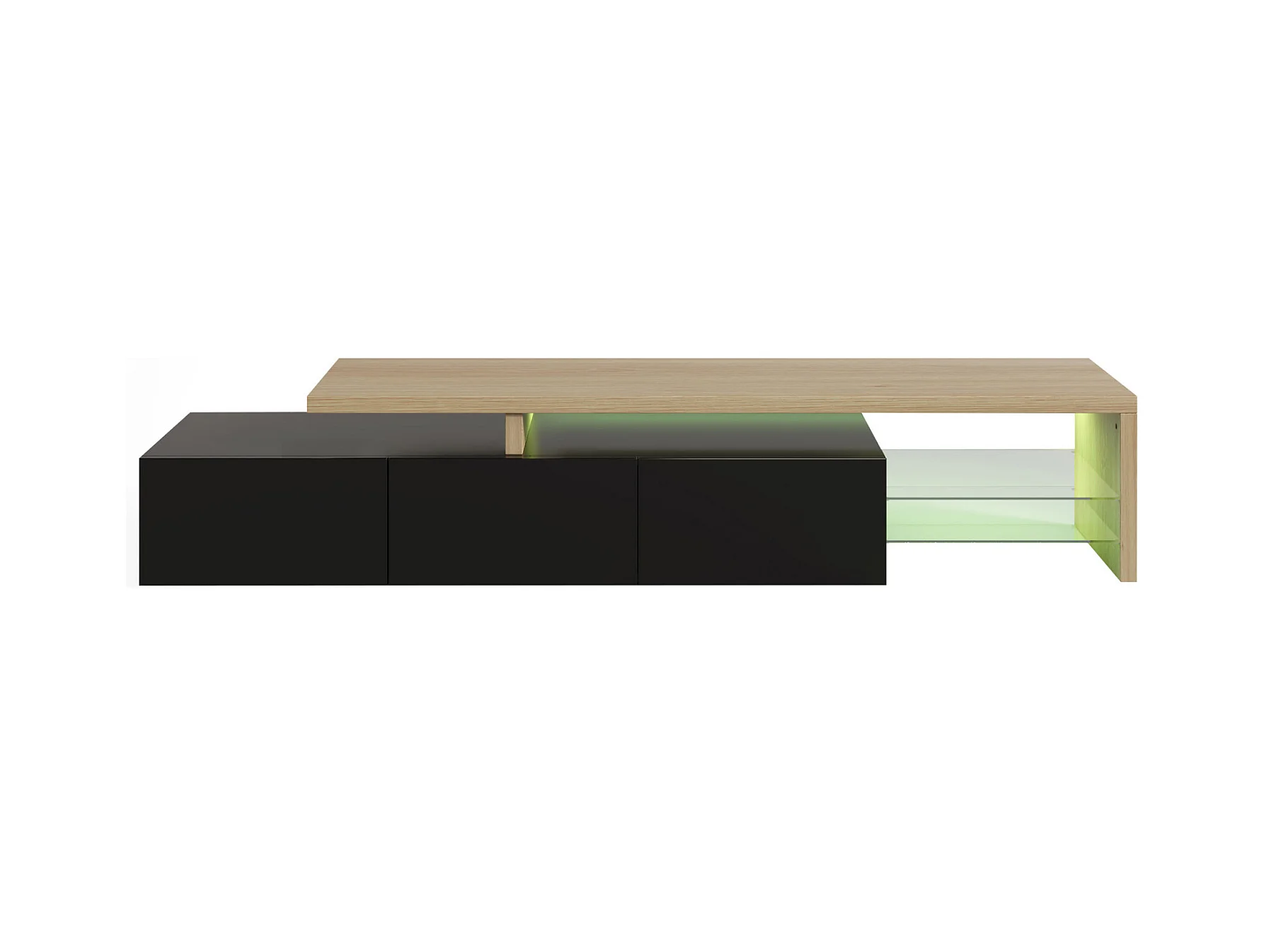 Moderner LED-TV-Ständer – Schwarz und Eiche, 200 cm, mit europäischem Ladegerät