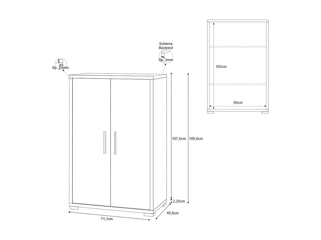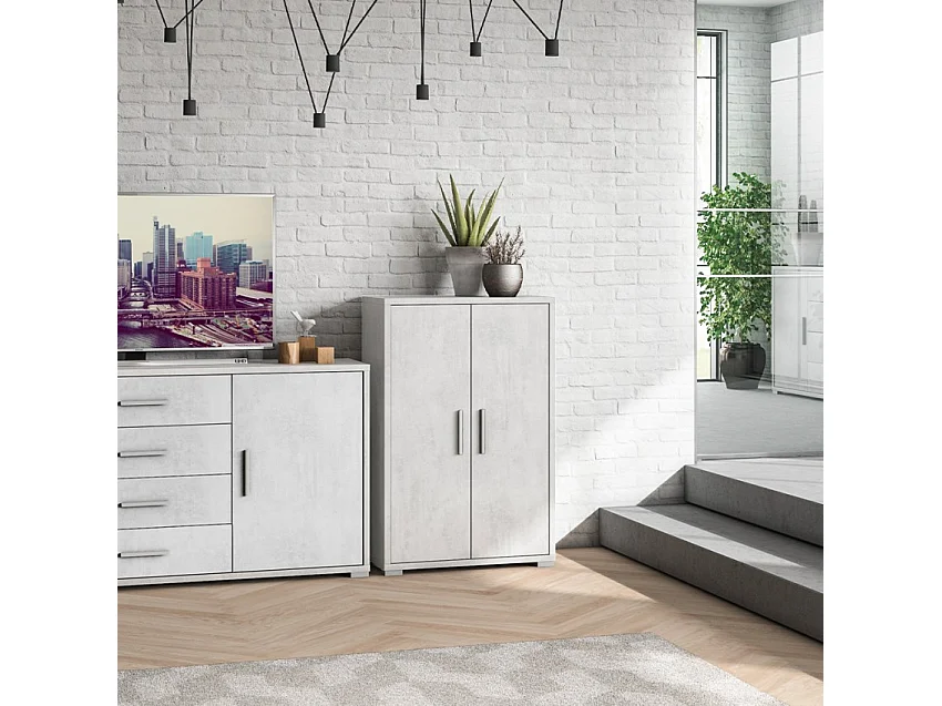 Moderner Mehrzweck-Wohnzimmerschrank Lesly, 2 Türen, 3 Fächer - Weiß