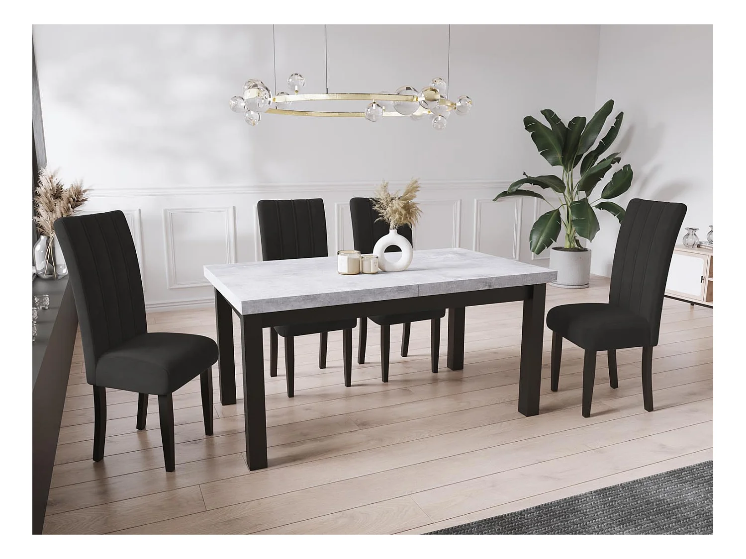 Moderner Rechteckiger Ausziehbarer Esstisch - Platzsparend - Schwarze Holzbeine - 120 bis 160 cm - Hergestellt in EU - 120 x 80 cm - Grau Beton
