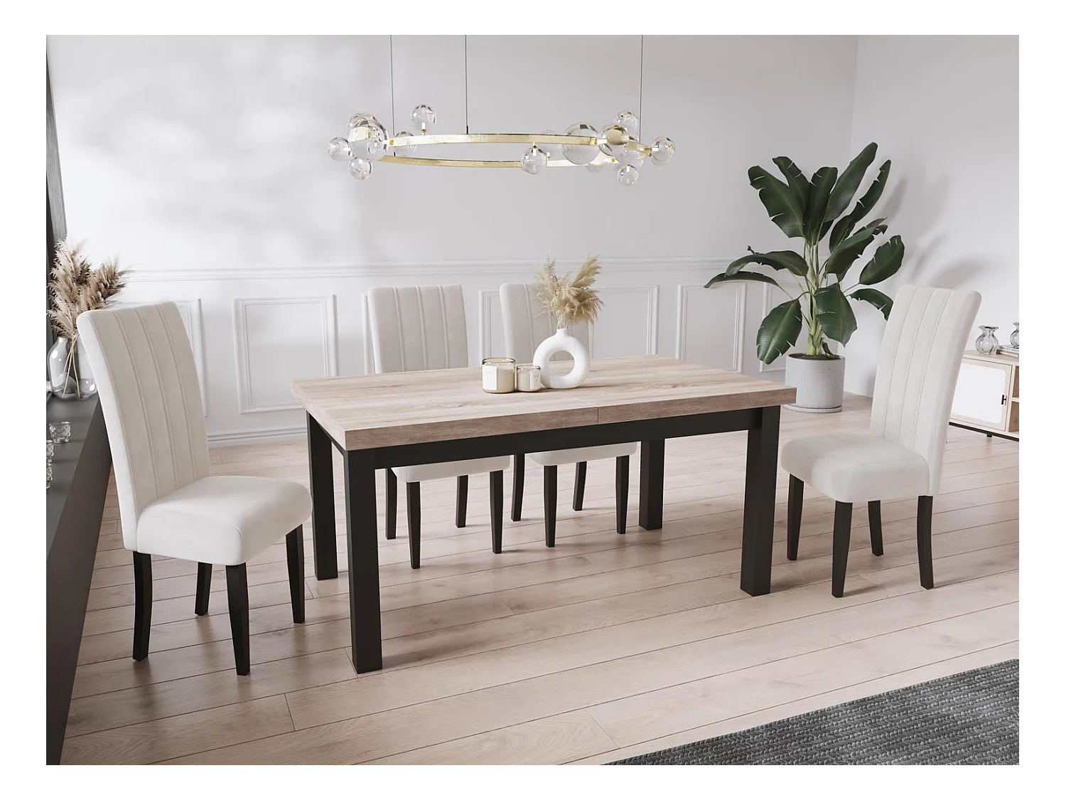 Moderner Rechteckiger Ausziehbarer Esstisch - Platzsparend - Schwarze Holzbeine - 160 bis 210 cm - Hergestellt in EU - 160 x 90 cm - Sonoma Eiche