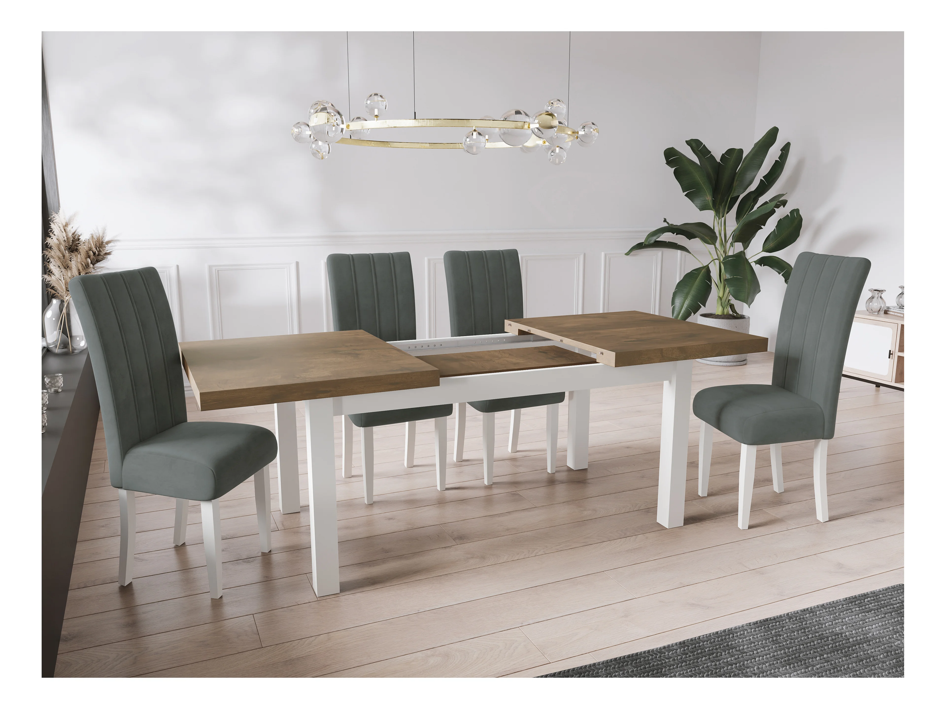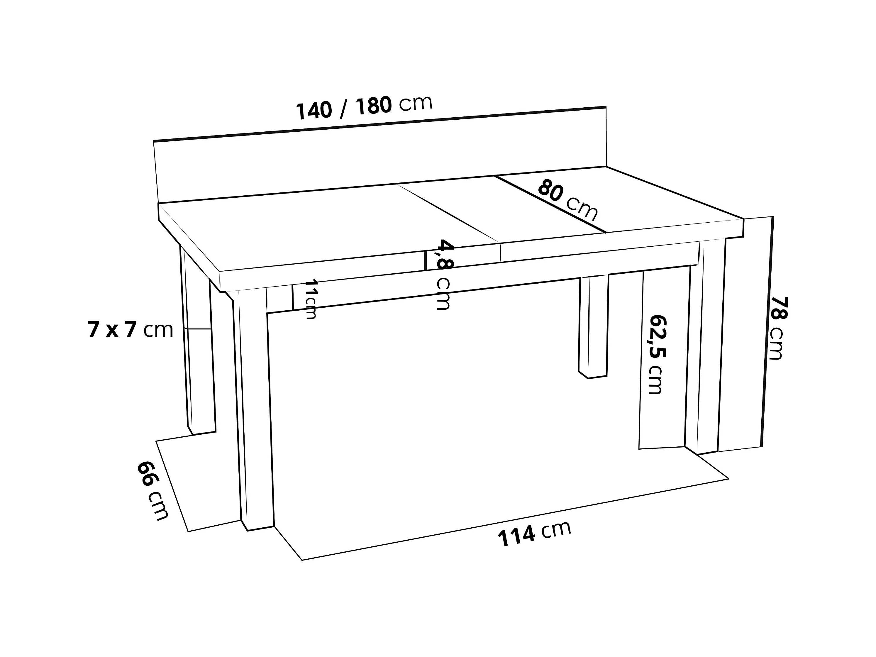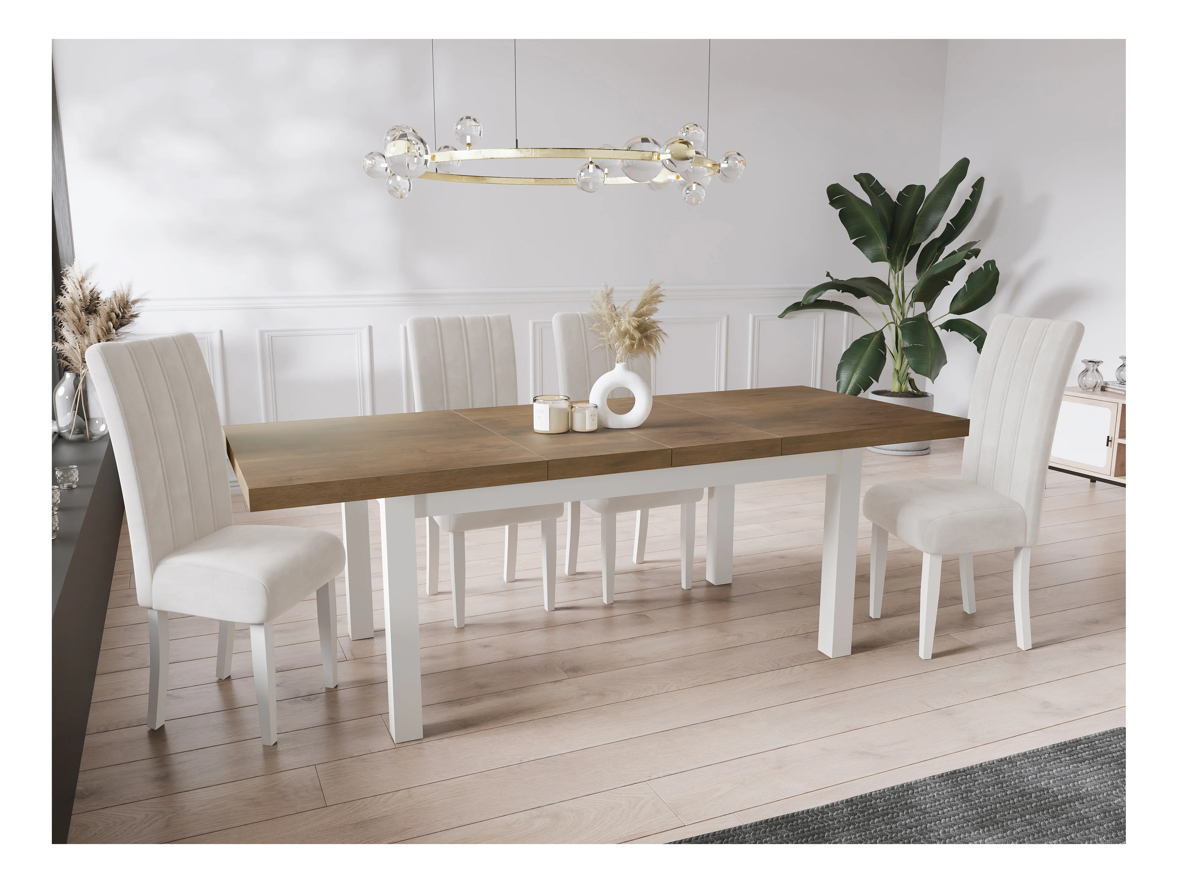 Moderner Rechteckiger Ausziehbarer Esstisch - Platzsparend - Weißen Holzbeine - 140 bis 180 cm - Hergestellt in EU - 140 x 80 cm - Lefkas Eiche