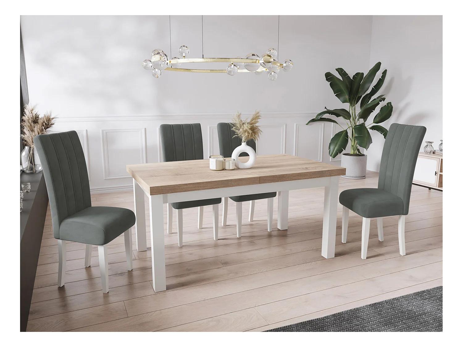 Moderner Rechteckiger Ausziehbarer Esstisch - Platzsparend - Weißen Holzbeine - 140 bis 180 cm - Hergestellt in EU - 140 x 80 cm - Sonoma Eiche