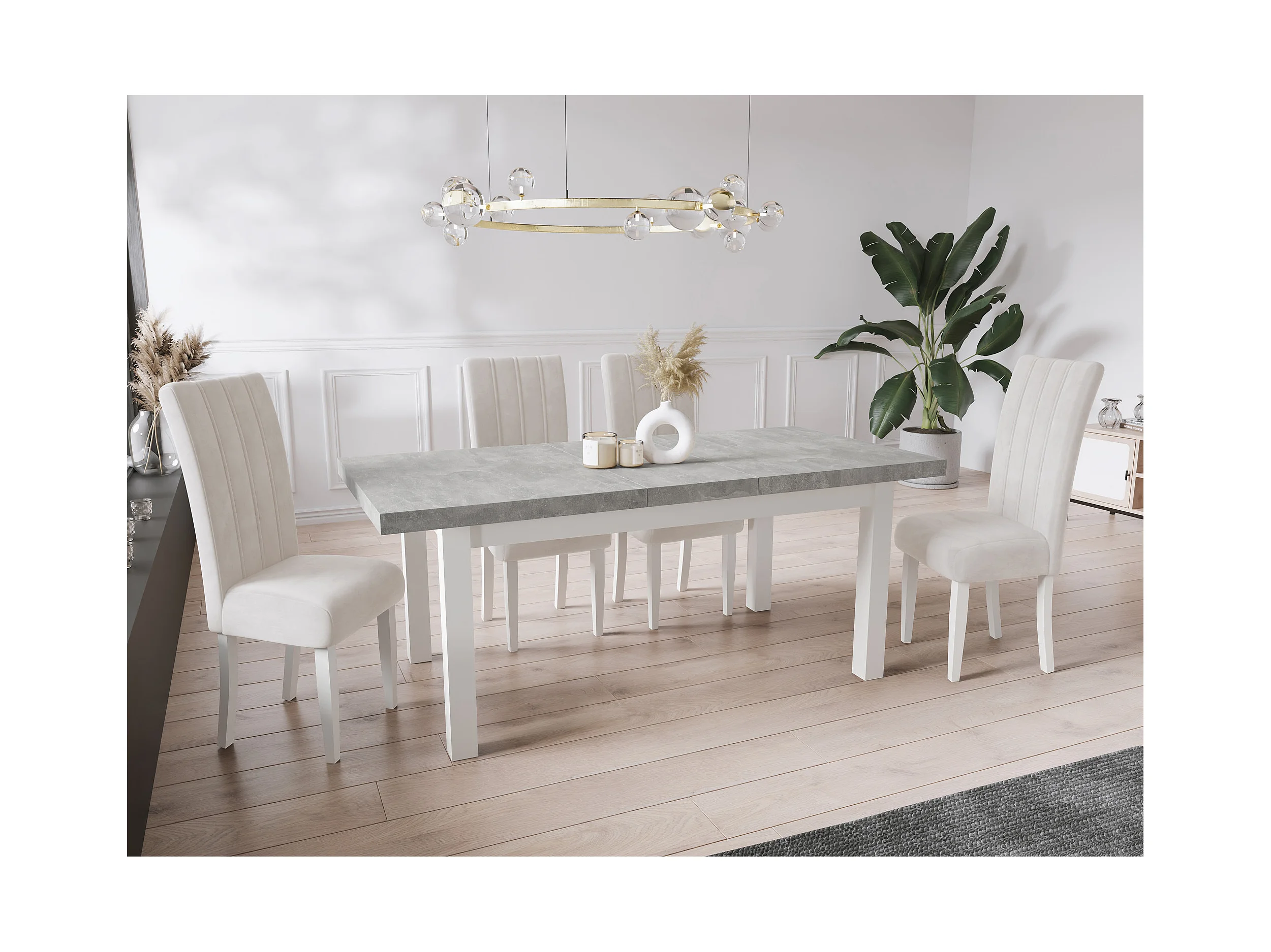 Moderner Rechteckiger Ausziehbarer Esstisch - Platzsparend - Weißen Holzbeine - 140 bis 180 cm - Hergestellt in EU - 140 x 80 cm - Grau Beton