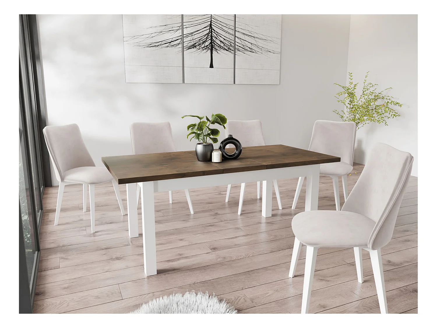 Moderner Rechteckiger Ausziehbarer Esstisch - Platzsparend - Weiße Holzbeine - 160 bis 200 cm - Hergestellt in EU - 160 x 80 cm - Lefkas Eiche