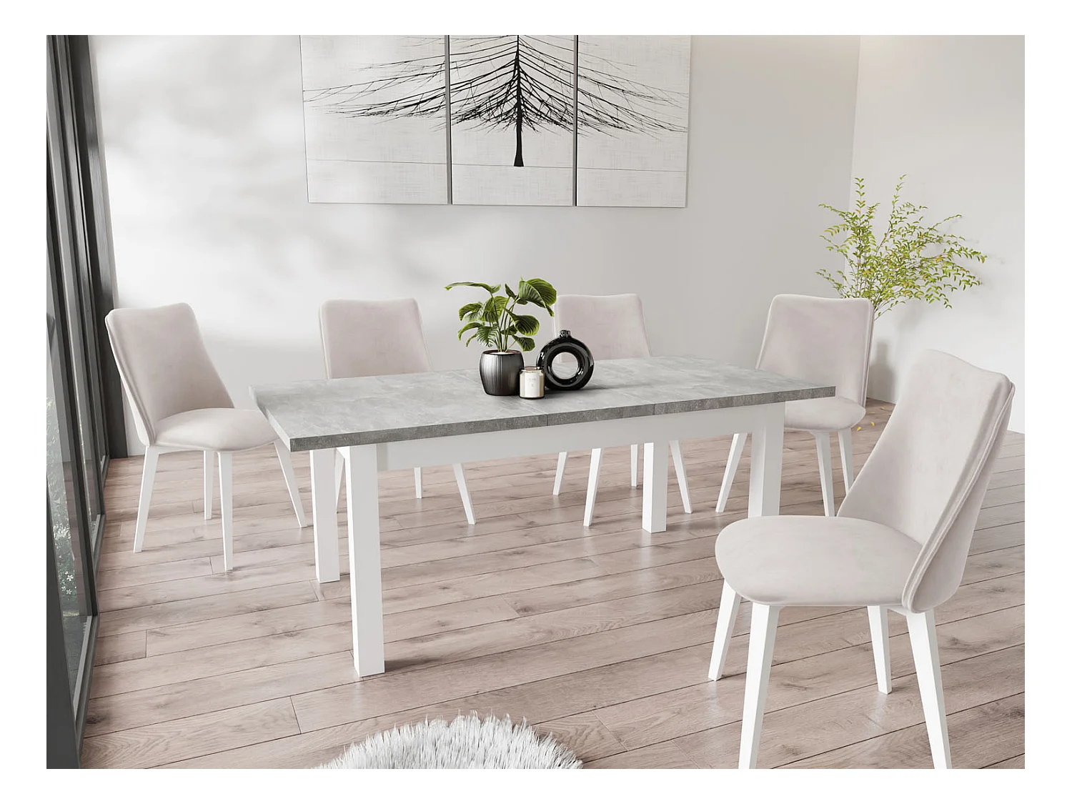 Moderner Rechteckiger Ausziehbarer Esstisch - Platzsparend - Weiße Holzbeine - 160 bis 200 cm - Hergestellt in EU - 160 x 80 cm - Grau Beton
