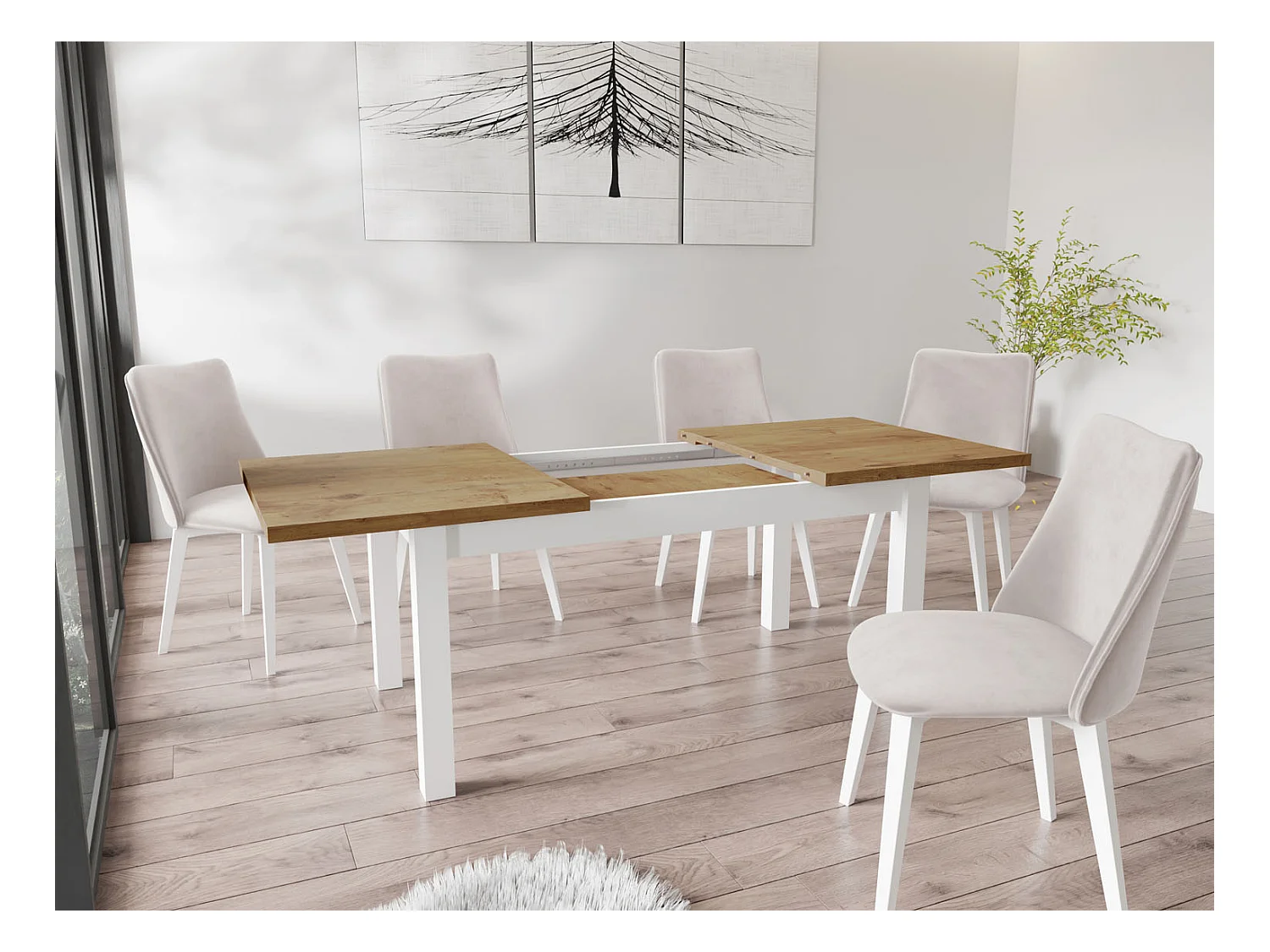 Moderner Rechteckiger Ausziehbarer Esstisch - Platzsparend - Weiße Holzbeine - 160 bis 240 cm - Hergestellt in EU - 160 x 90 cm - Lancelot Eiche