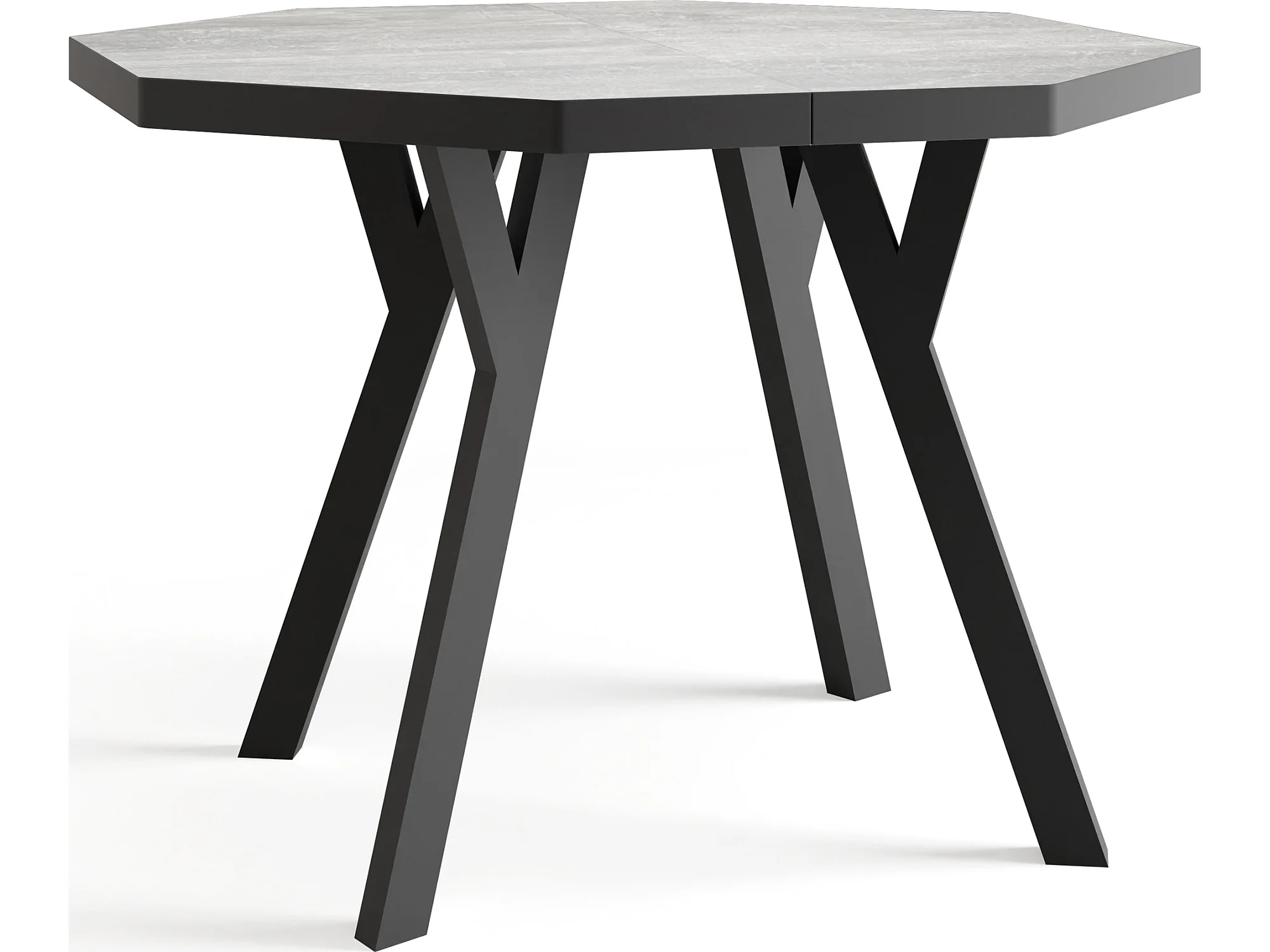 Moderner Runder Ausziehbarer Esstisch Desmond mit Schwarz Holzbeinen – Erweiterbar bis 200 cm, Ideal für 4 bis 8 Personen - Loft-Stil Tisch für Küche - Beton Grau
