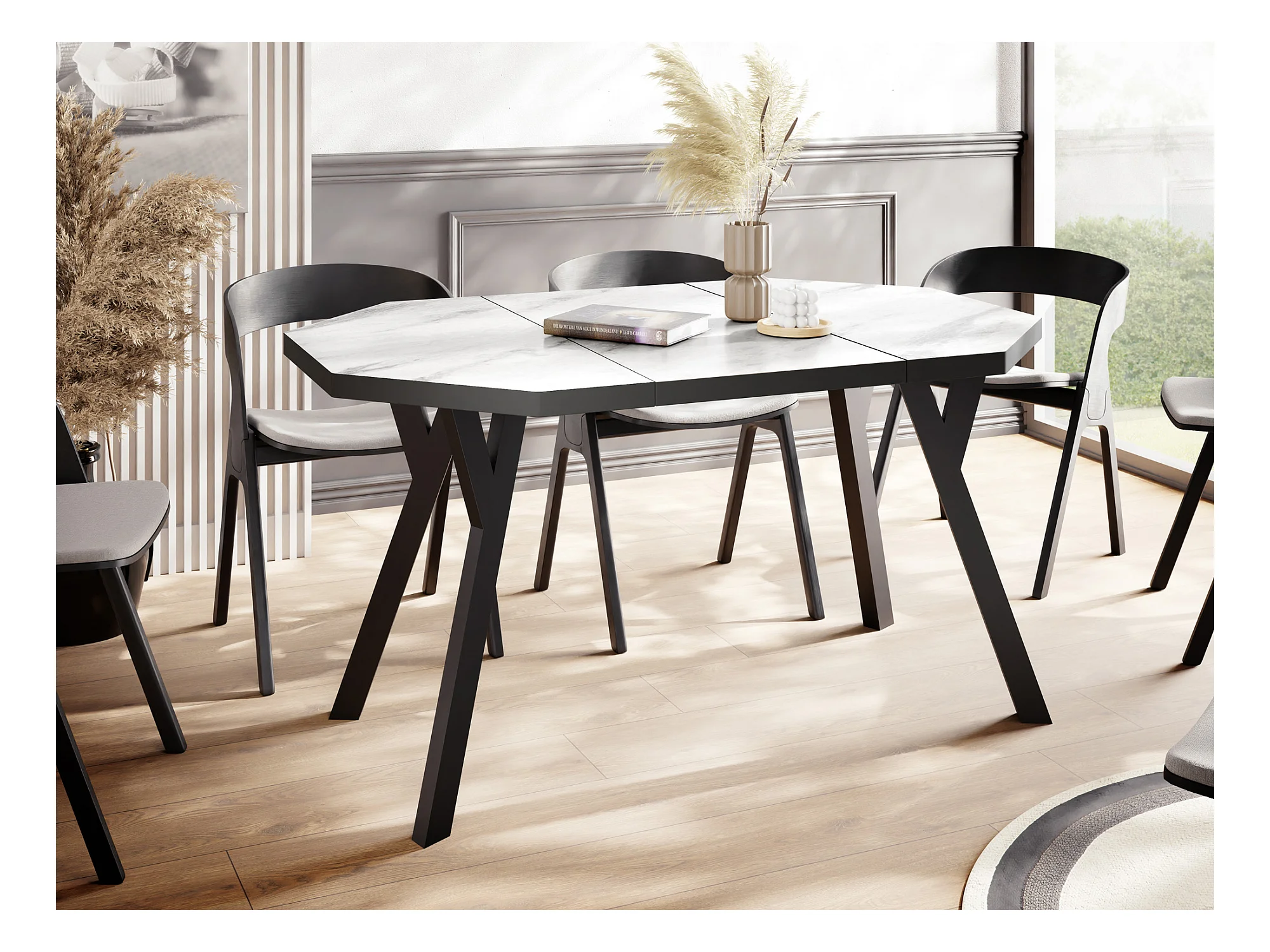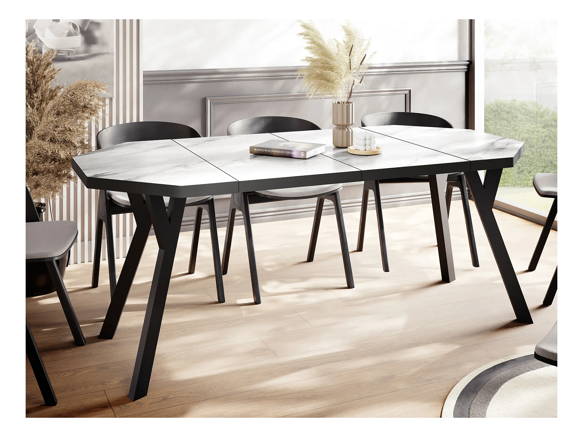 Moderner Runder Ausziehbarer Esstisch Desmond mit Schwarzen Holzbeinen – Erweiterbar bis 200 cm Ideal für 4 bis 8 Personen - Loft-Stil Tisch für Küche - Marmor Weiß