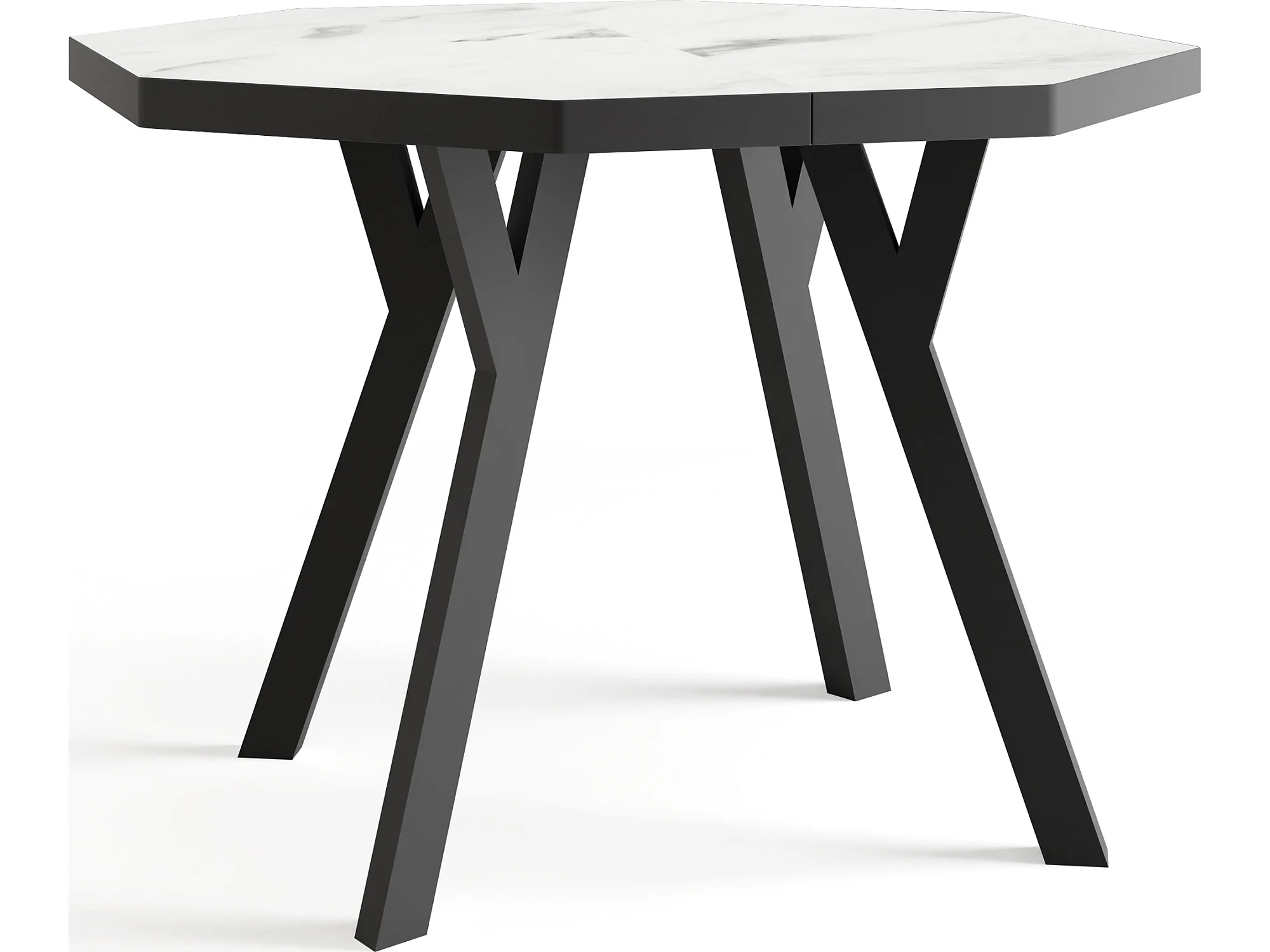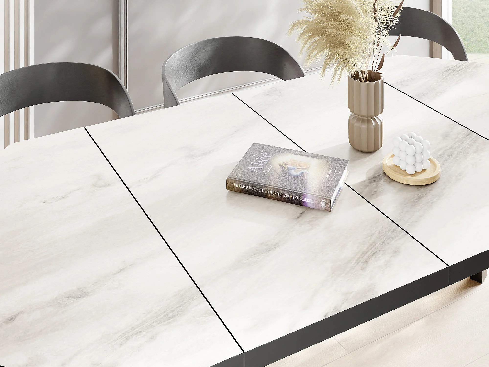 Moderner Runder Ausziehbarer Esstisch Desmond mit Schwarzen Holzbeinen – Erweiterbar bis 200 cm Ideal für 4 bis 8 Personen Loft-Stil Tisch für Küche - Marmor Weiß
