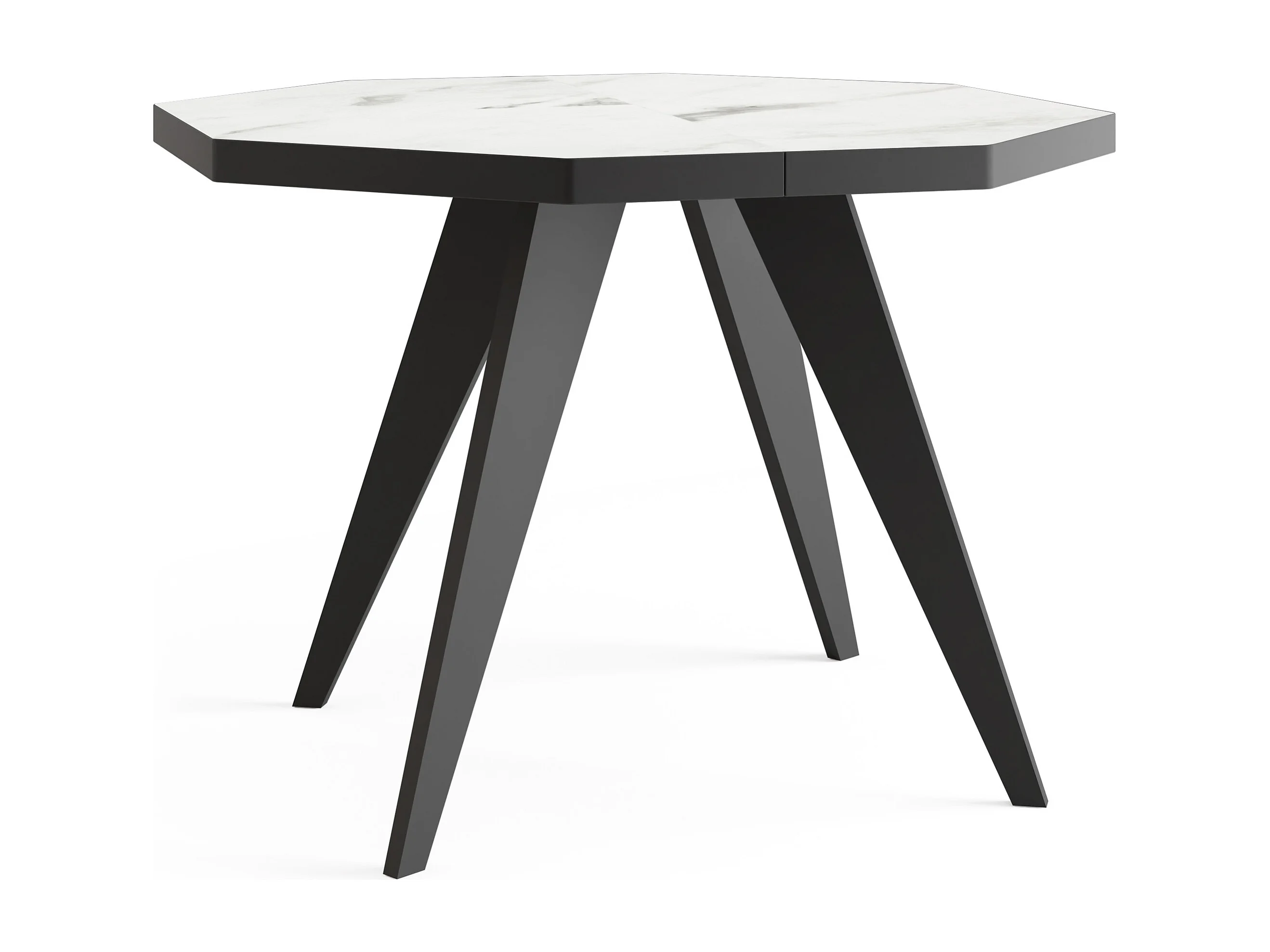 Moderner Runder Ausziehbarer Esstisch Diamond mit Schwarzen Holzbeinen – Erweiterbar bis 150 cm Ideal für 4 bis 6 Personen - Loft-Stil Tisch für Küche - Marmor Weiß