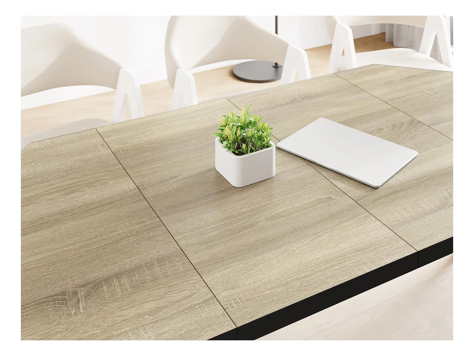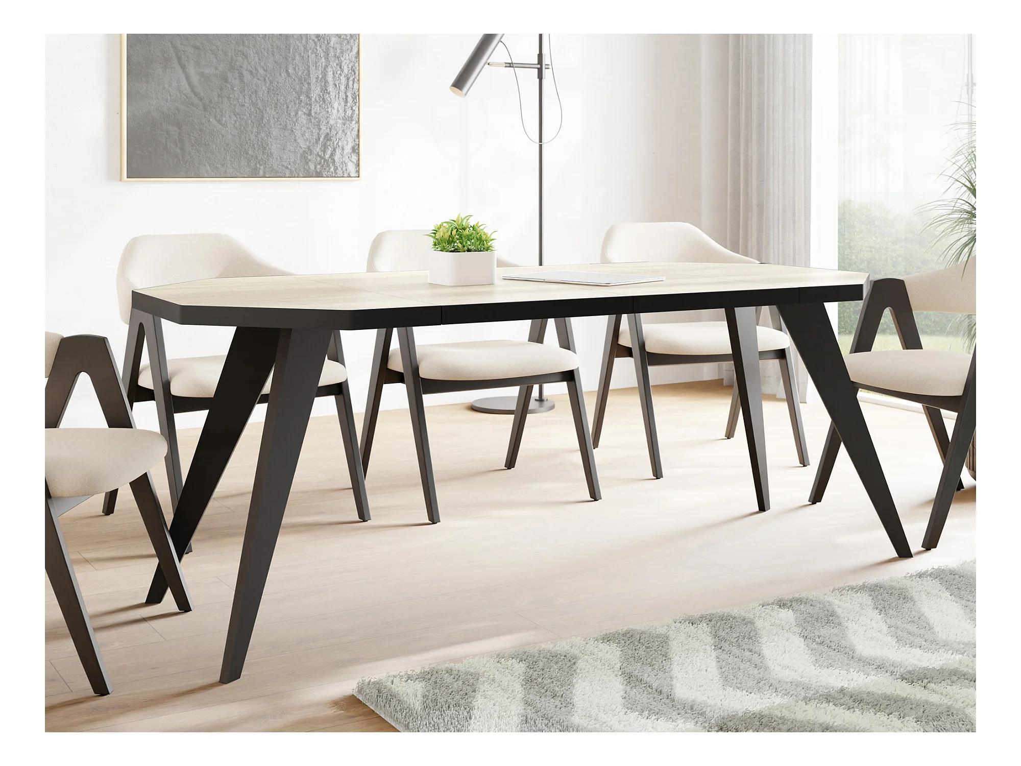 Moderner Runder Ausziehbarer Esstisch Diamond mit Schwarz Holzbeinen – Erweiterbar bis 200 cm, ideal für 4 bis 8 Personen - Loft-Stil Tisch für Küche - Sonoma Eiche
