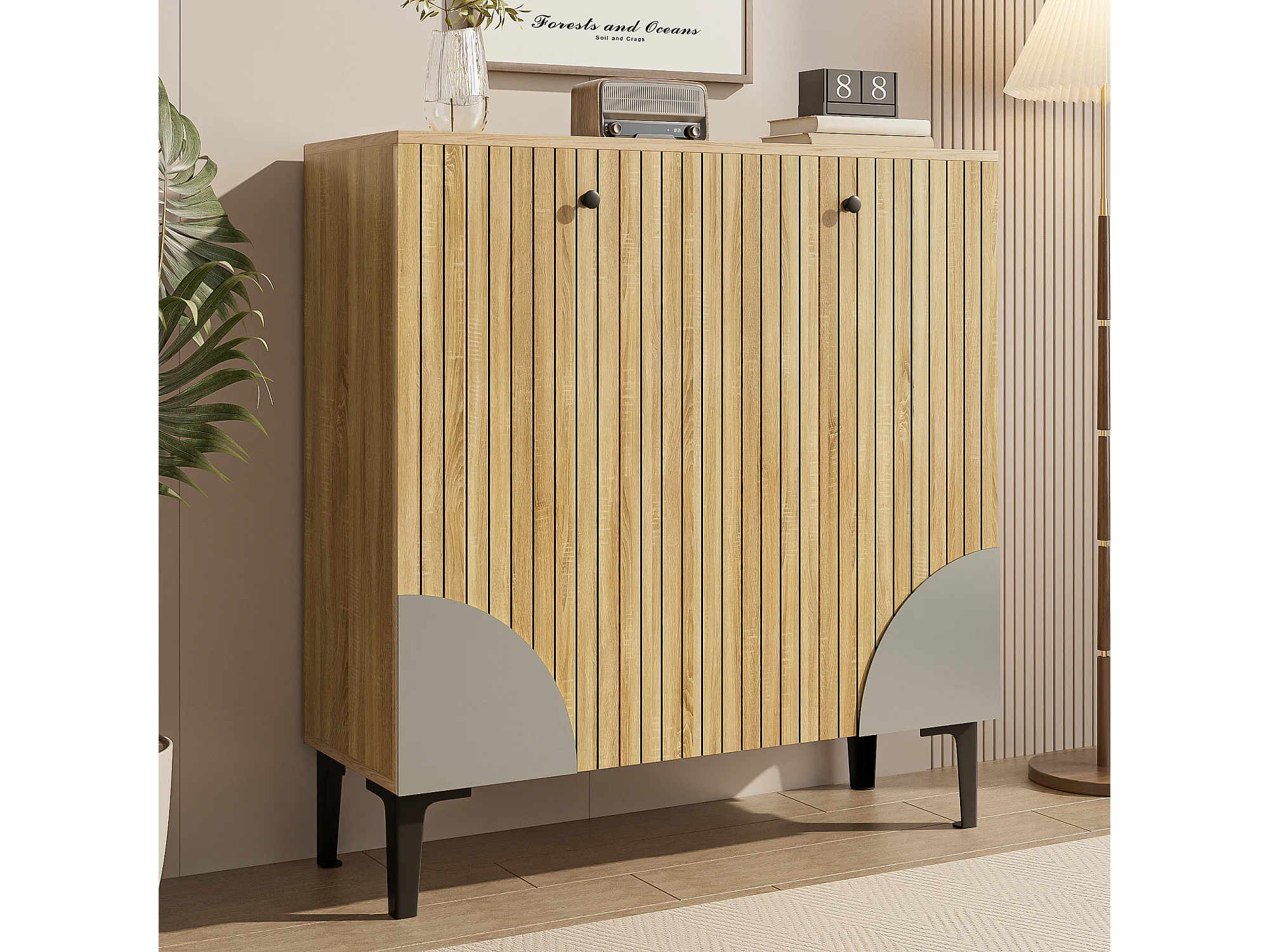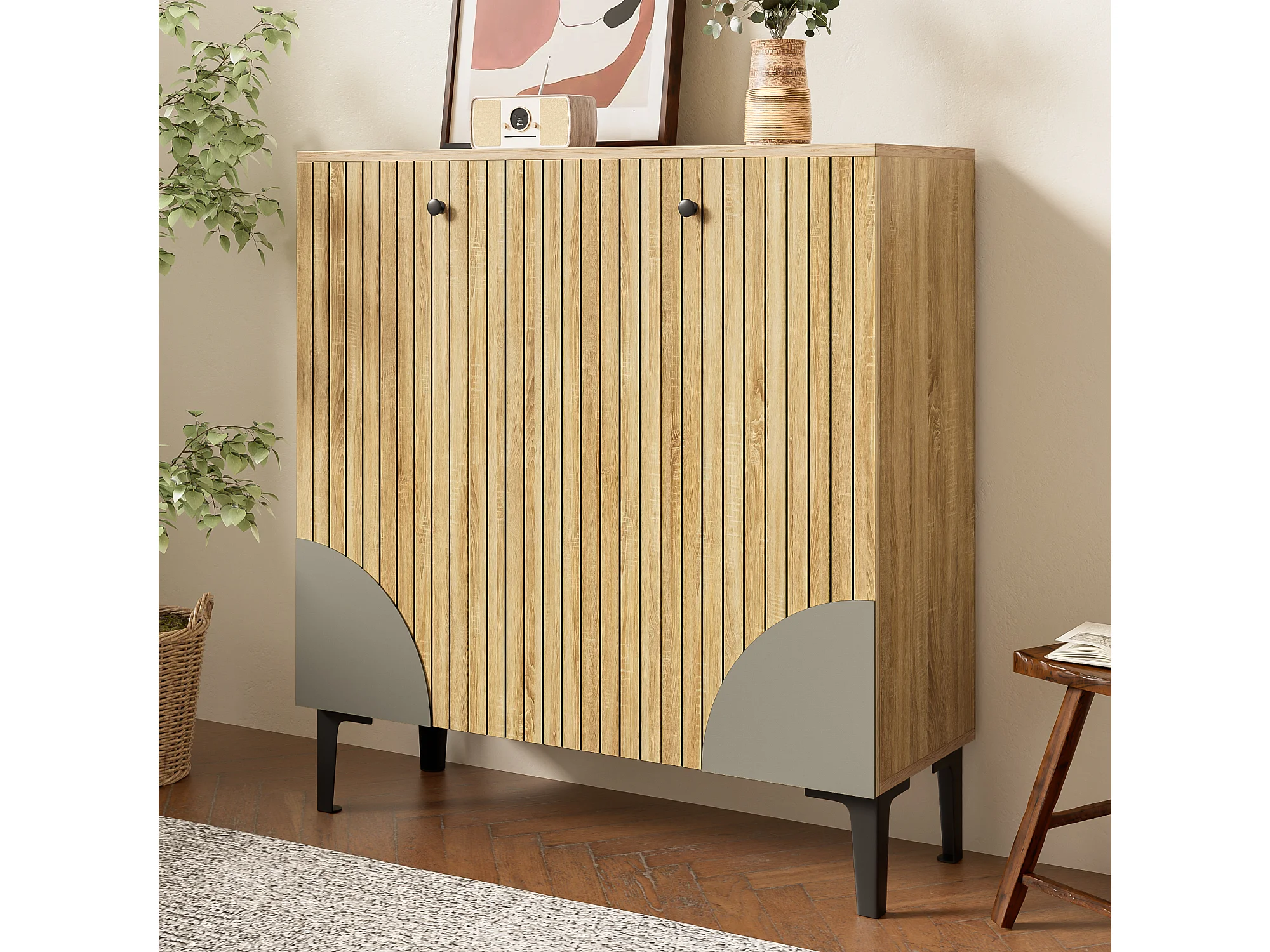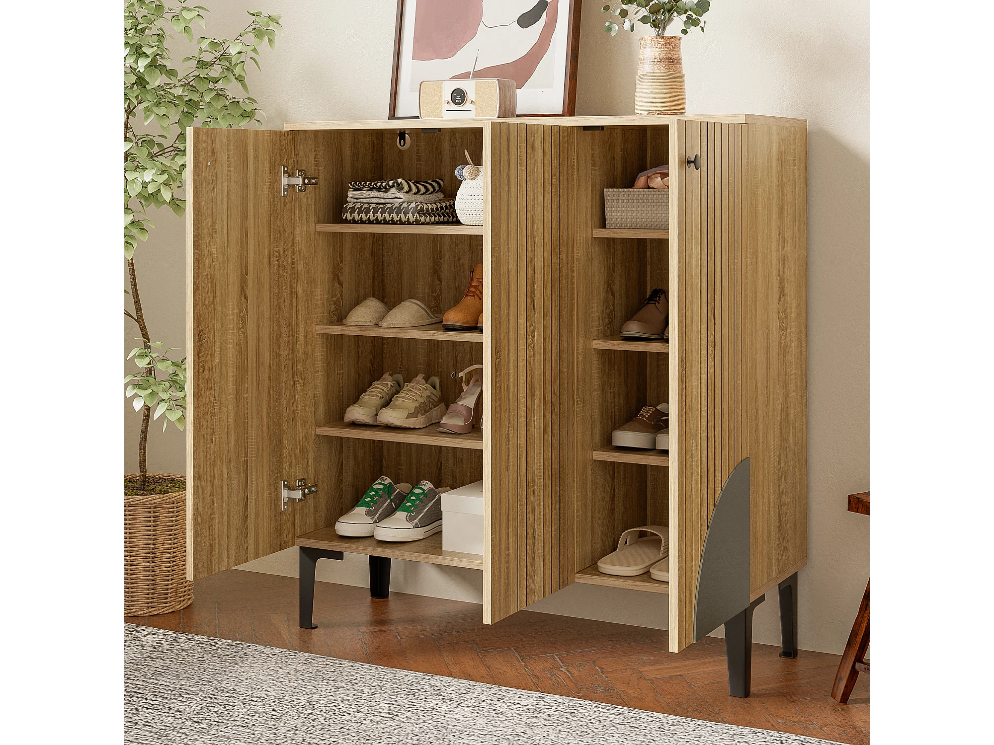 Moderner Schuhschrank – 90 x 32 x 94 cm – Holzoptik mit 3 Türen – Spanplatte – natur