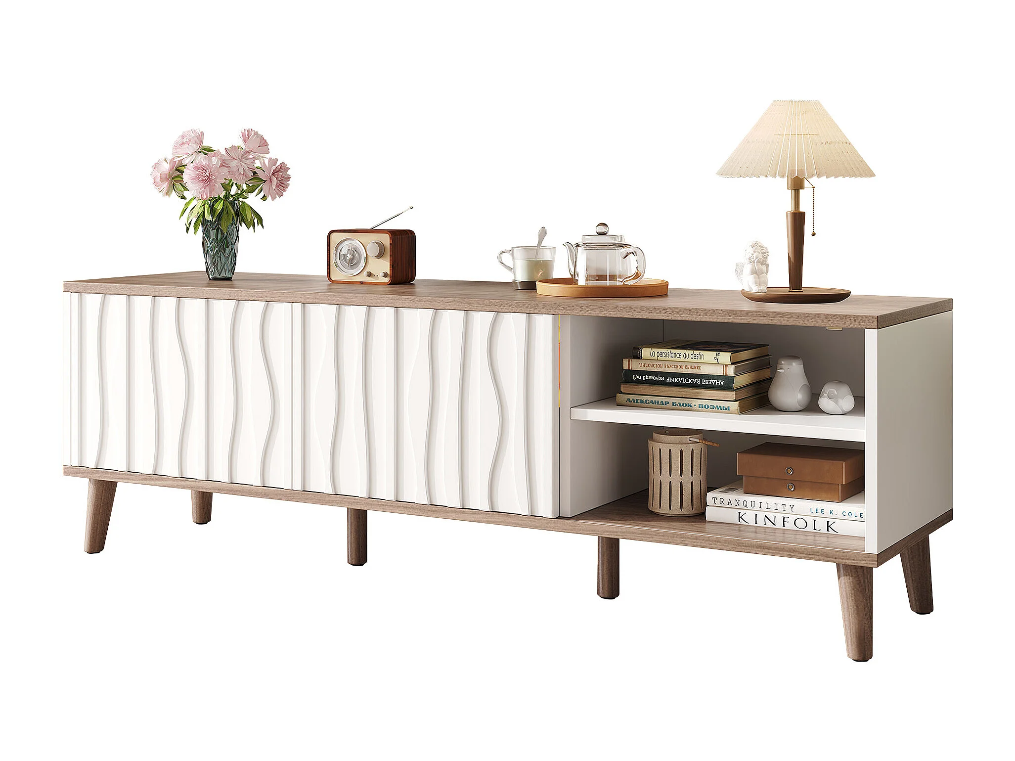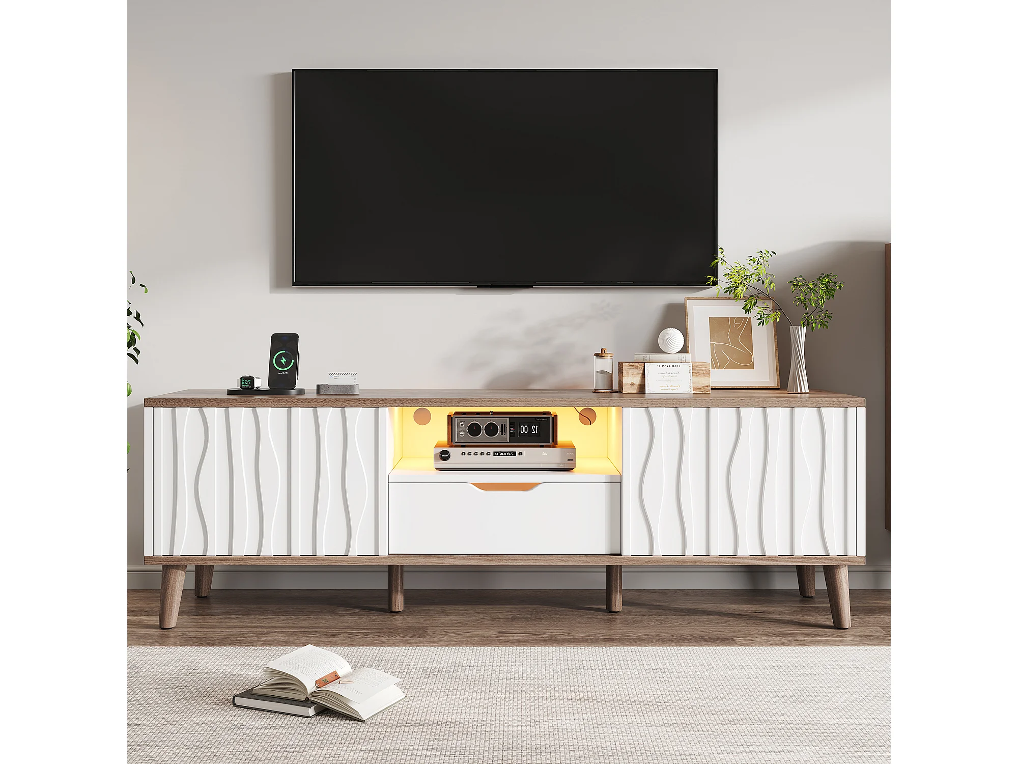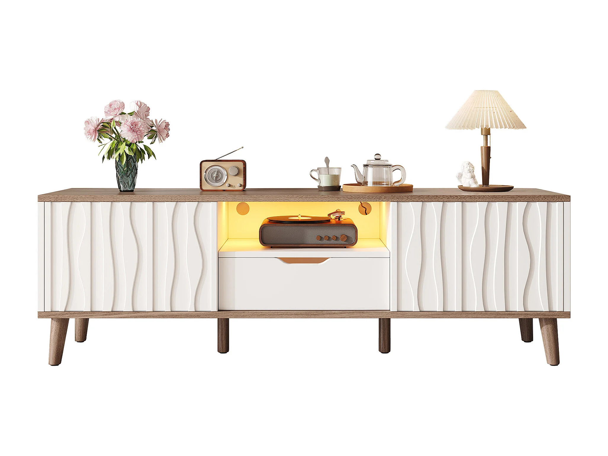 Moderner TV-Schrank 160 x 40 x 52 cm - mit LED-Beleuchtung - Schiebetüren - geeignet für Fernseher bis 70 Zoll - weiß