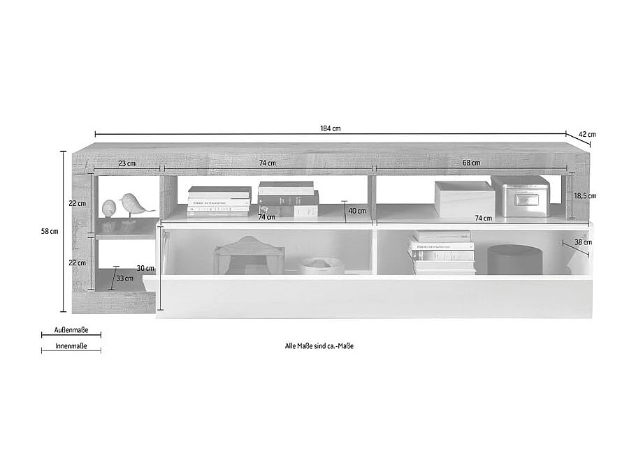 Moderner TV-Schrank aus Holz mit glänzend weißer Tür Dorian MR