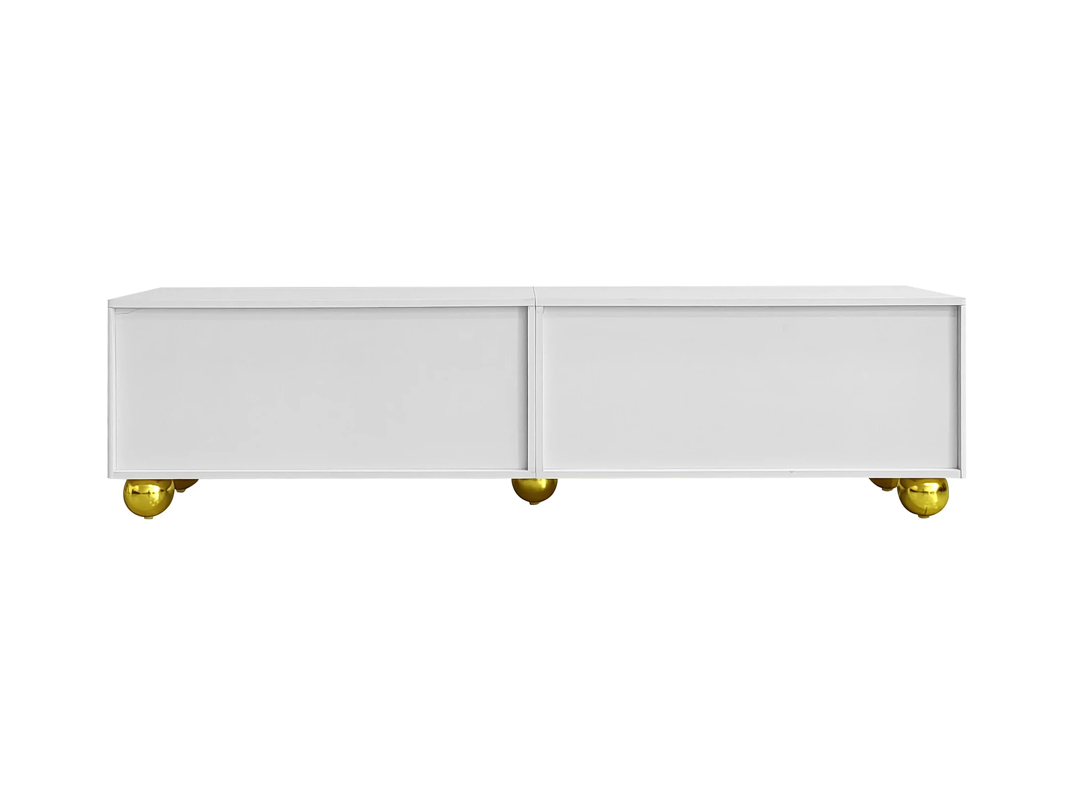 Moderner TV-Schrank – mit verstellbaren Regalen – aus Spanplatte – Weiß und Gold