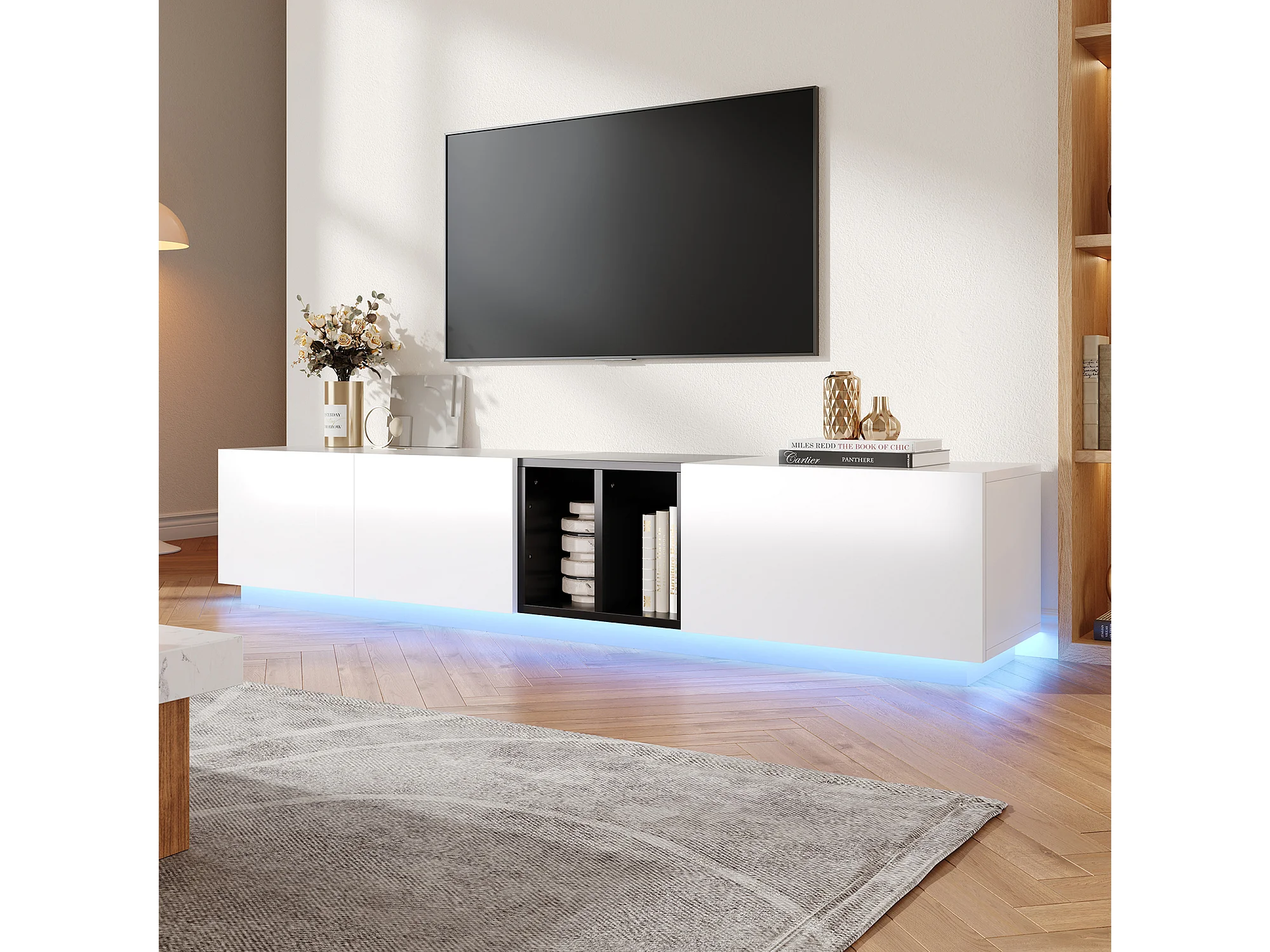 Moderner TV-Ständer – 190 x 40 x 35 cm – mit 1 Schublade, 2 Türen und offenen Fächern – Holz – weiß