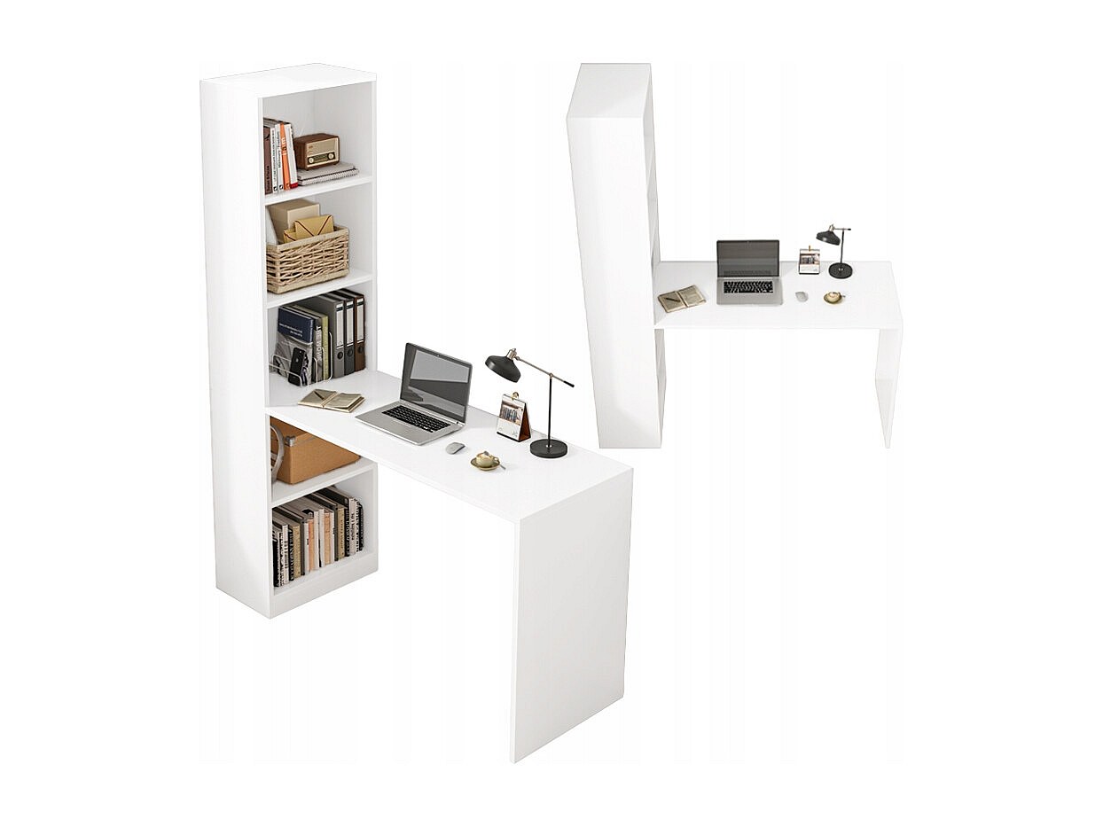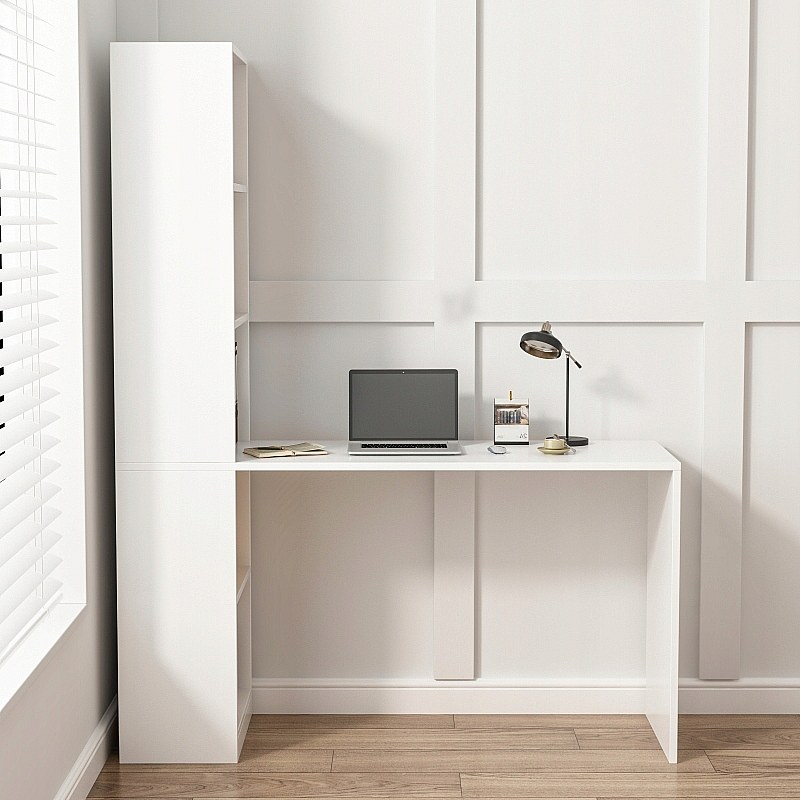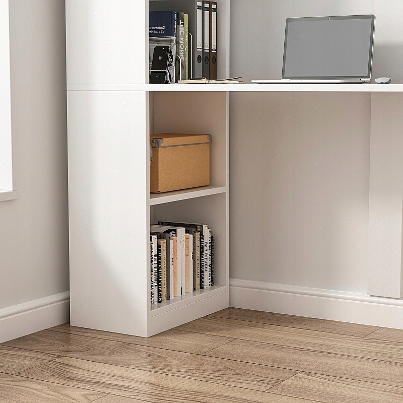 MODERNER WEISSER COMPUTERTISCH FÜR KINDER MIT REGALEN UND ABSTELLFLÄCHE 125 CM