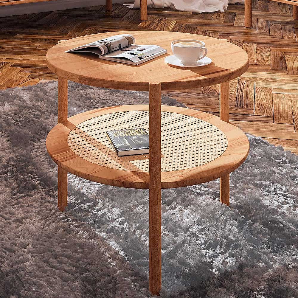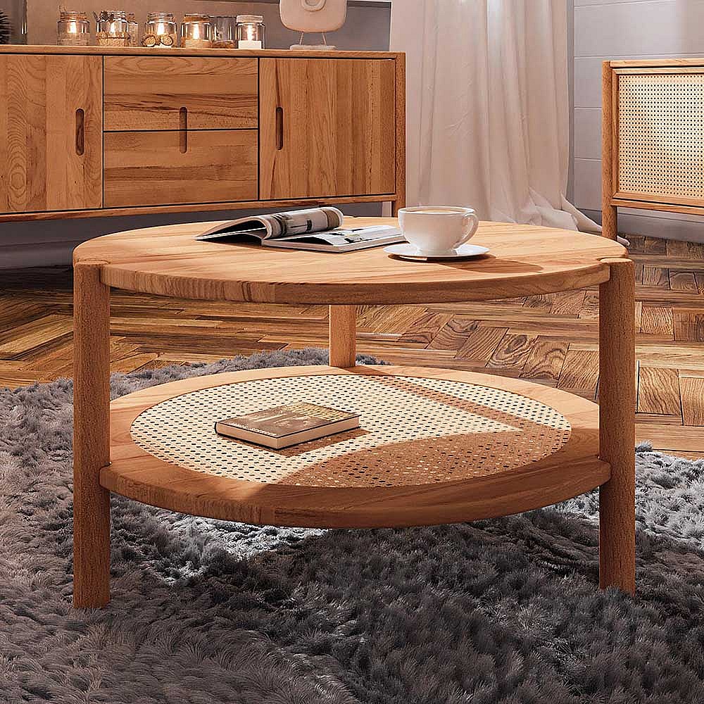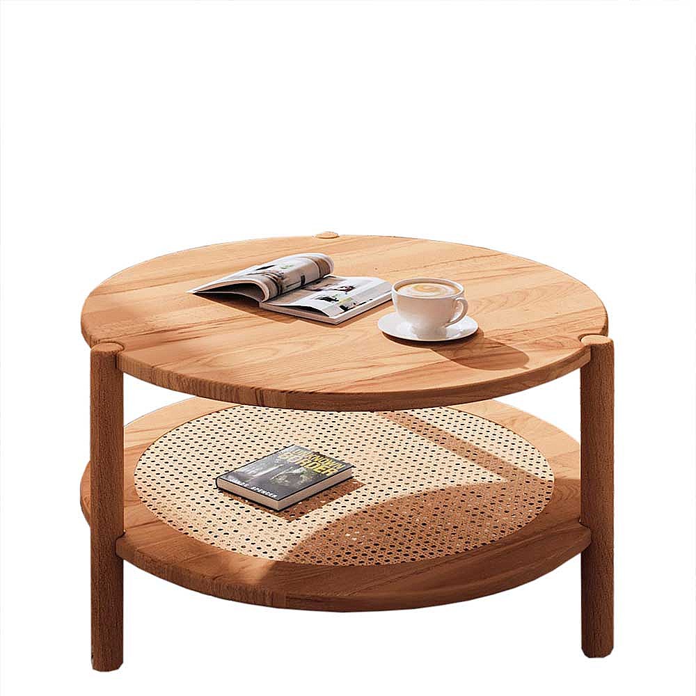 Moderner Wohnzimmertisch aus Rattan Geflecht Wildbuche Massivholz