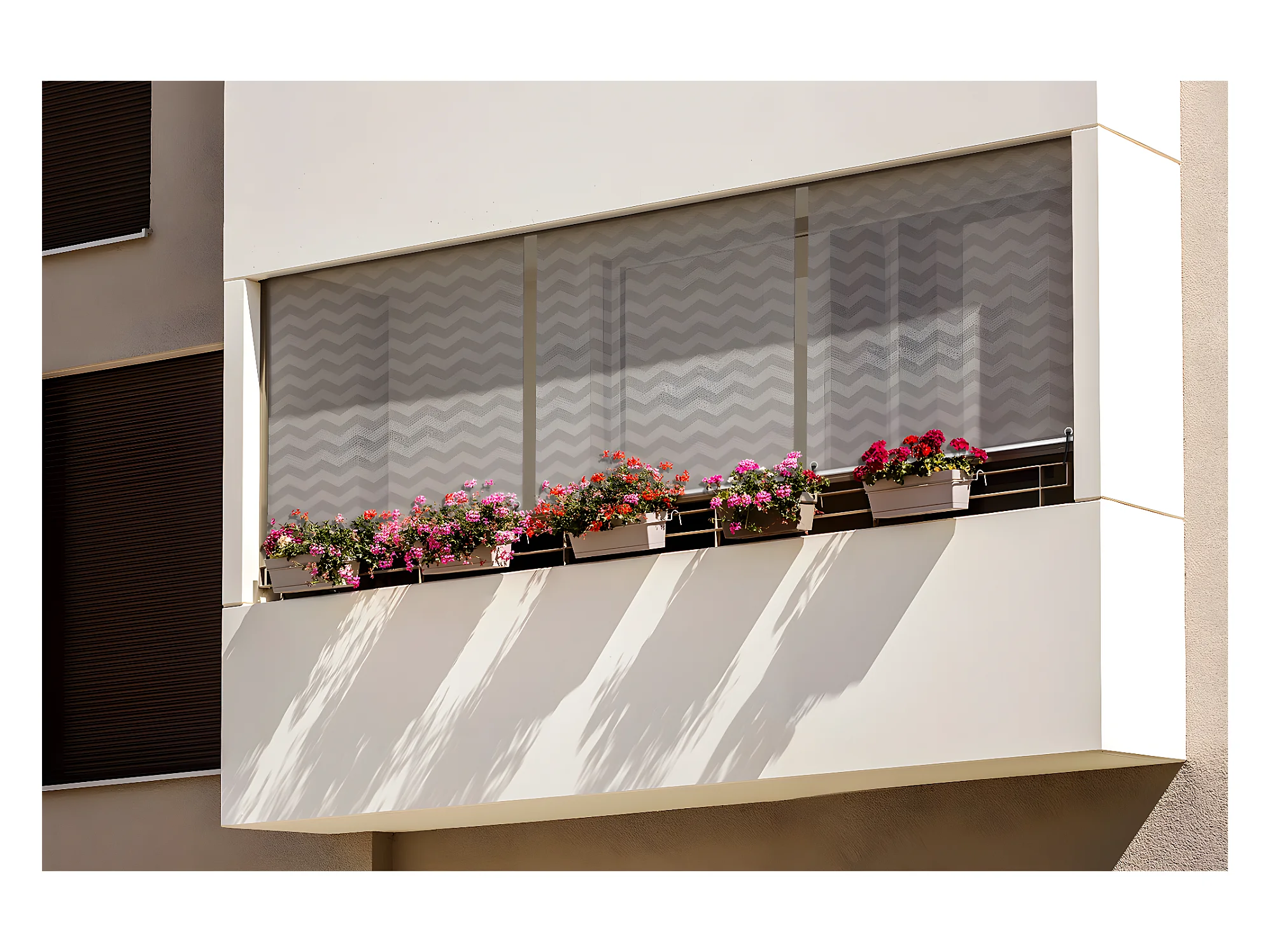 Modernes Außenrollo – 140 x 290 cm – Zickzackmuster in Grau. Balkonvorhang, Balkonrollos, Sonnenschutzvorhang