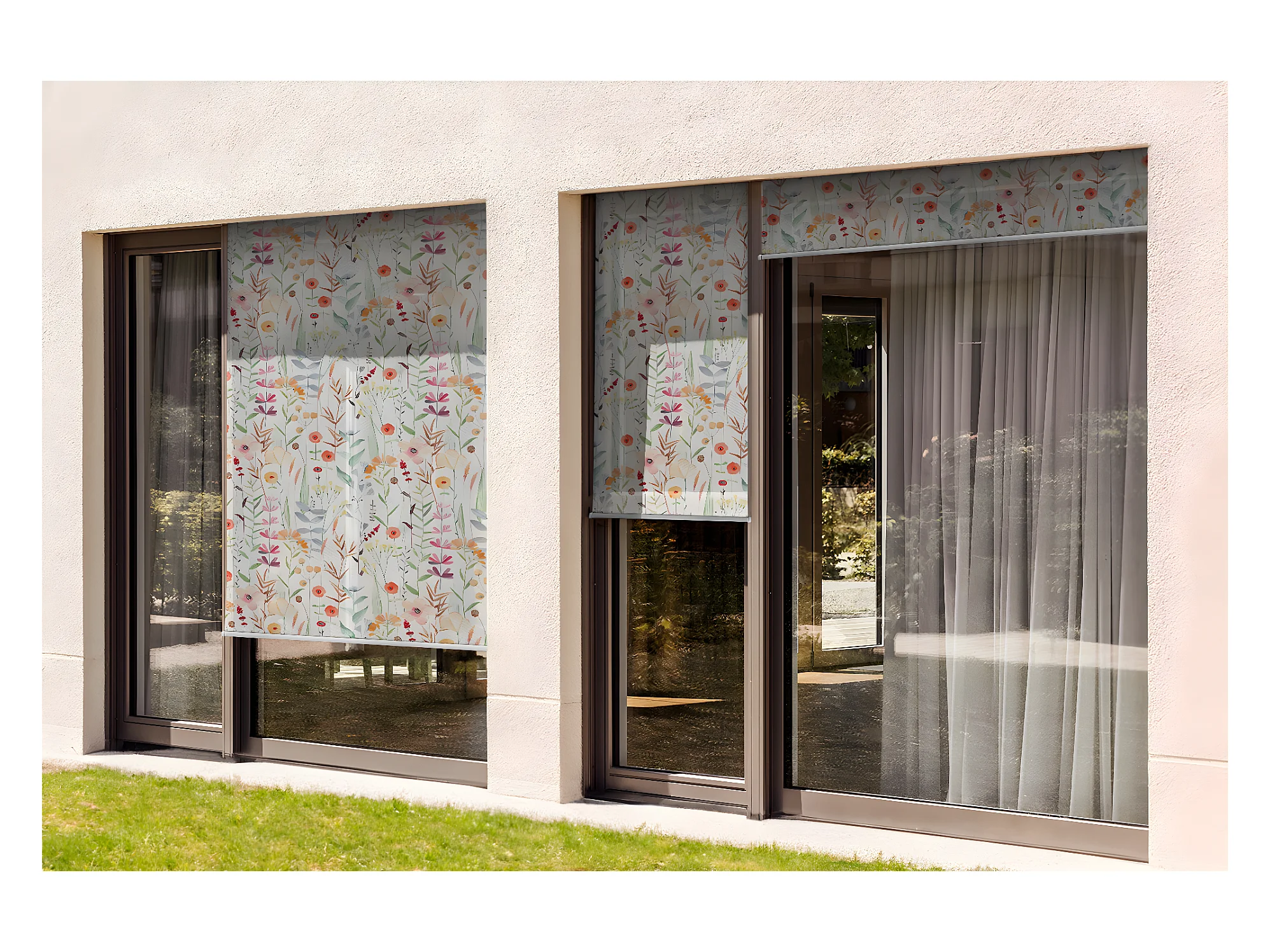 Modernes Außenrollo - 40x290 cm - Bunte Wiese Balkonvorhang, Balkonrollos, Sonnenschutzvorhang