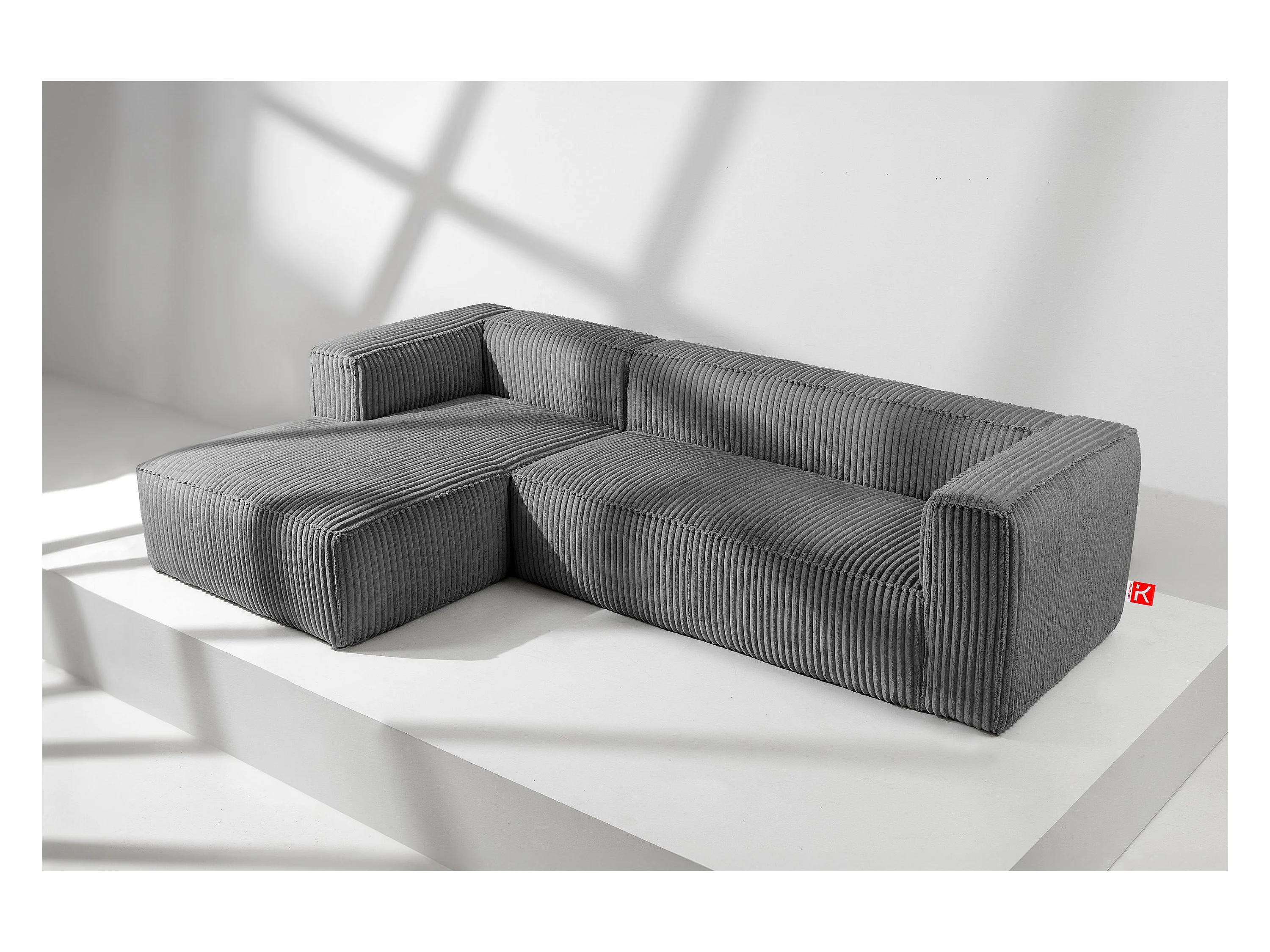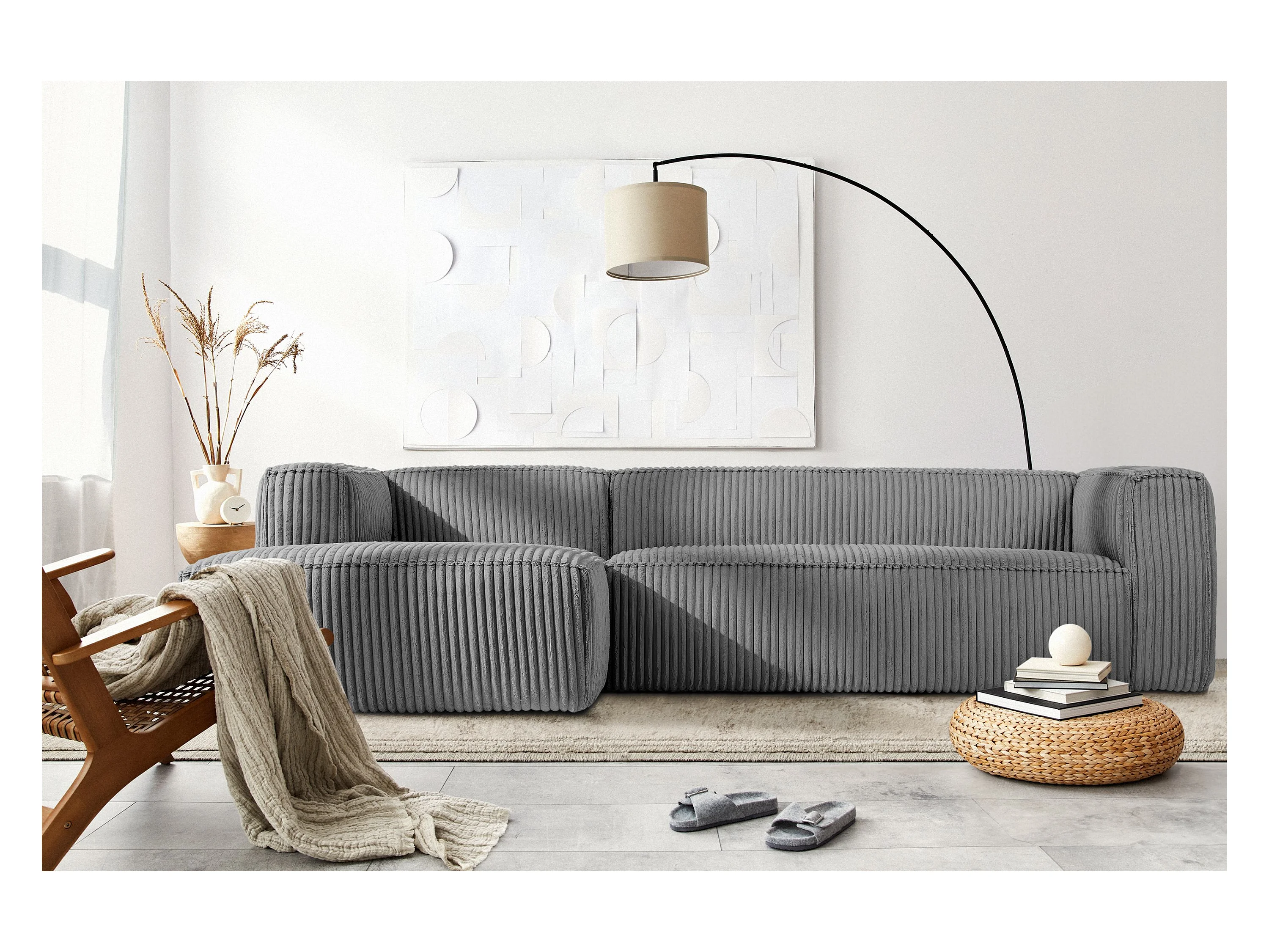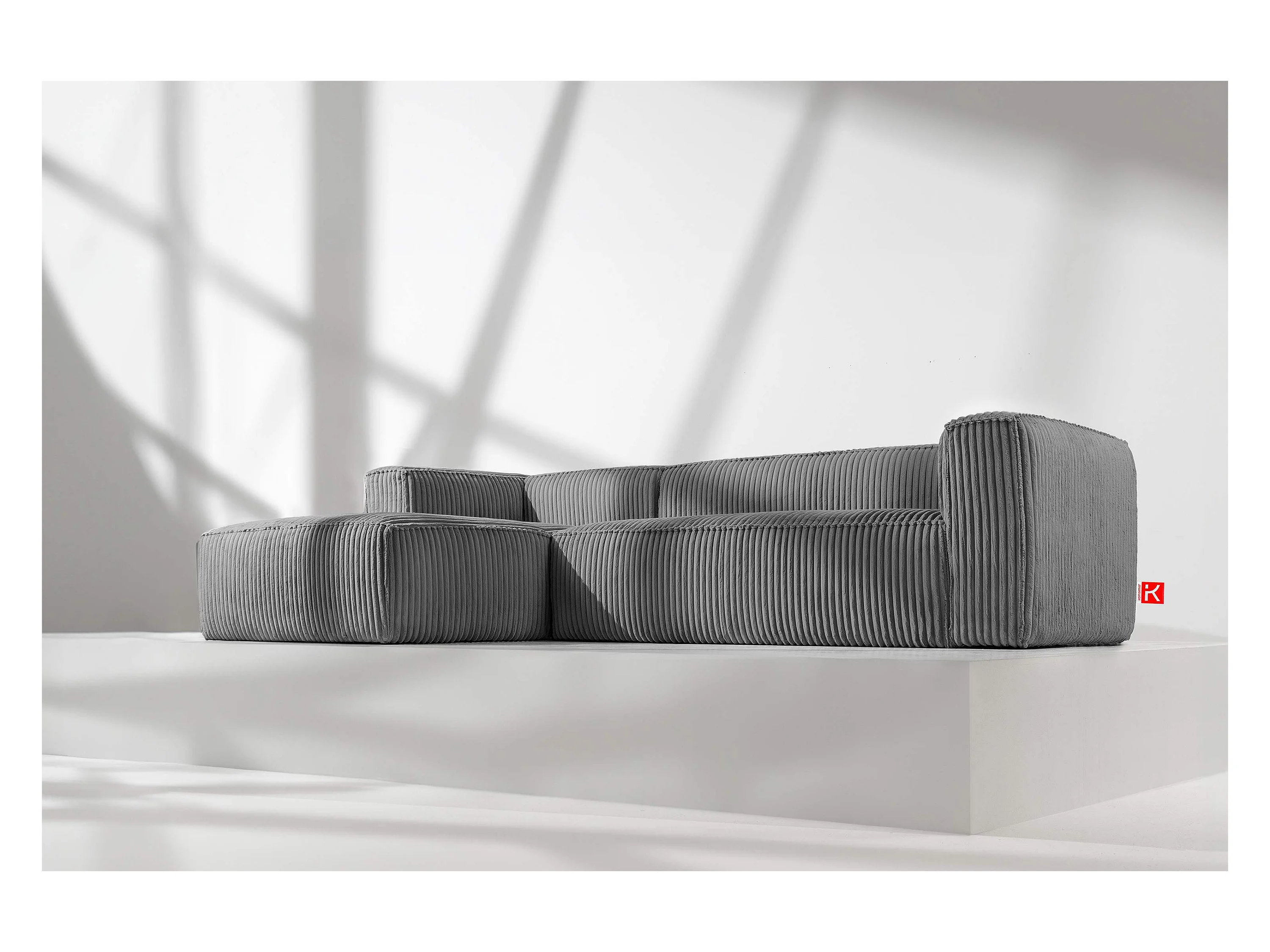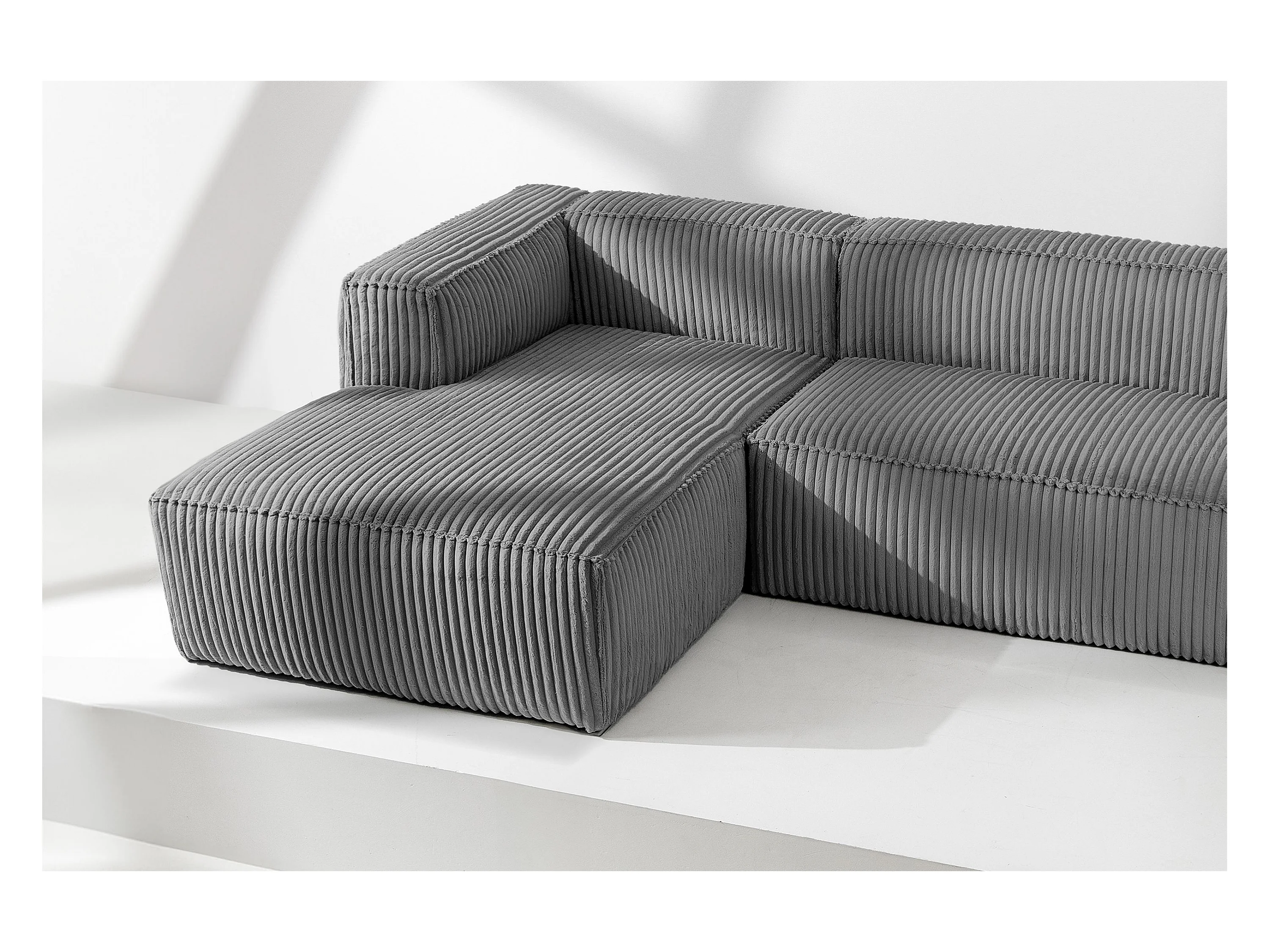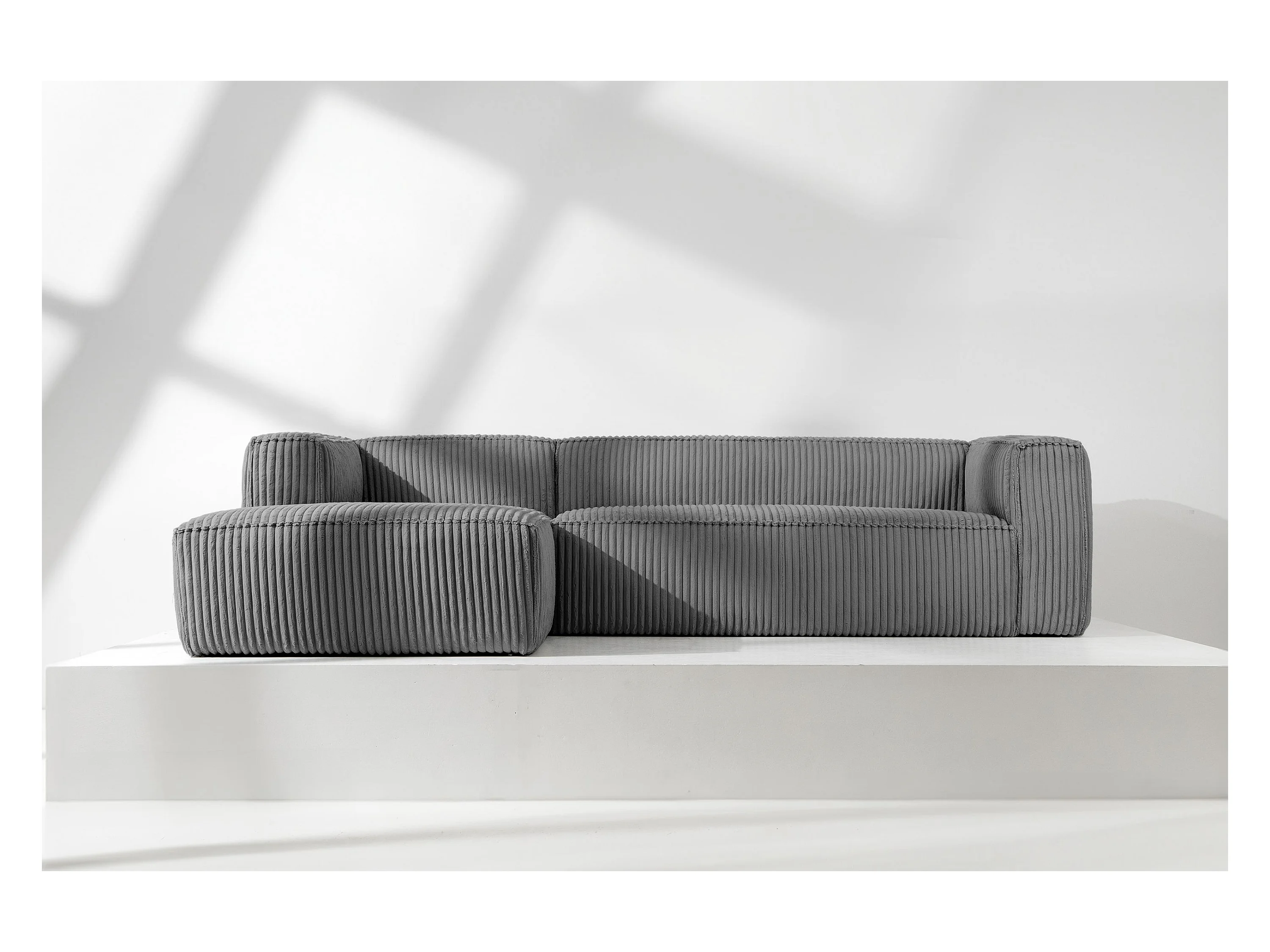 Modernes Ecksofa Links aus breitem Cordstoff - dunkelgrau - FEROX