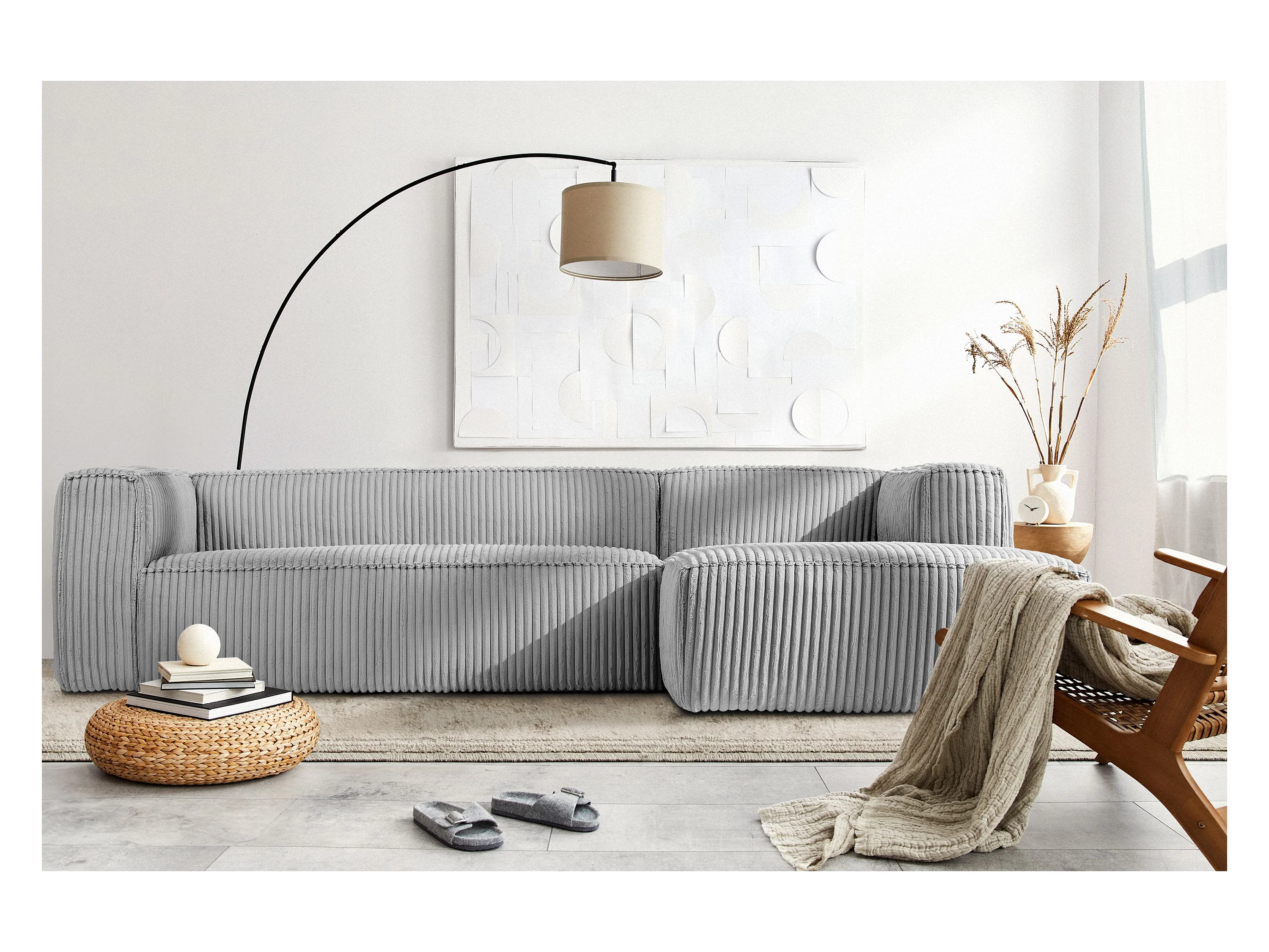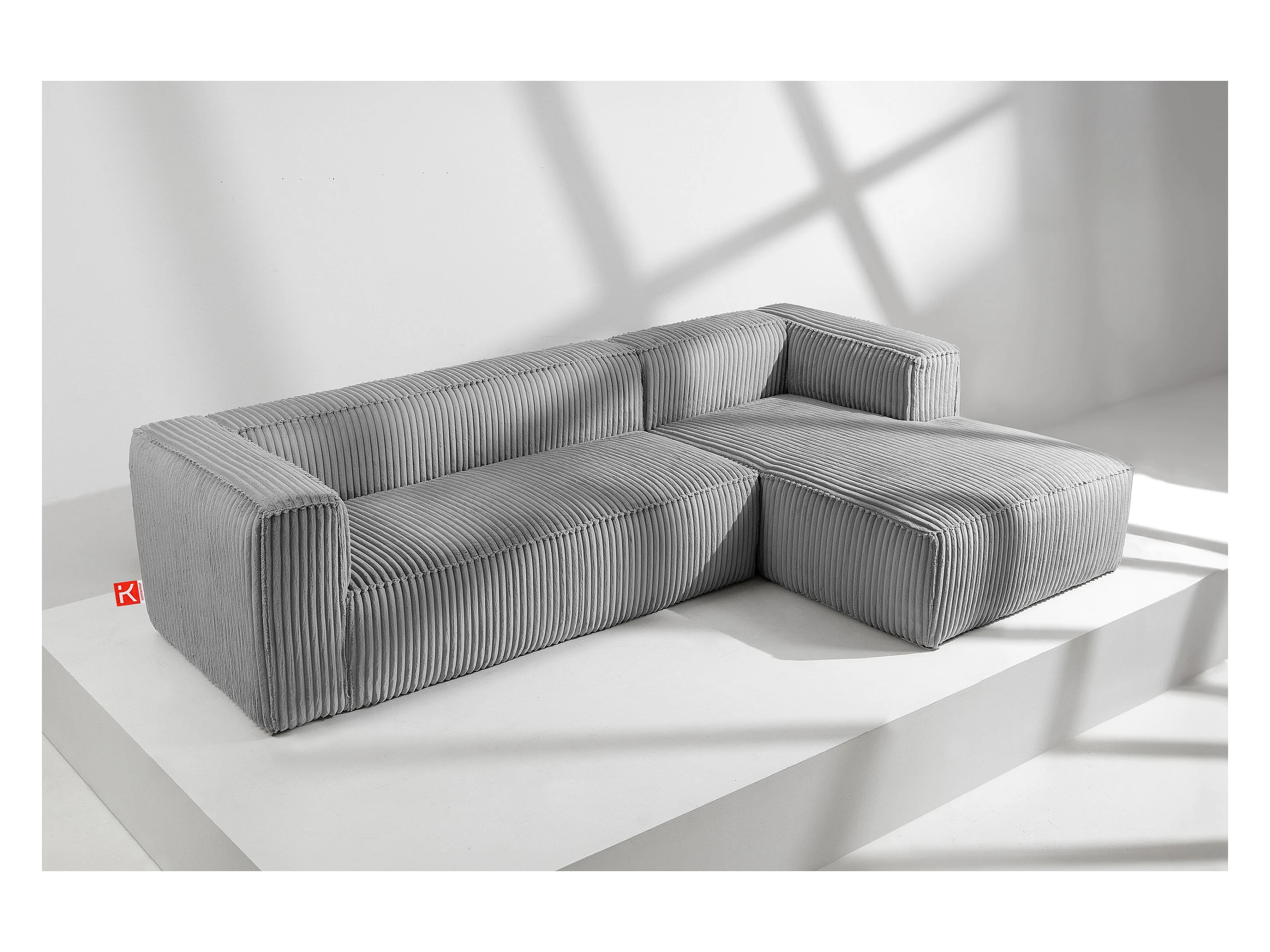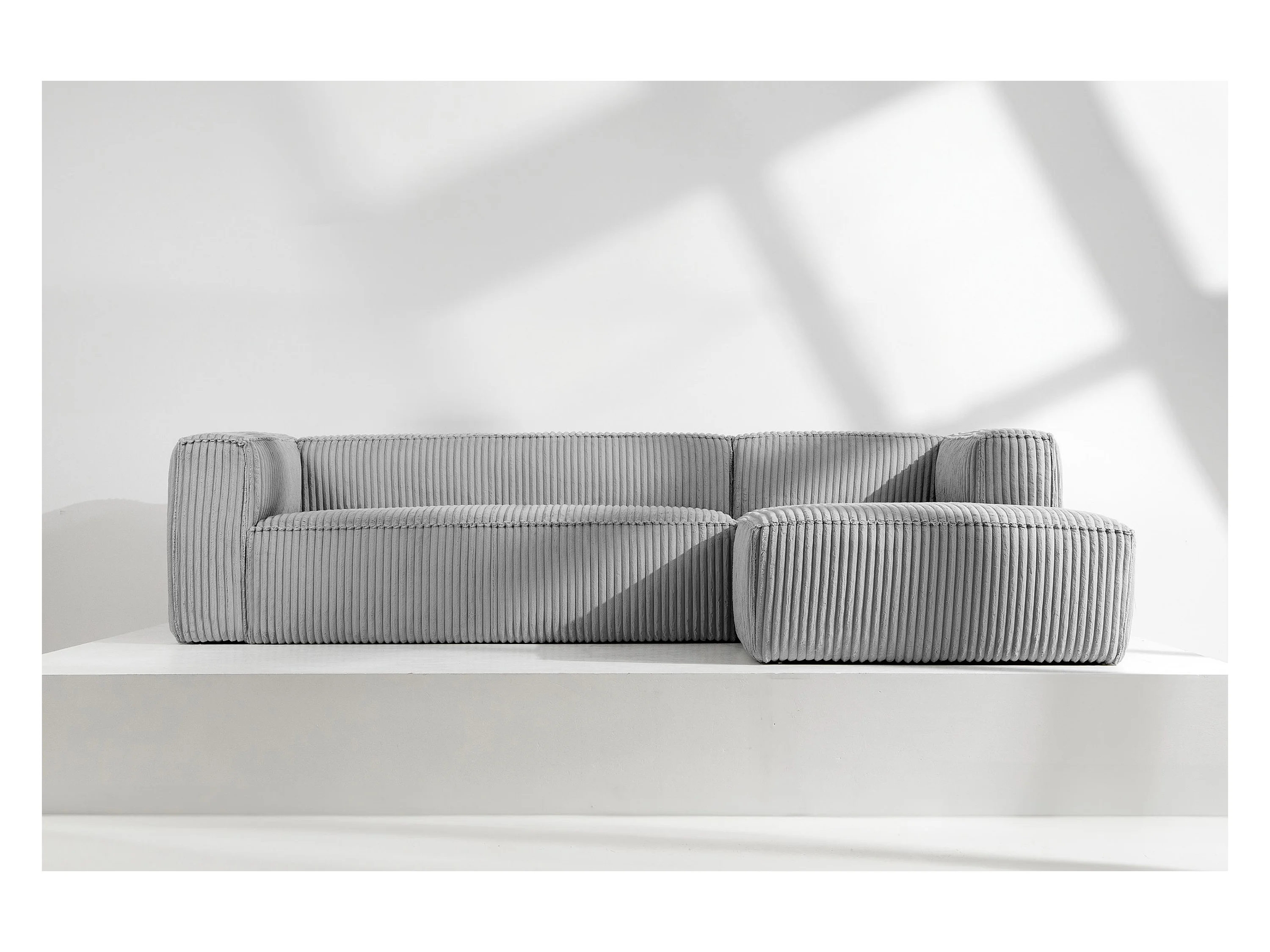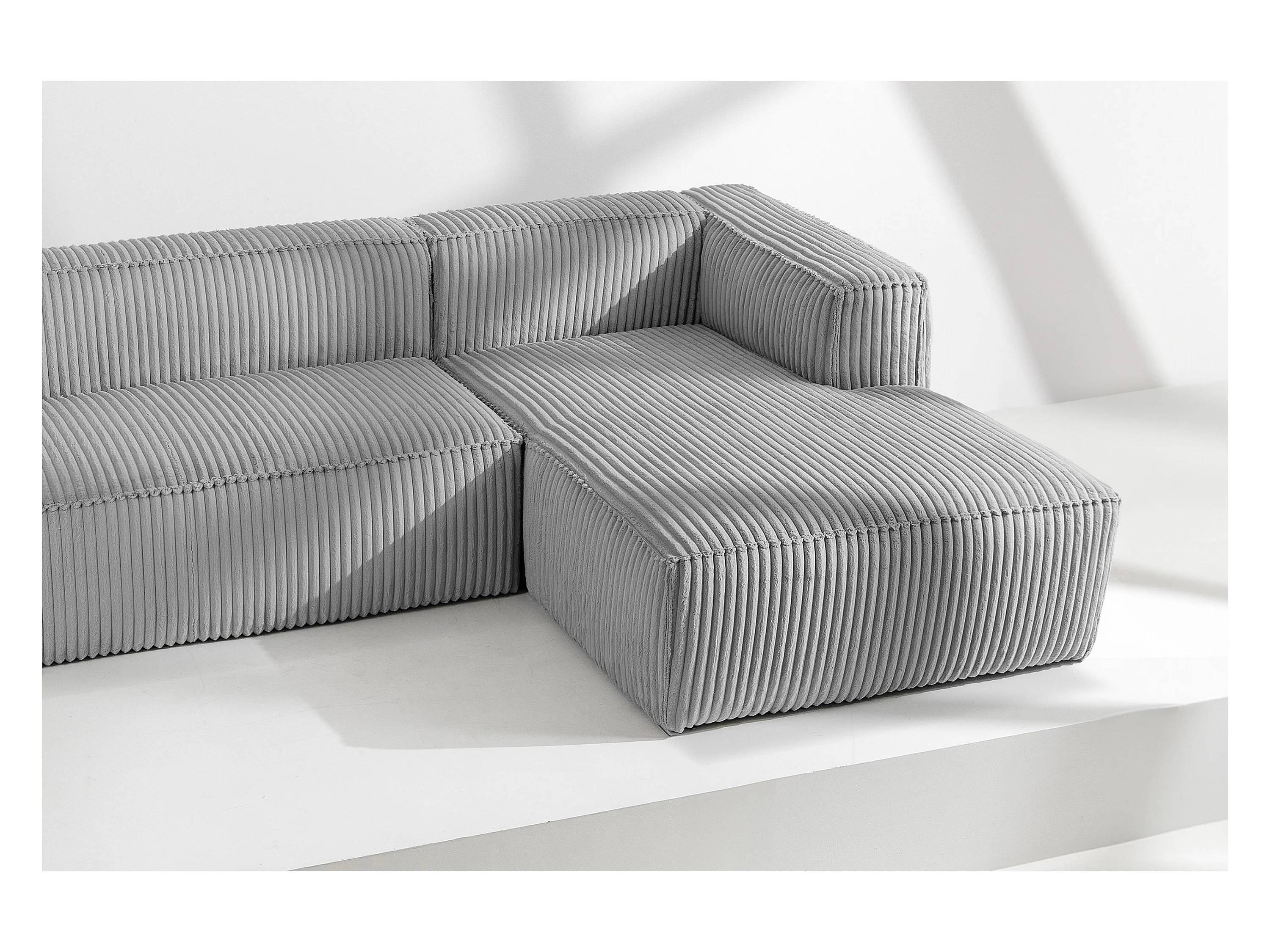 Modernes Ecksofa Rechts aus breitem Cordstoff - hellgrau - FEROX