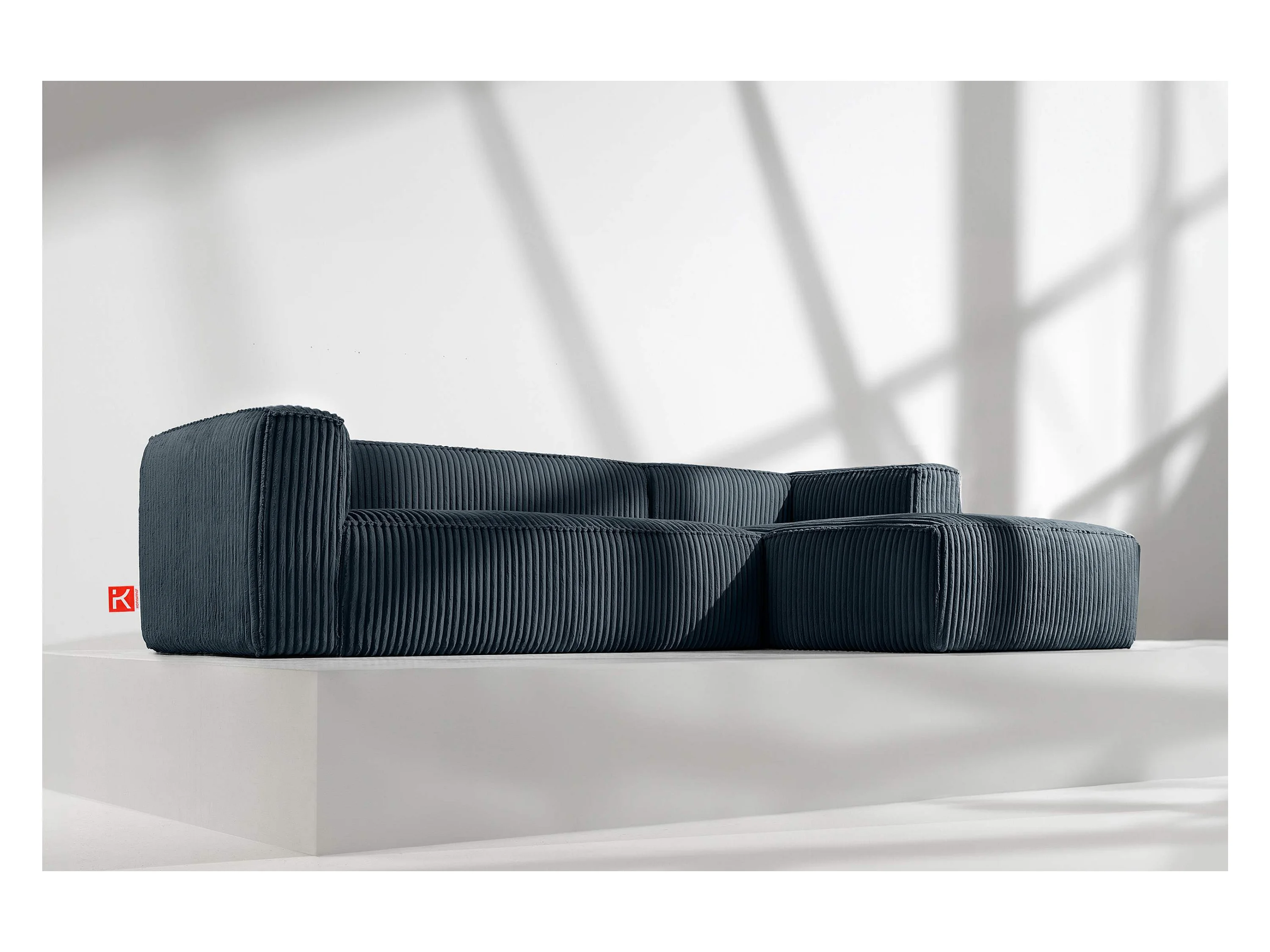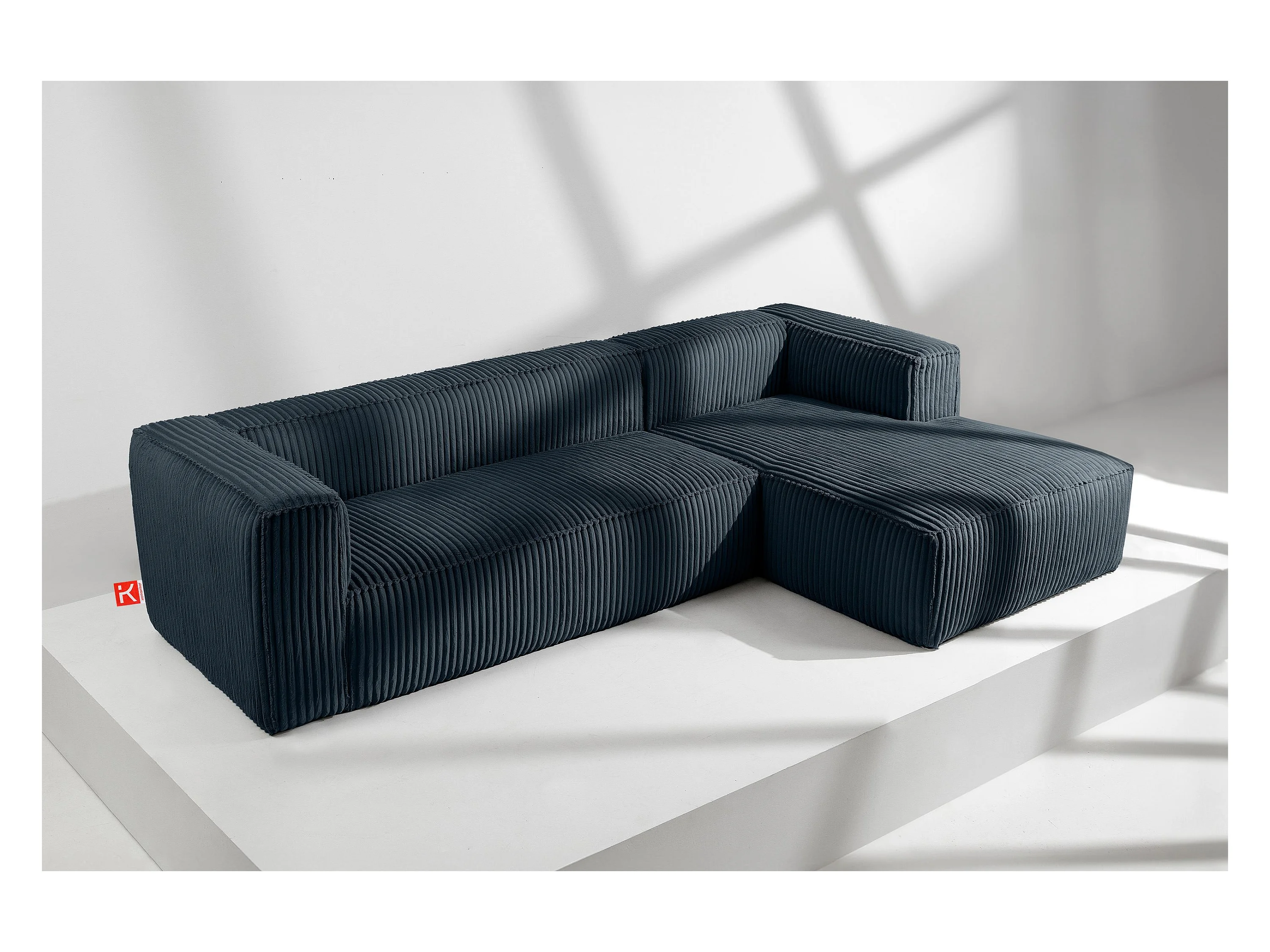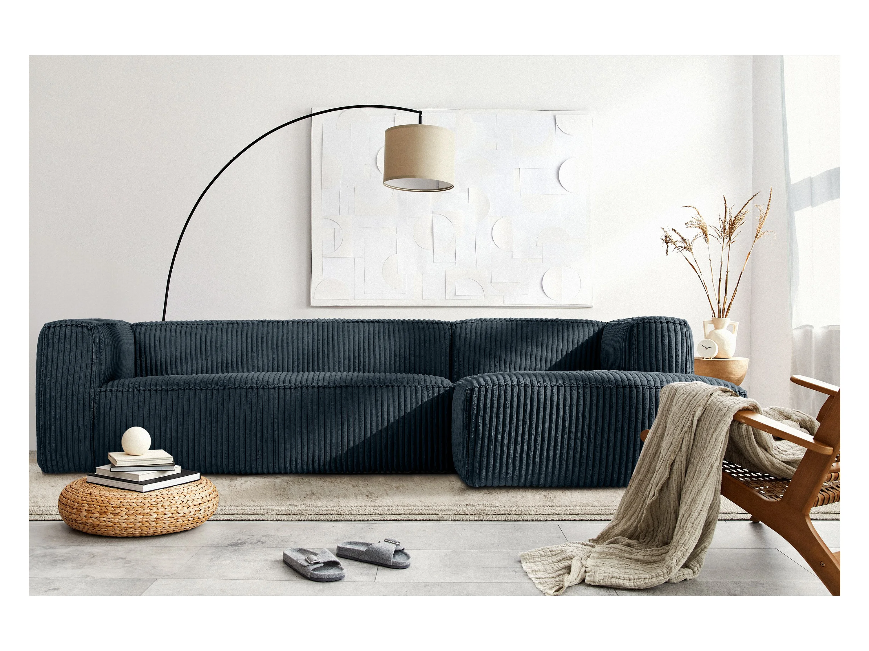 Modernes Ecksofa Rechts aus breitem Cordstoff - marineblau - FEROX