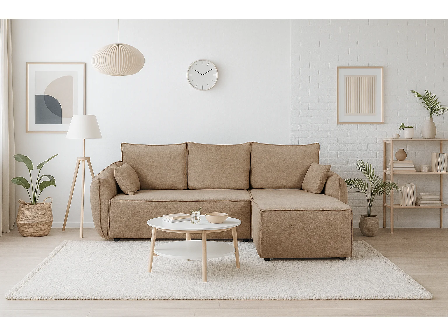 Modernes Ecksofa rechts SELLMA in beigem Stoff RAVEN 30
