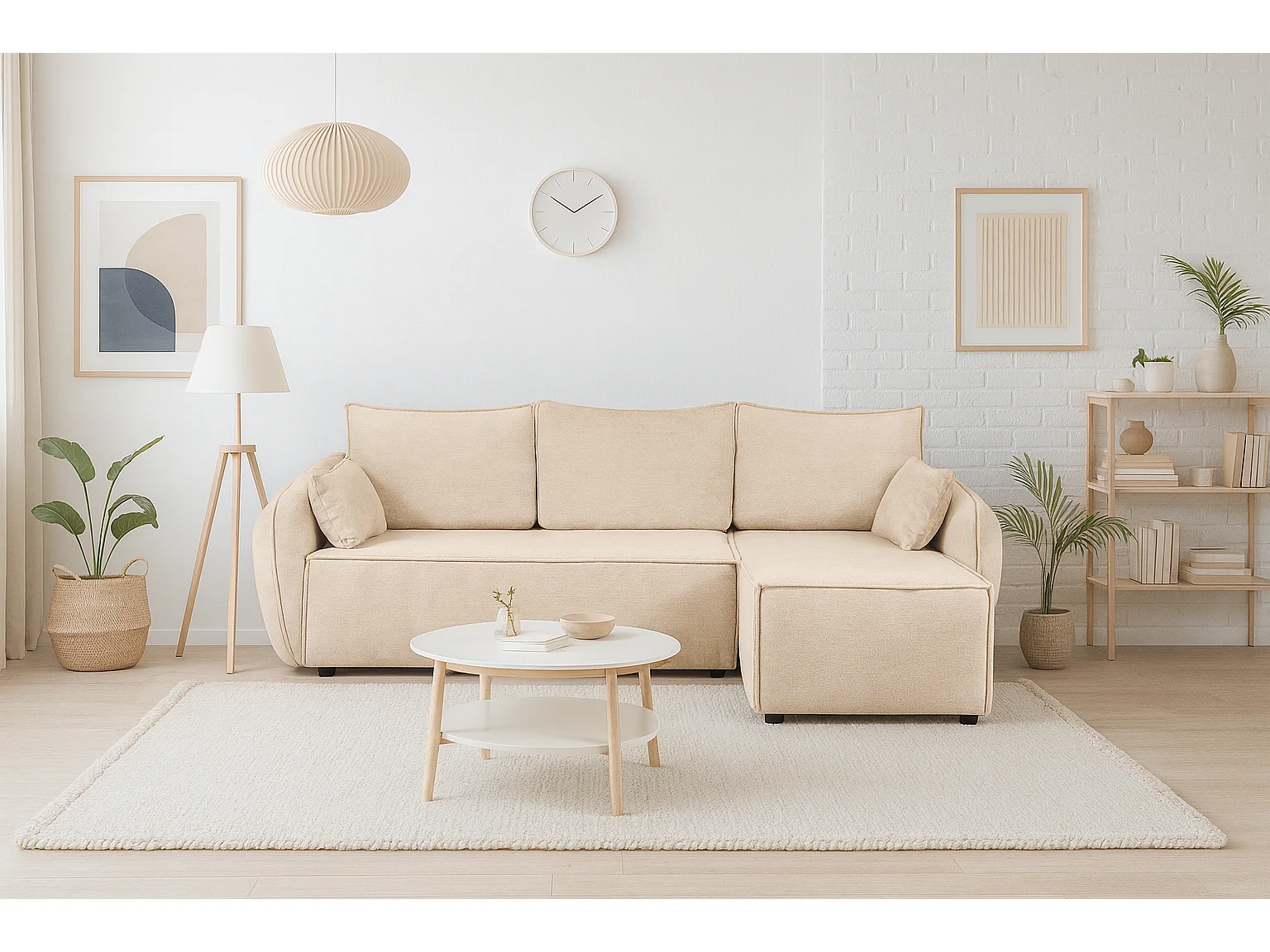 Modernes Ecksofa rechts SELLMA in cremefarbenem Stoff RAVEN 24
