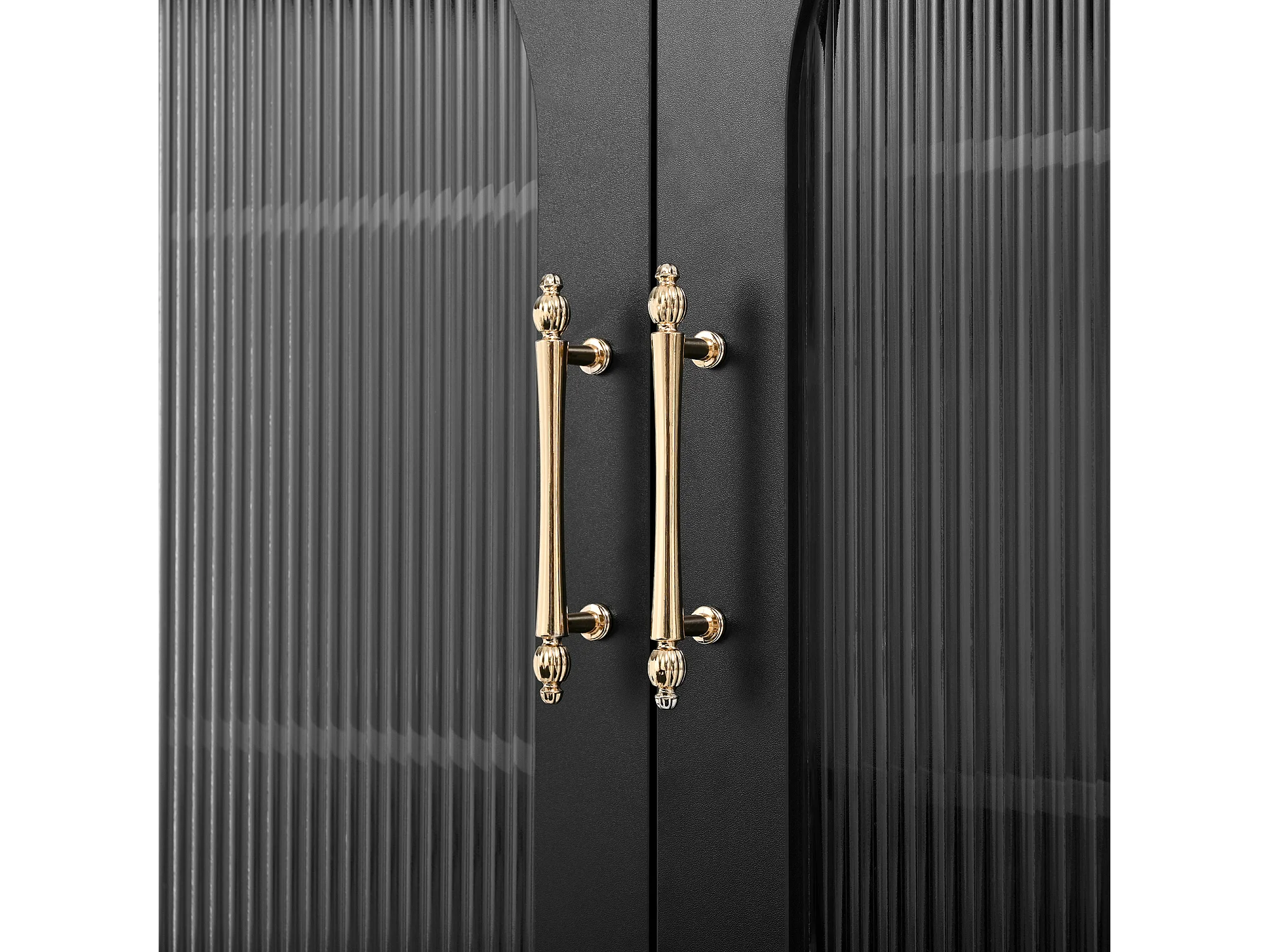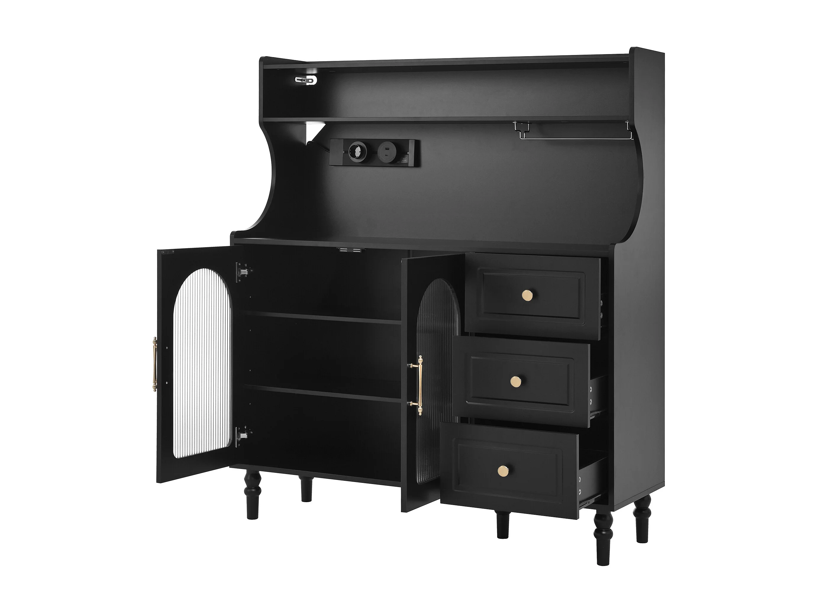 Modernes Küchenbuffet 120x40x138.5cm - mit Steckdose und Weinglashaltern - mit 3 Schubladen und 2 Türen - Schwarz