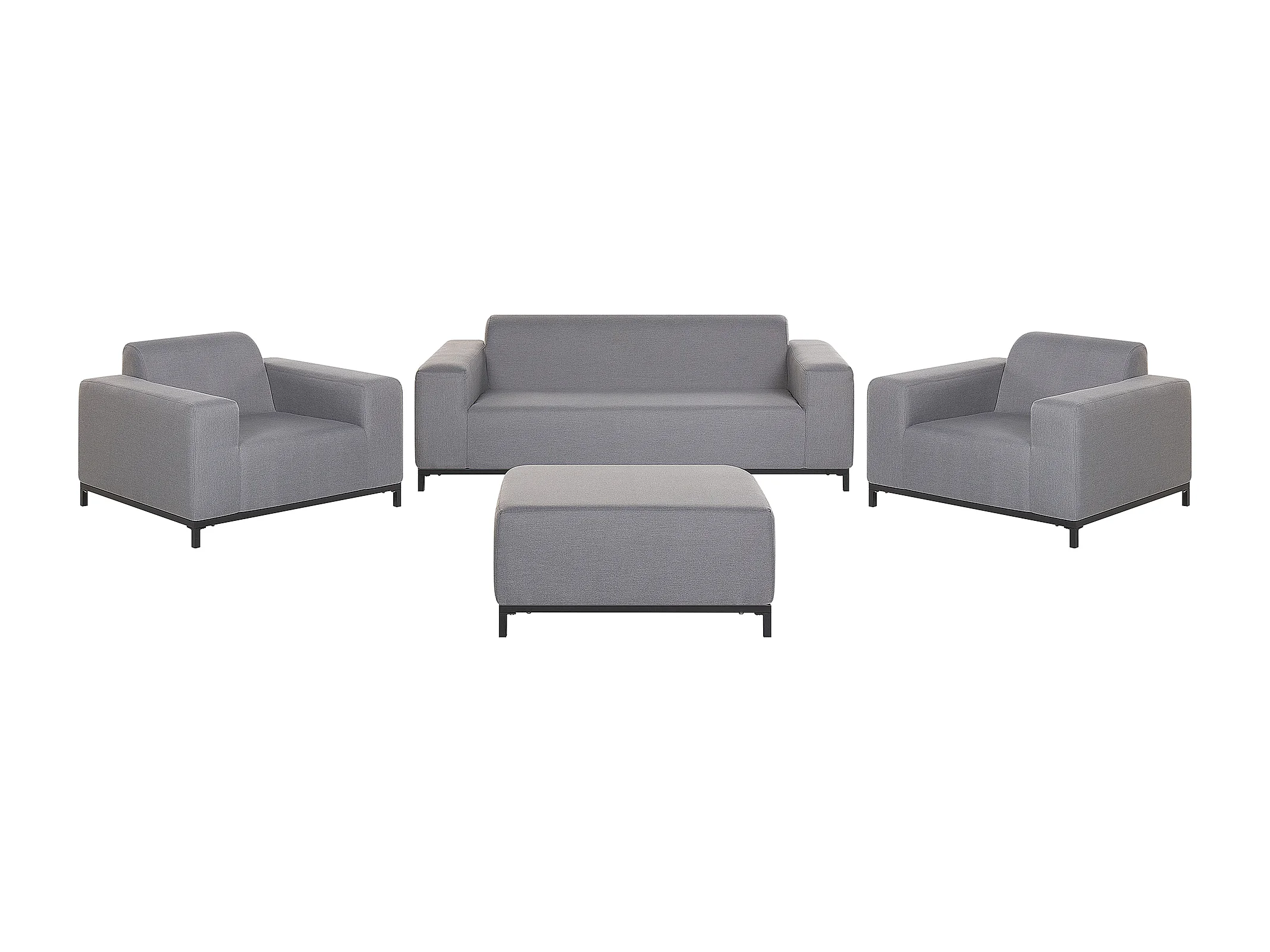 Modernes Loungeset 4-teiliges Polsterbezug / schwarzes Gestell grau Rovigo