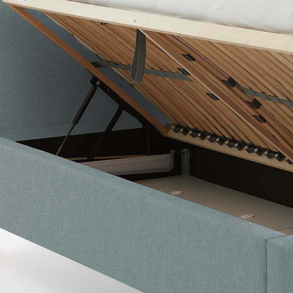 Modernes Polster Bett in Hellblau Vierfu�gestell aus Holz