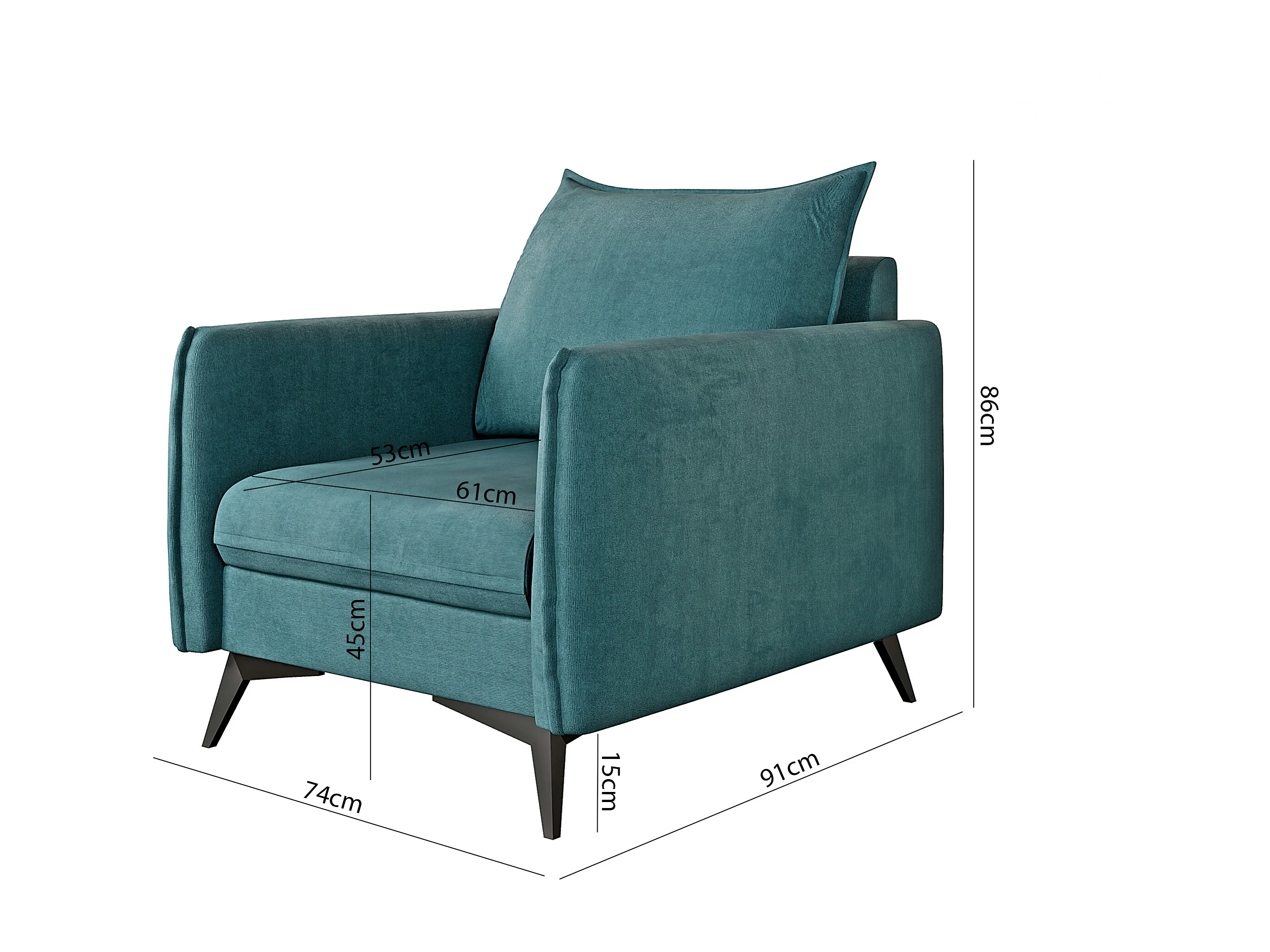 Modernes Polstergarnitur 3+2+1 Harris mit Schwarz Metall Füßen