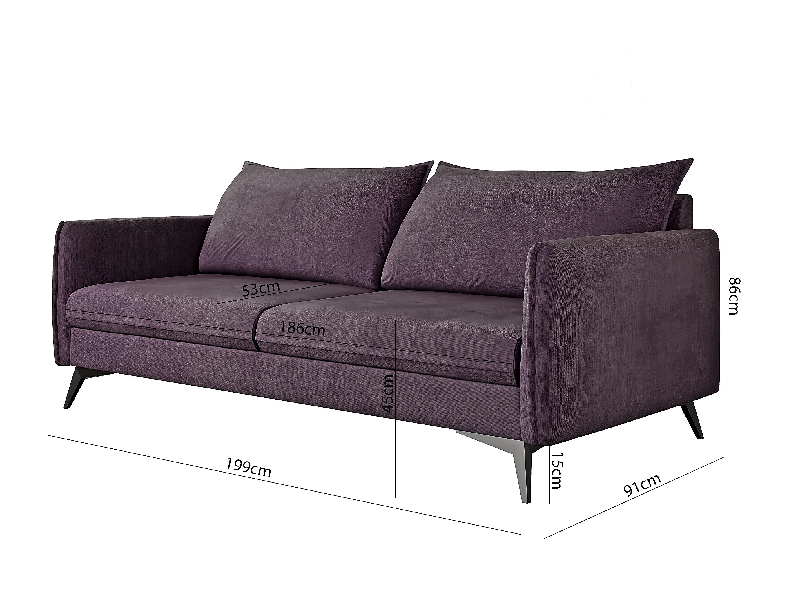 Modernes Polstergarnitur 3+2+1 Harris mit Schwarz Metall Füßen