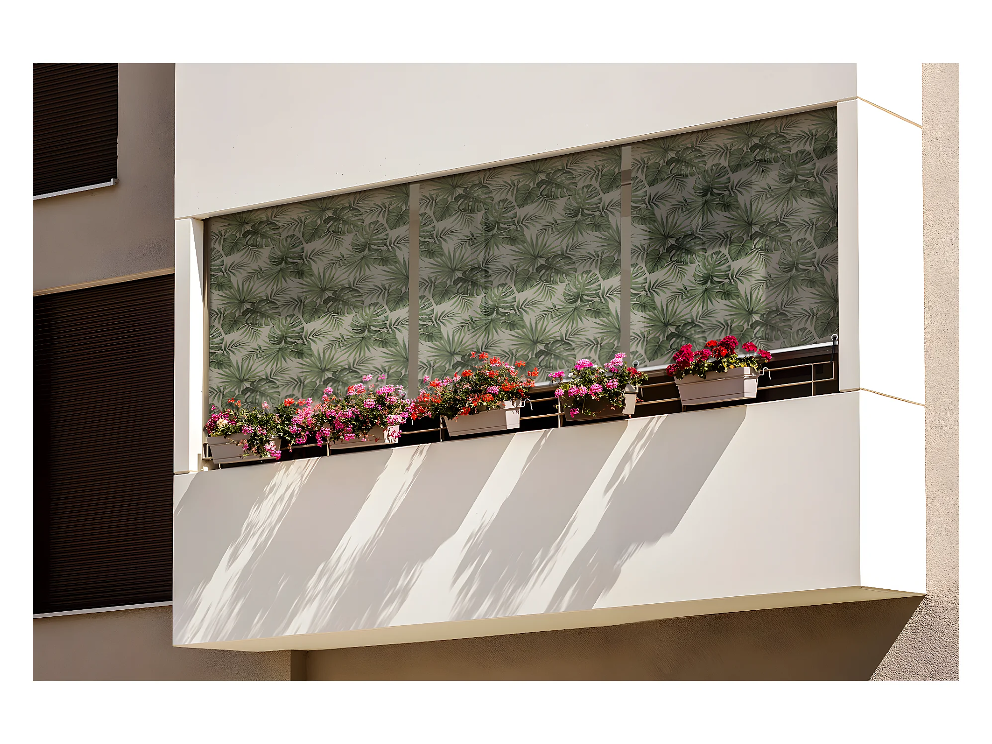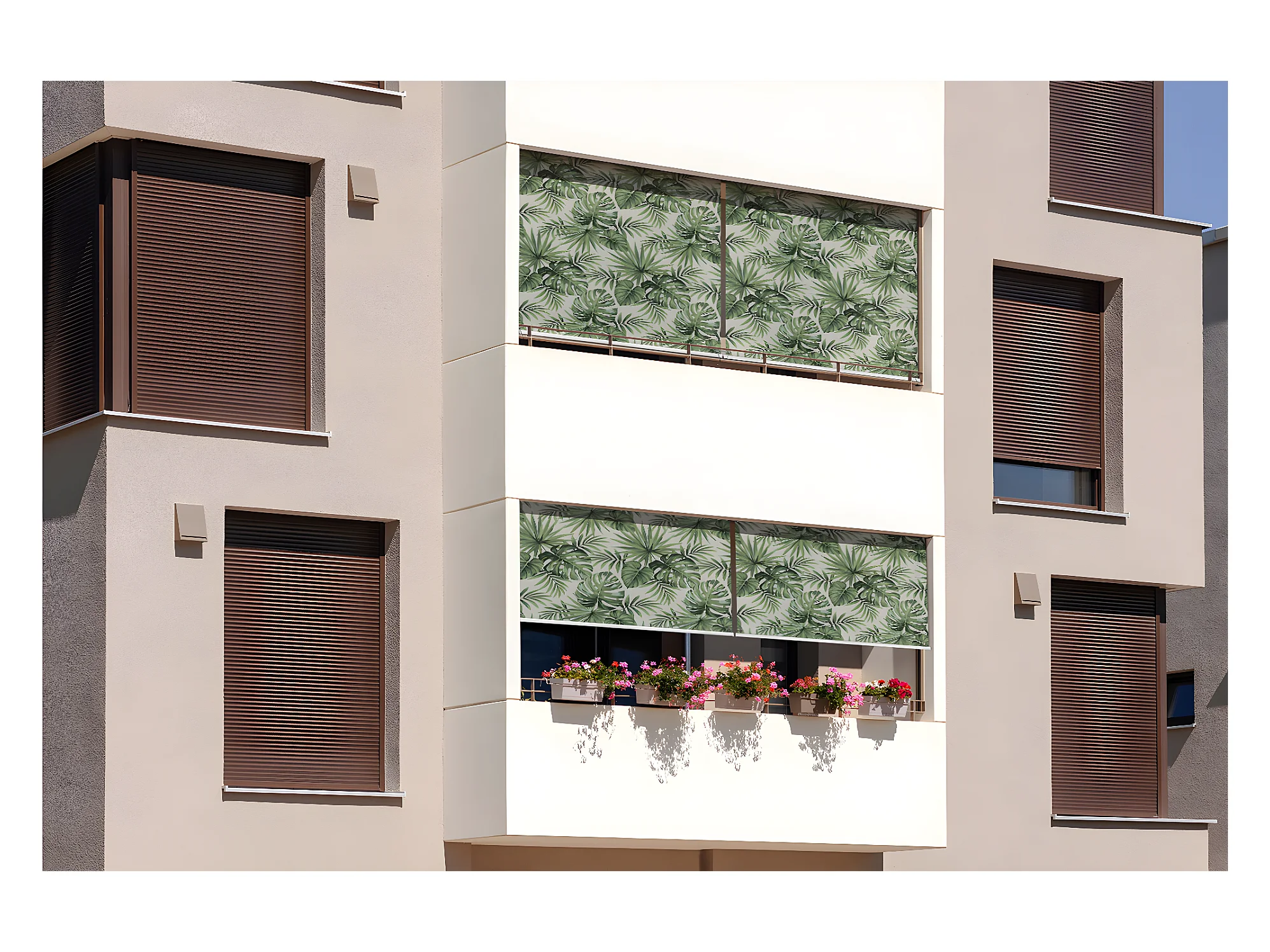 Modernes Rollo für den Außenbereich – 40 x 180 cm – Tropische Pflanzenblätter. Balkonvorhang, Balkonrollos, Sonnenschutzvorhang