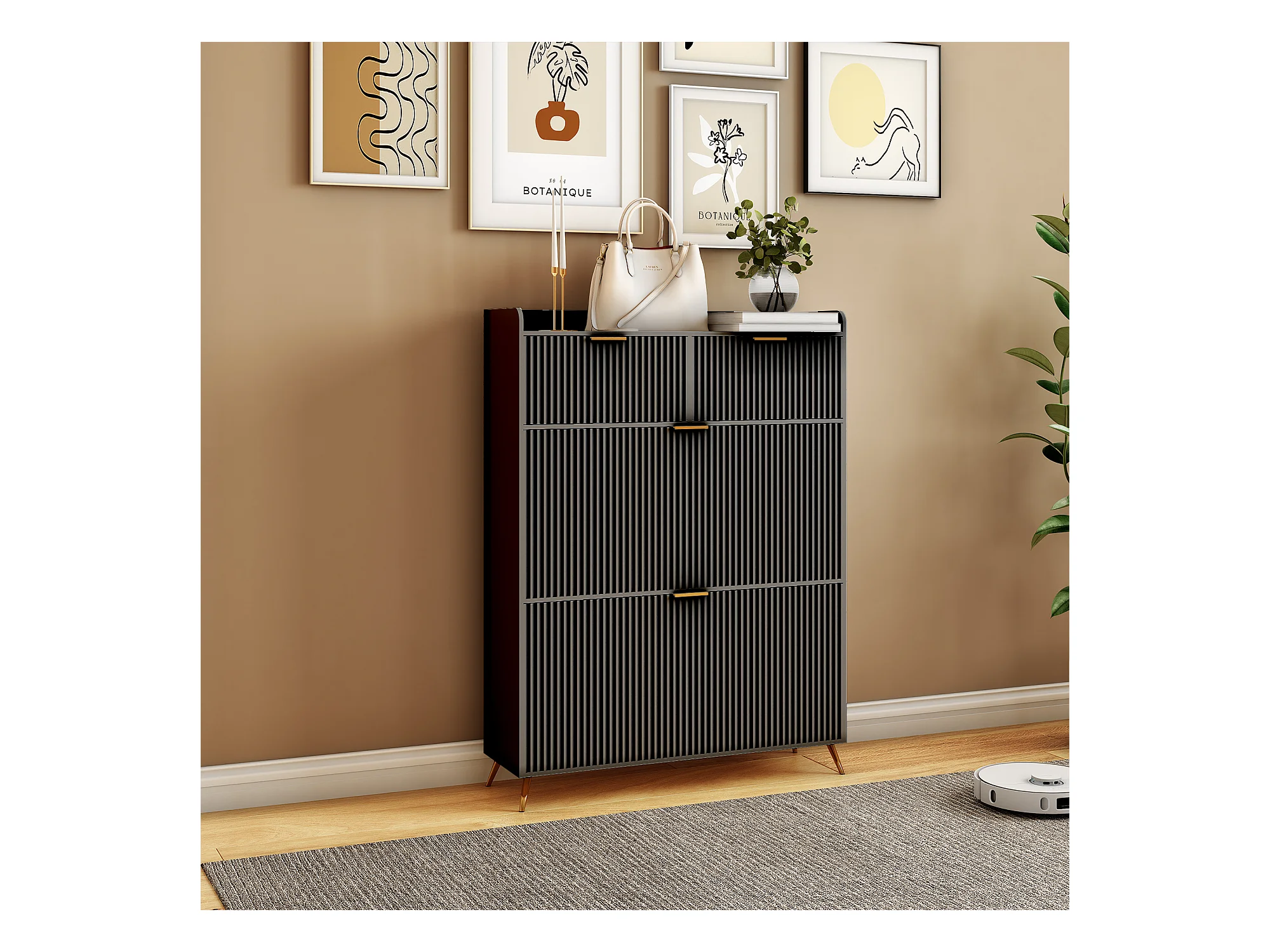 Modernes schwarzes Schuhregal mit 2 Schubladen und 2 Kipptüren – minimalistisches und funktionales Design