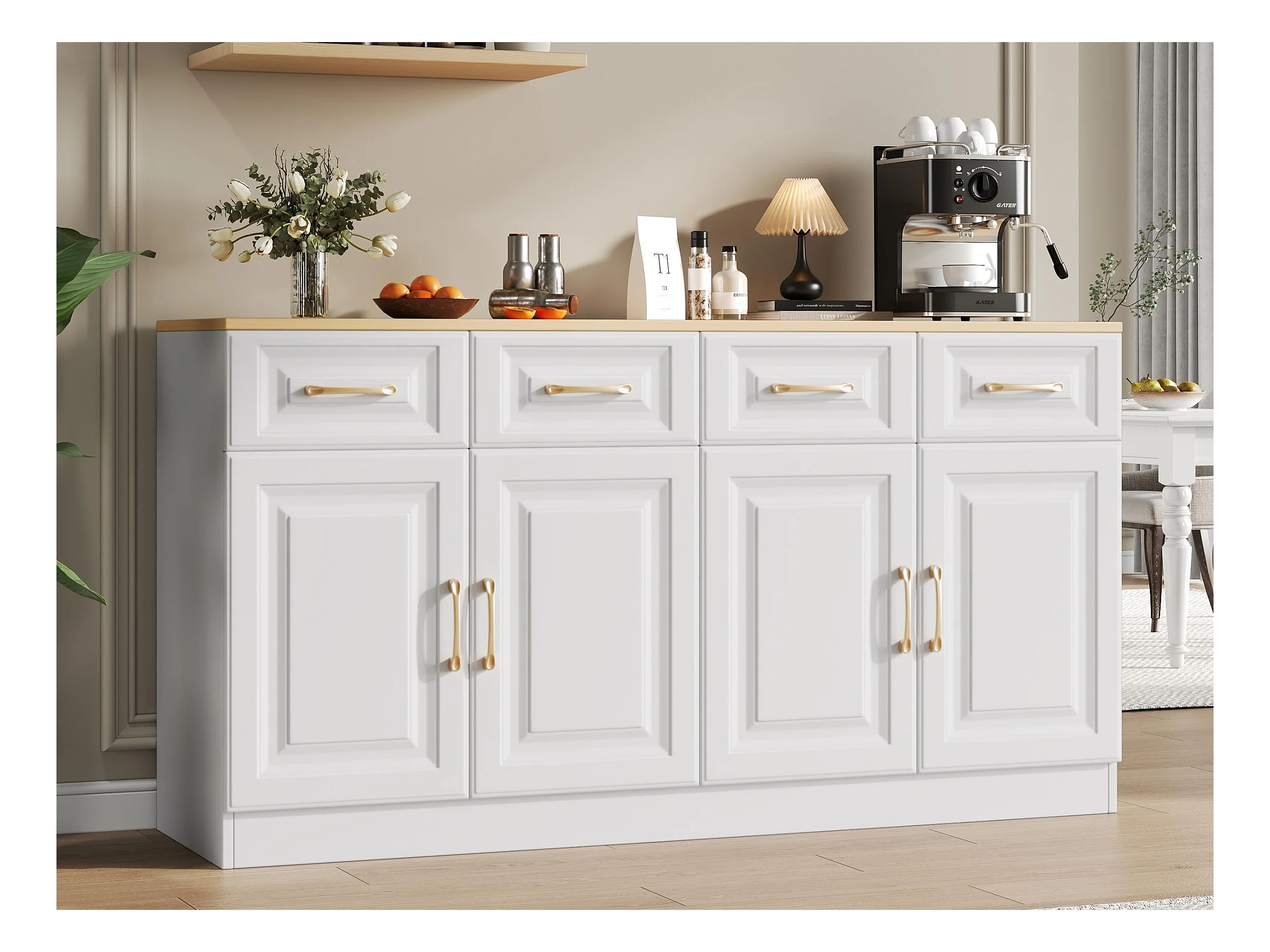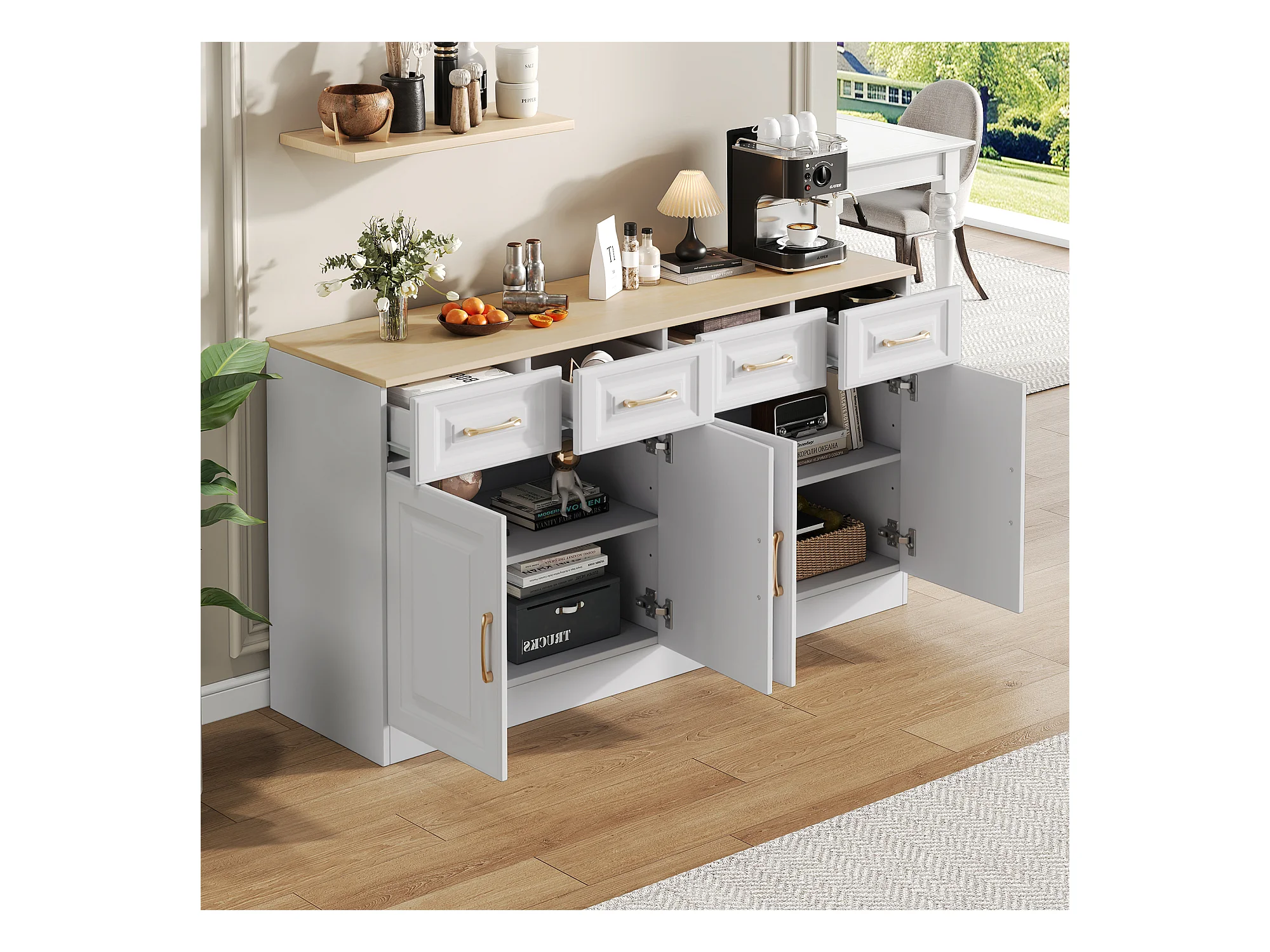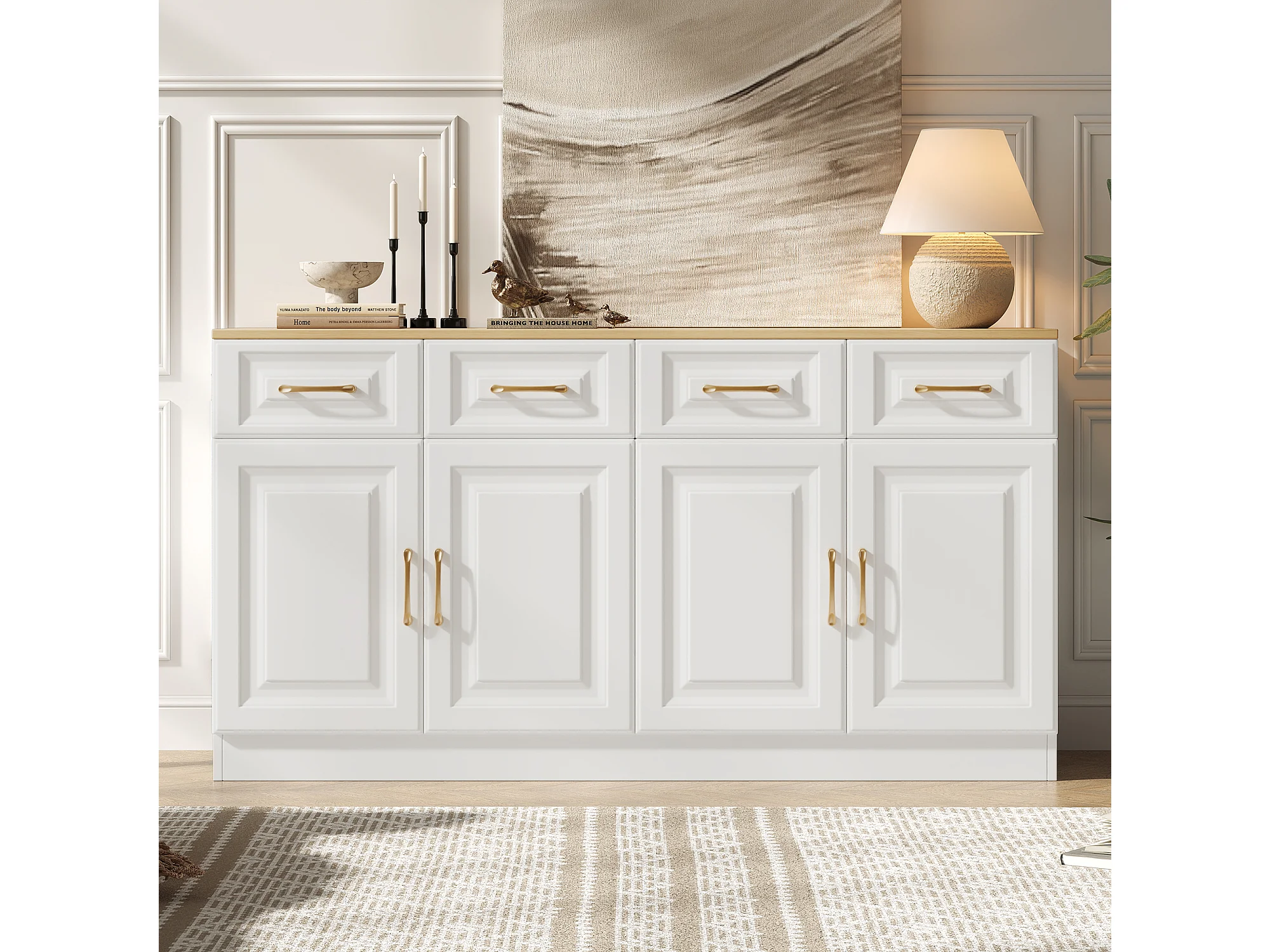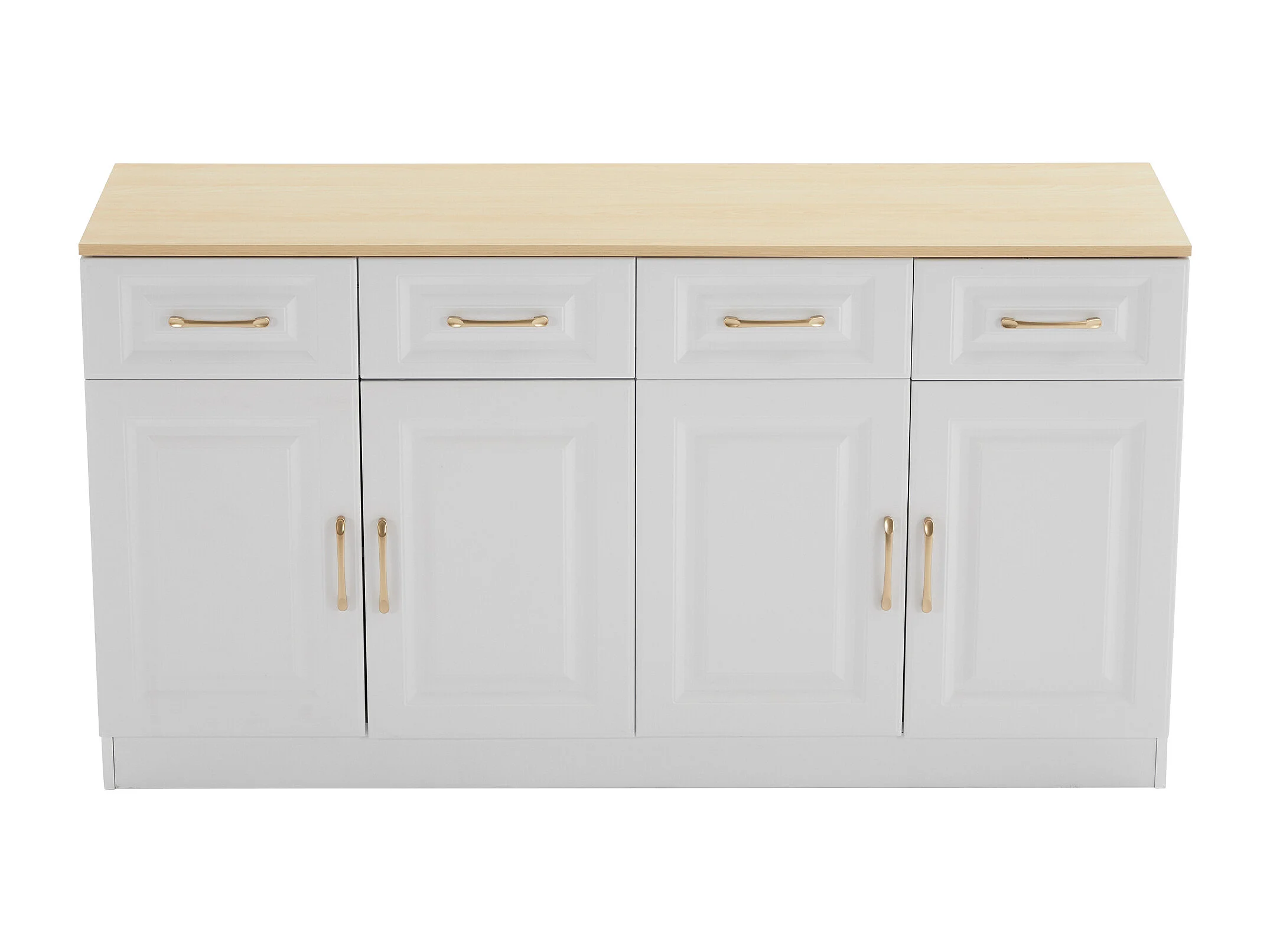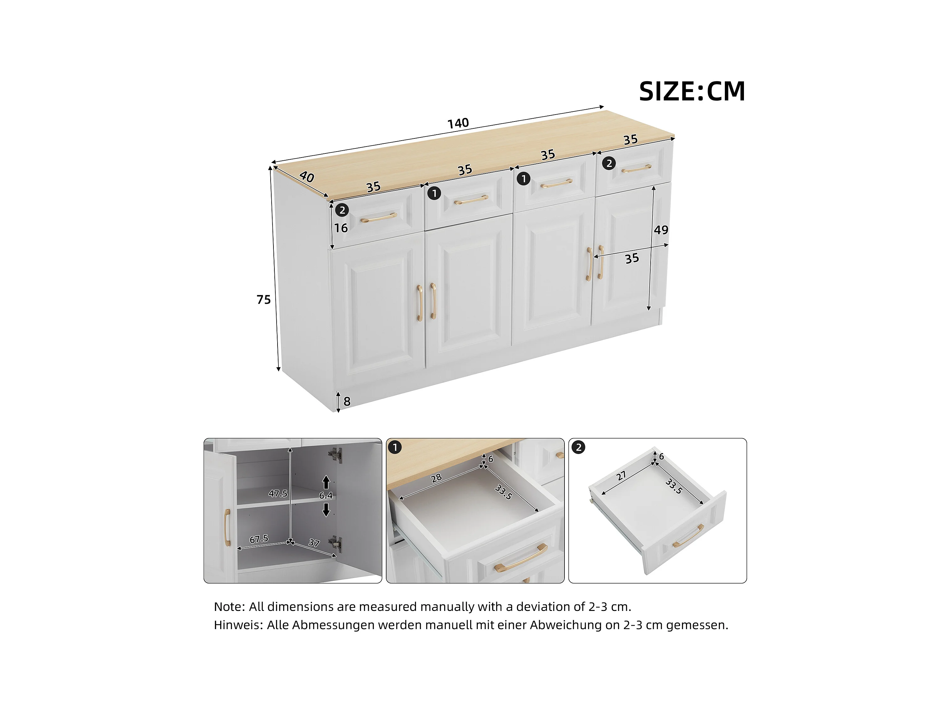 Modernes Sideboard 140x40x75 cm - 4 Schubladen und 4 Türen - Weiß