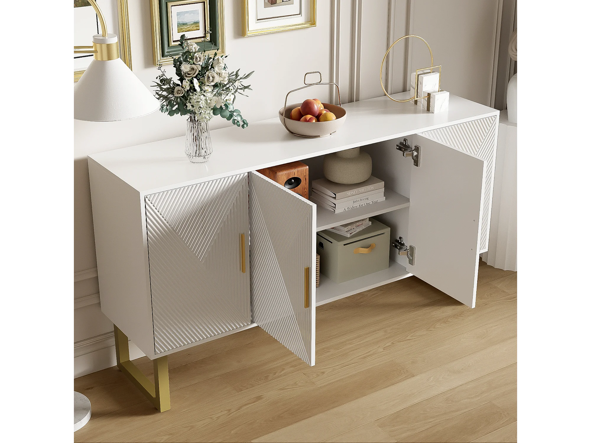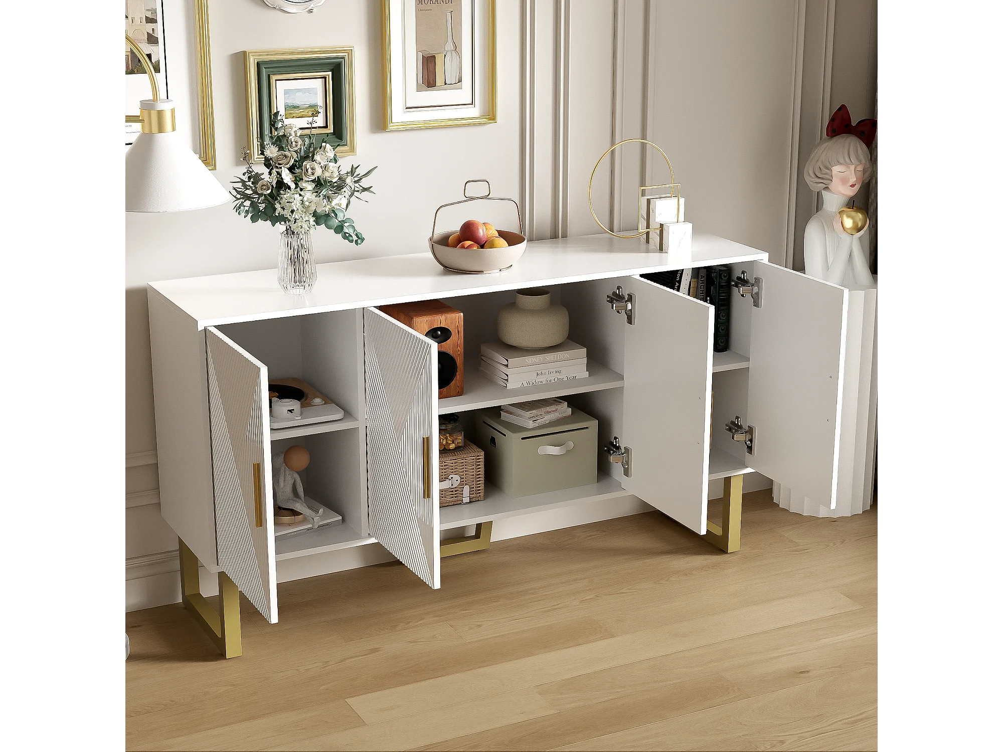Modernes Sideboard – 4 Türen mit verstellbaren Einlegeböden – Weiß