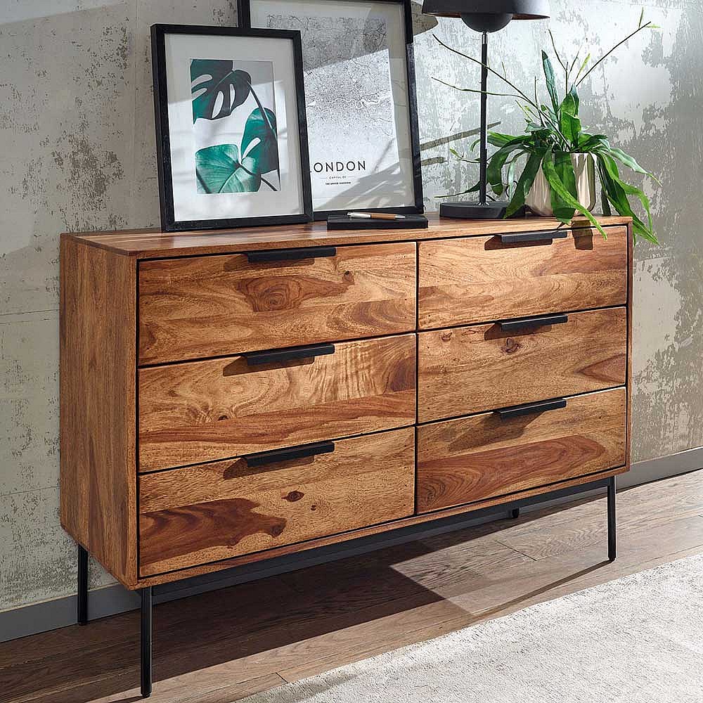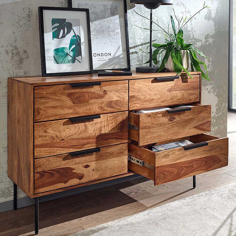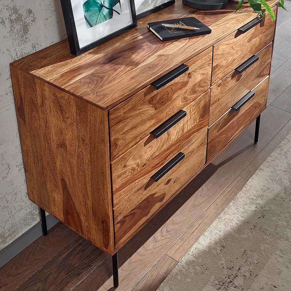 Modernes Sideboard aus Sheesham Massivholz sechs Schubladen