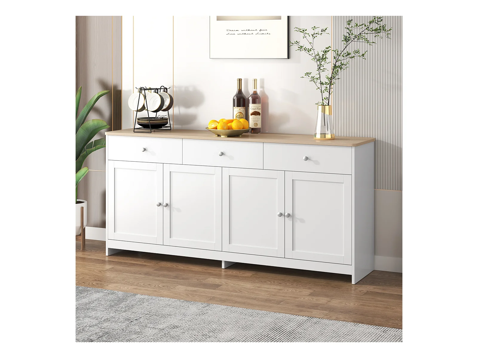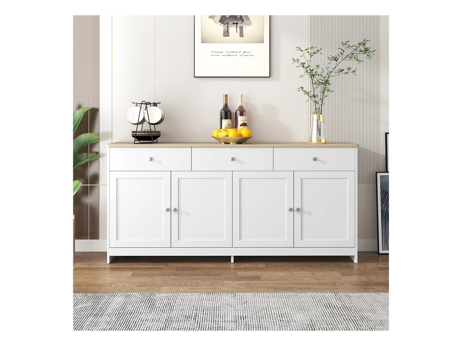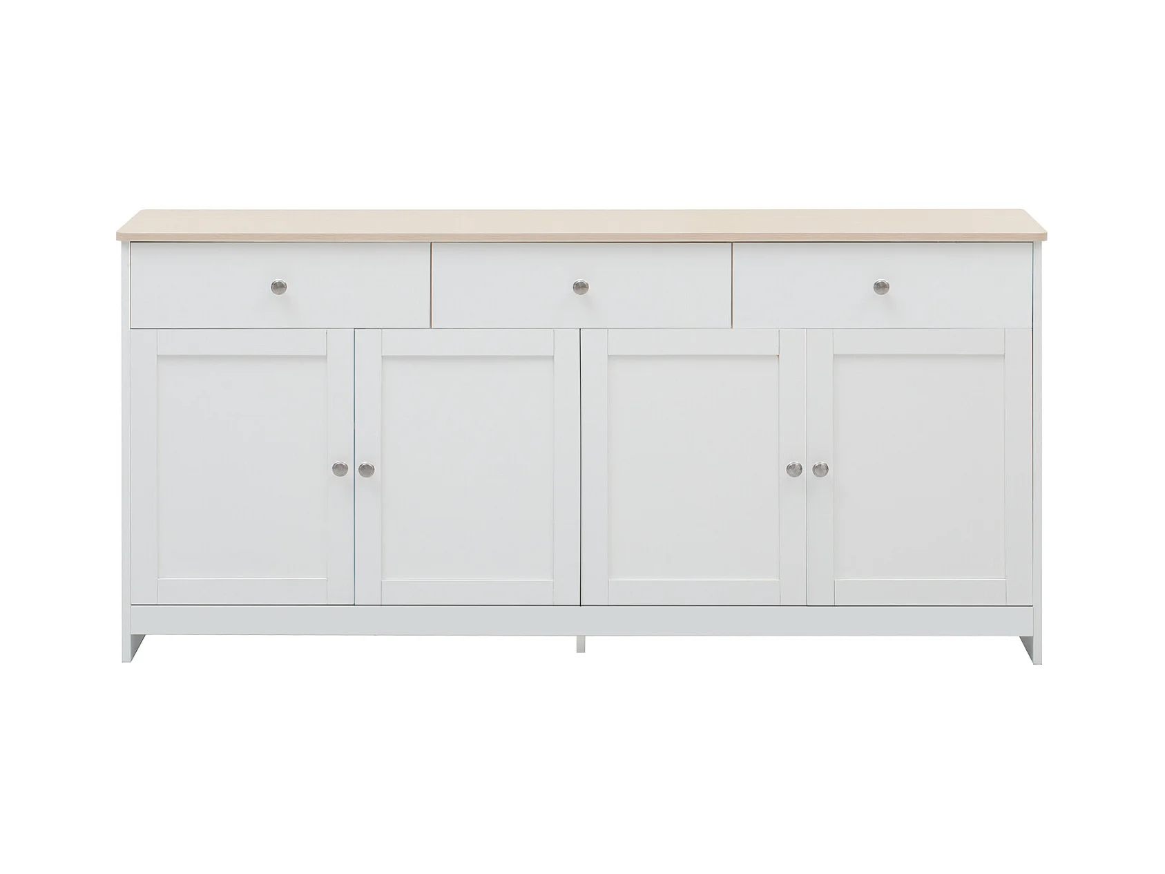 Modernes Sideboard mit 4 Türen und 3 Schubladen, Buffet für Esszimmer und Wohnzimmer, 160 x 37 x 75 cm - Antikweiß + Naturholz