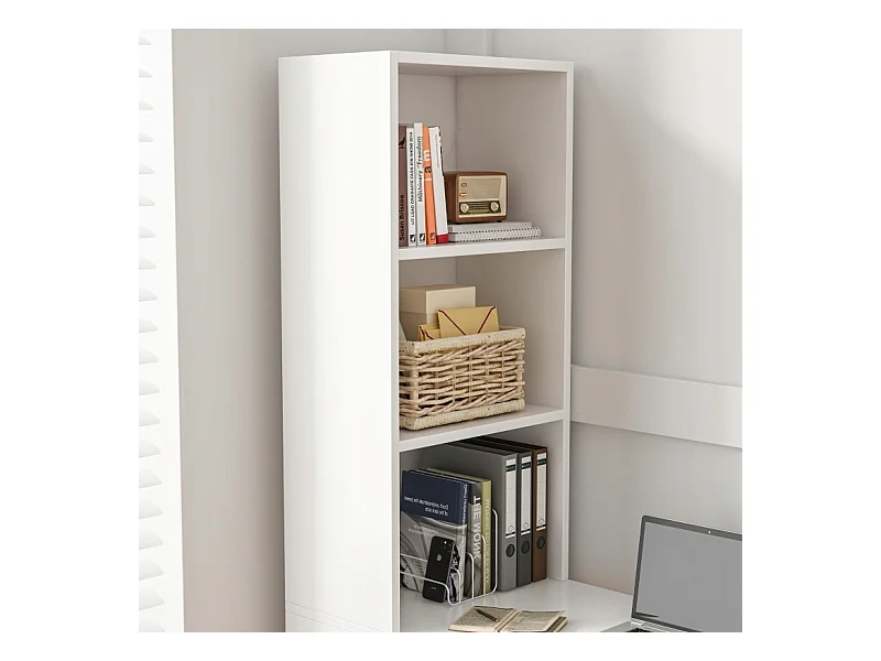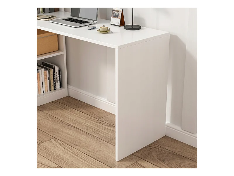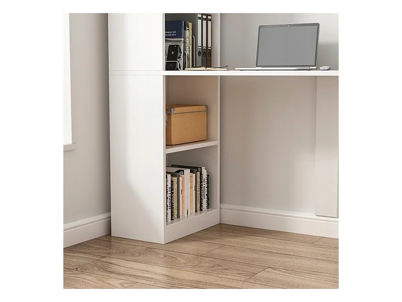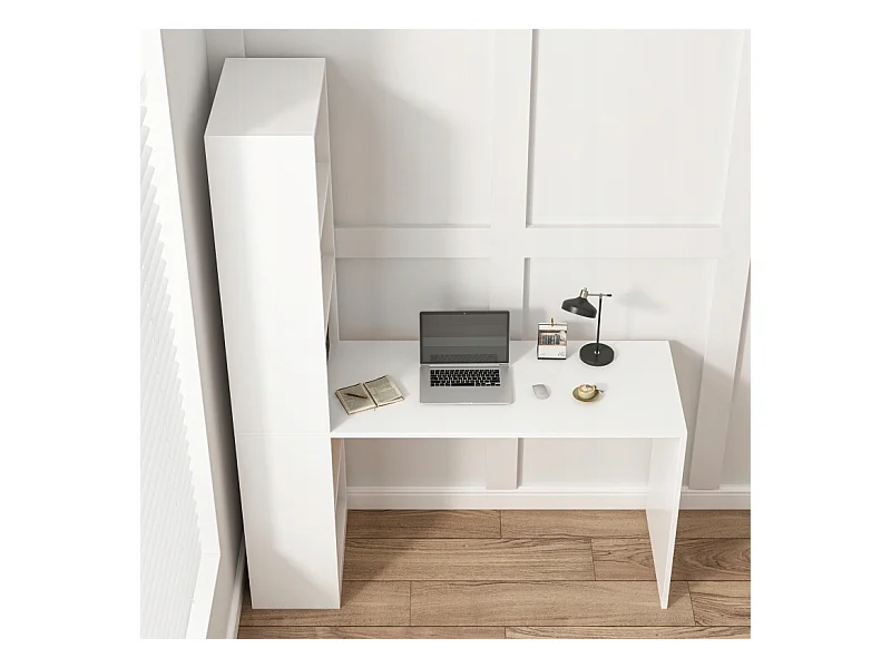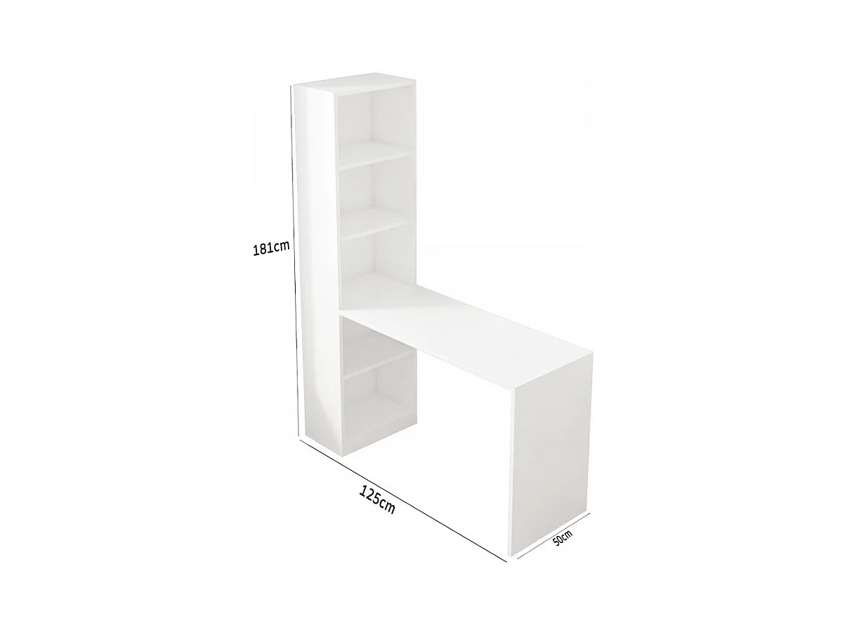 MODERNES WEISSES COMPUTER-SCHREIBTISCH FÜR JUGENDLICHE MIT REGAL UND LOFT-REGAL 125 CM