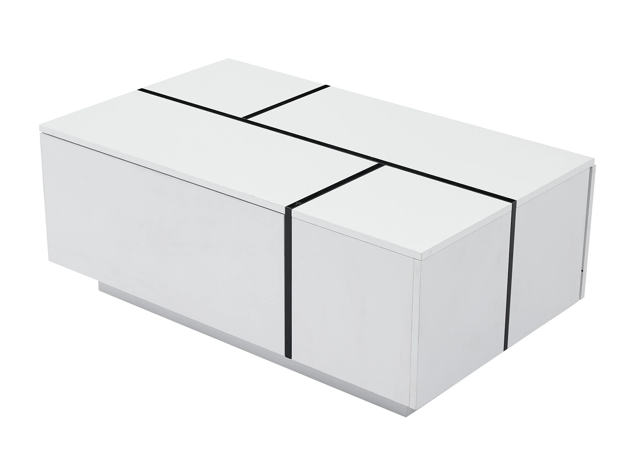 Modischer Couchtisch 100x60x40cm - glänzende Oberfläche - mit 4 Schubladen - weiß