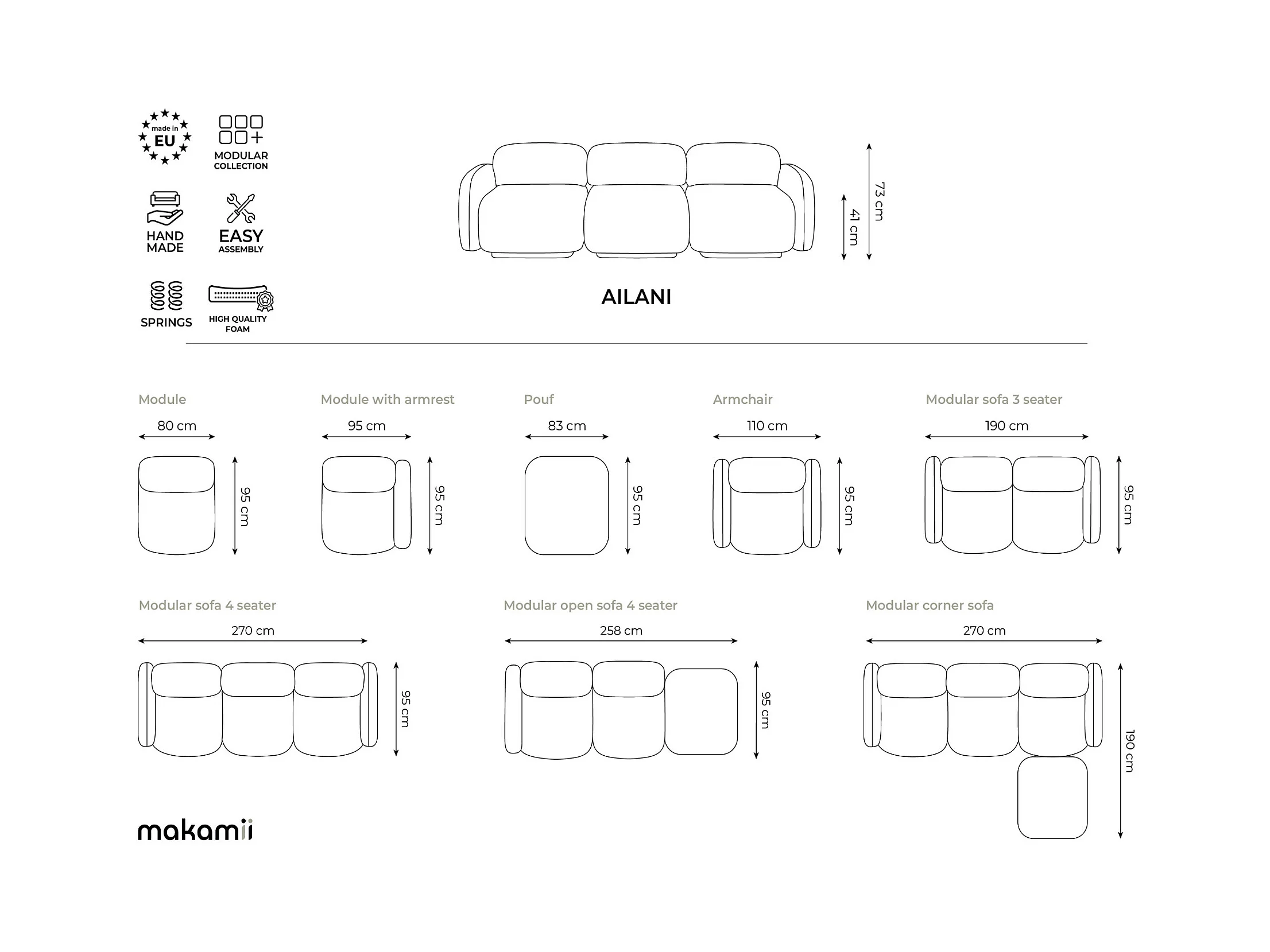 Modular - Eckteil mit Armlehne Rechts - Strukturstoff - Jeans - AILANI