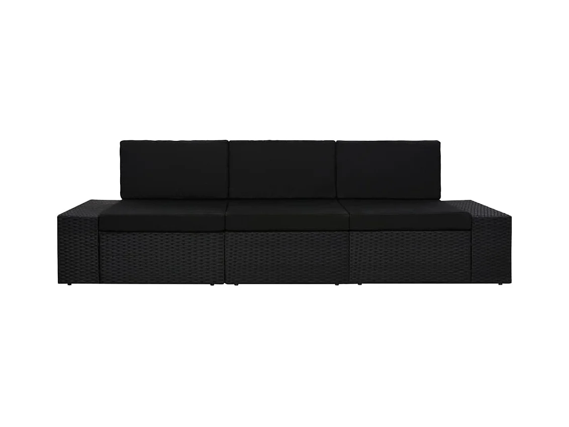 Modulares 3-Sitzer-Sofa Poly Rattan Schwarz