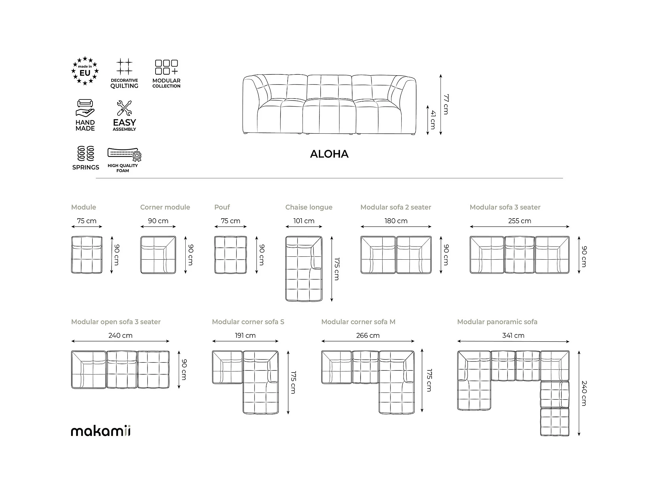 Modulares 3-Sitzer Sofa - - Samt - Burgund - ALOHA
