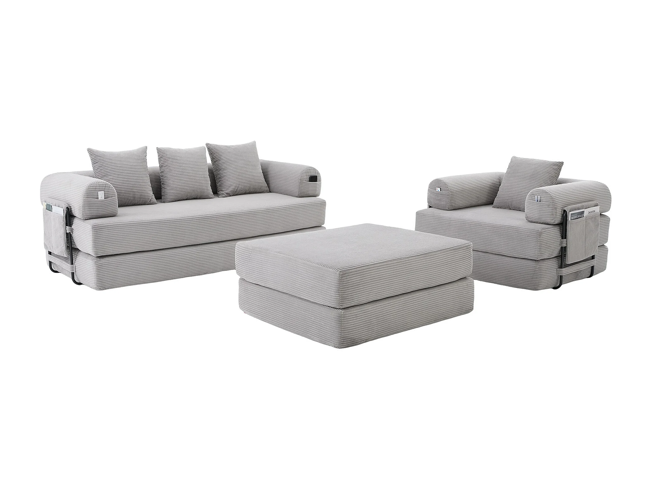 Modulares 4-Sitzer-Sofa-Set – 200 x 190 x 67 cm – mit 4 Kissen + 1 Sessel – Cord – hellgrau