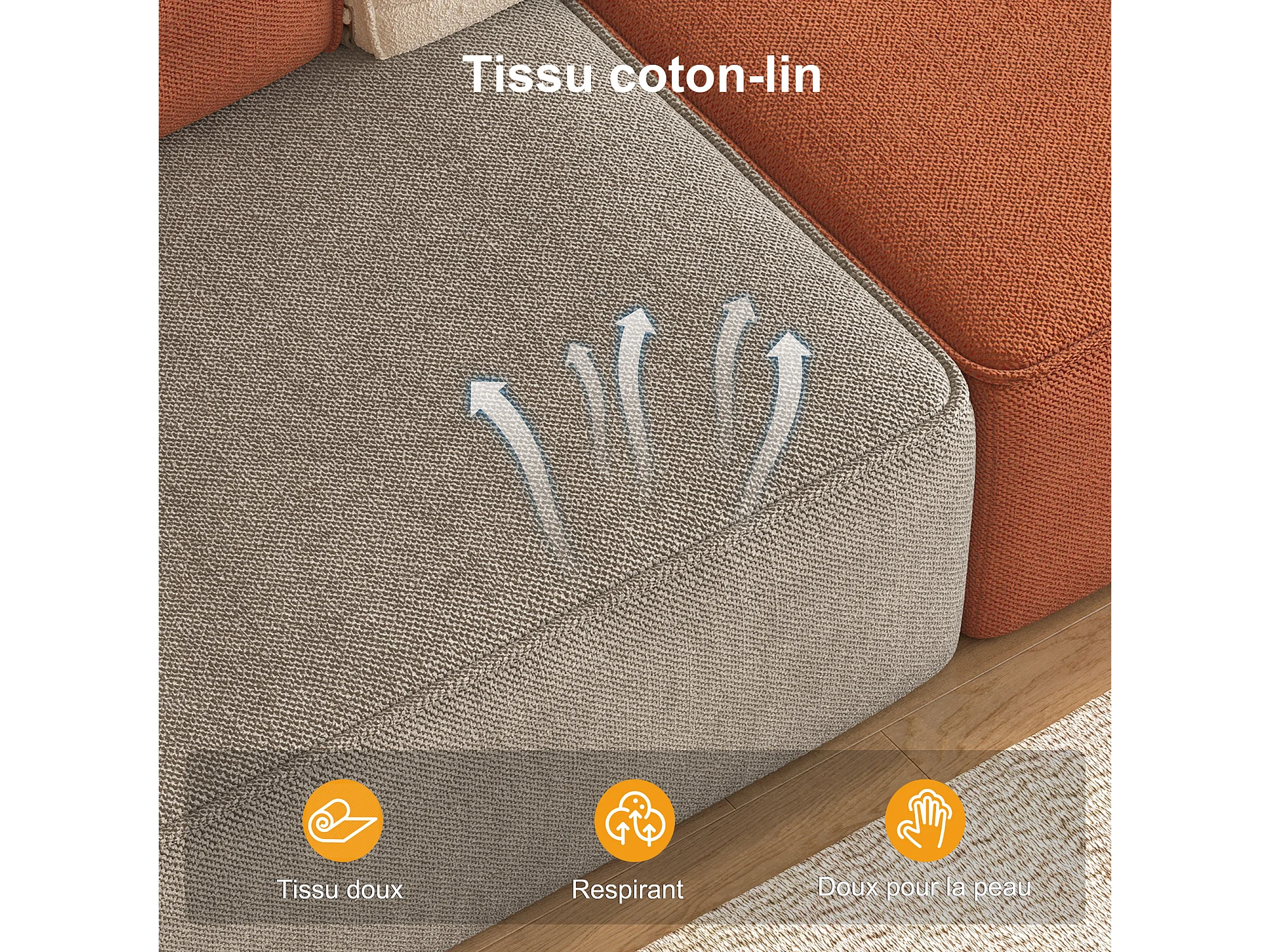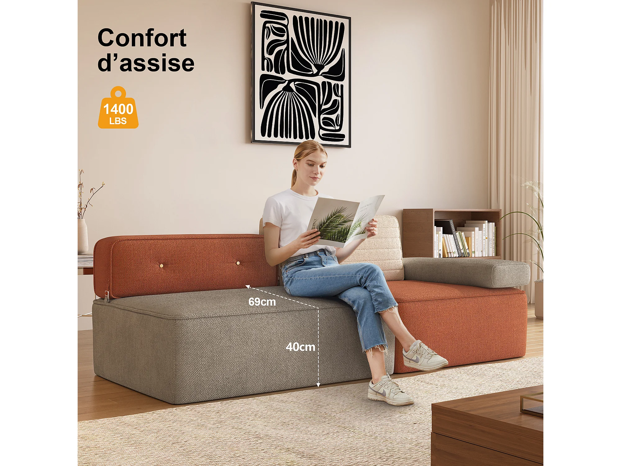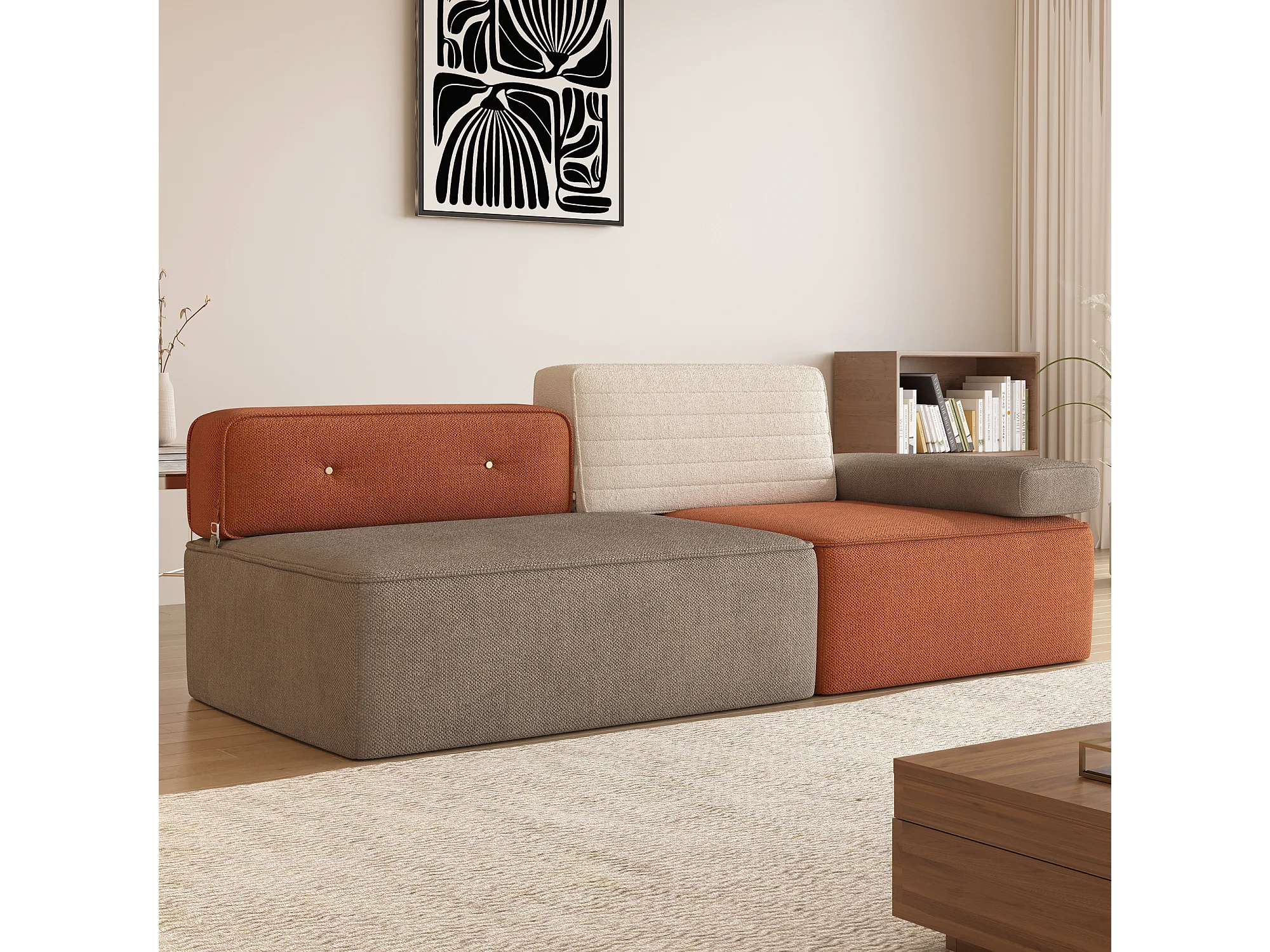 Modulares Ecksofa aus mehrfarbigem Stoff, modernes Wohnzimmeldesign mit abnehmbaren Sitz- und Rückenpolstern, anpassbare Konfiguration für den Wohnbereich
