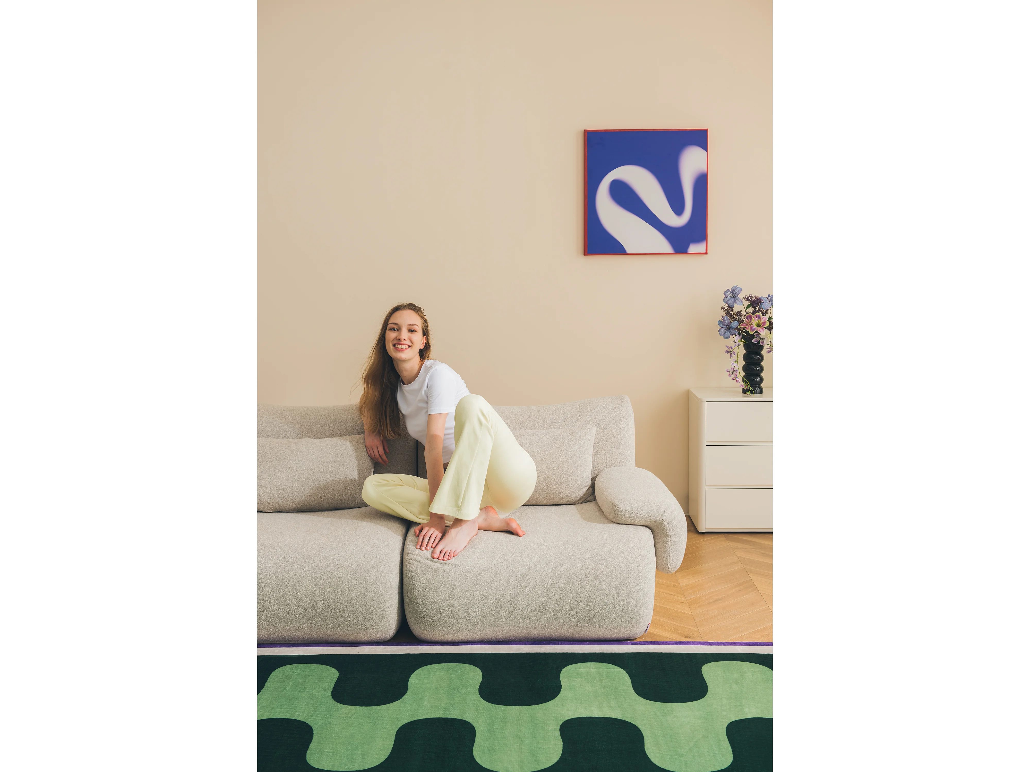 Modulares Ecksofa MILYSOFA SOFATIME 5-Sitzer mit Chaiselongue aus feinem Bouclé-Stoff steinbeige